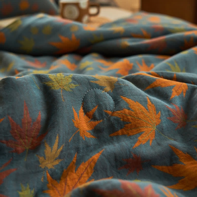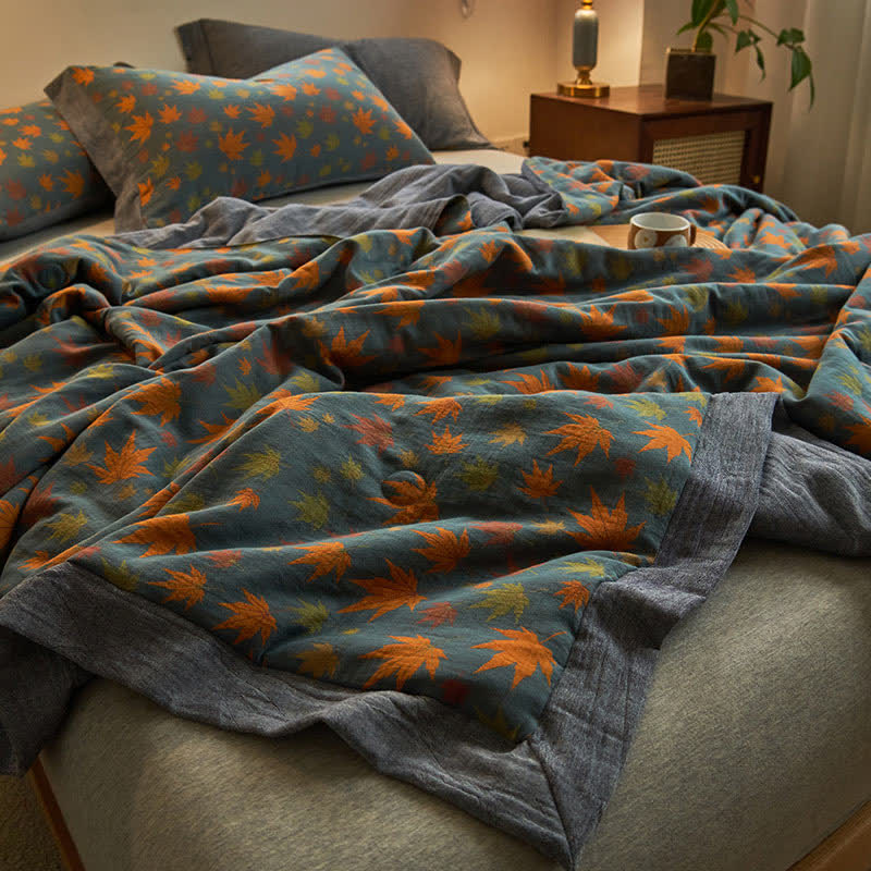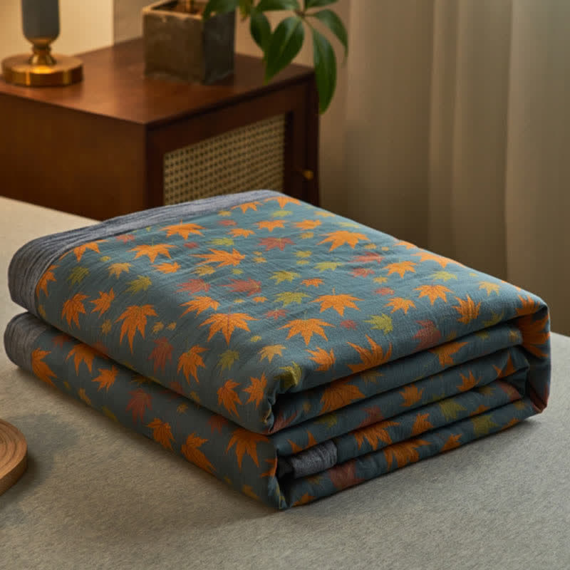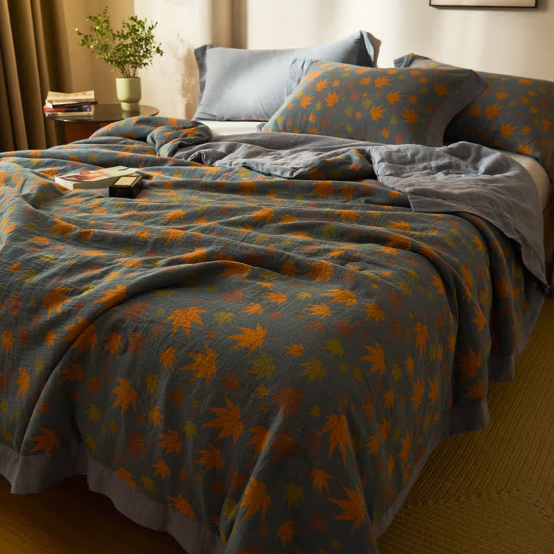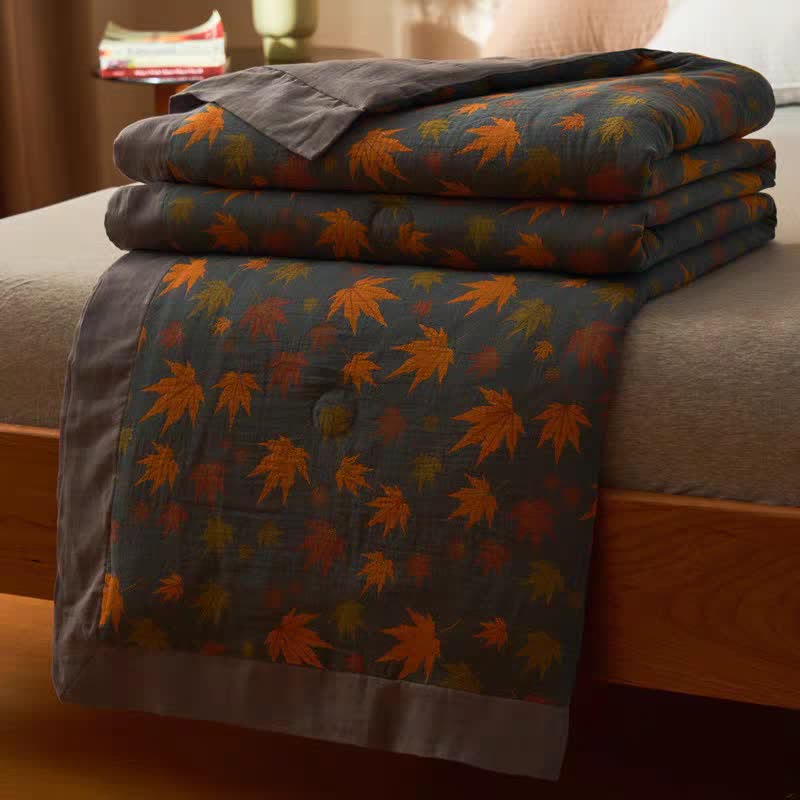Maple leaf printed in orange and yellow, adding innovative design concepts and minimalist style, which provides a high-quality visual effect to your room. Made from high-quality cotton with double layers of gauze, this quilt is soft and cozy, providing warmth on even the coldest nights. Reactive printing and dyeing technology make it not easy to fade and durable. It can be also used as an air conditioning blanket, airplane blanket, bedside towel, sofa blanket, or shawl blanket.