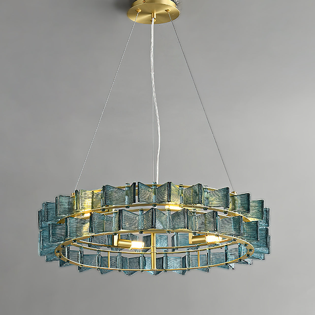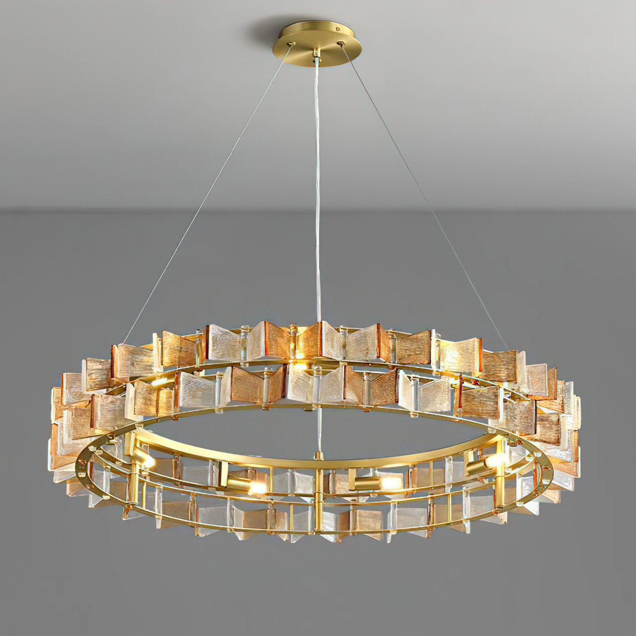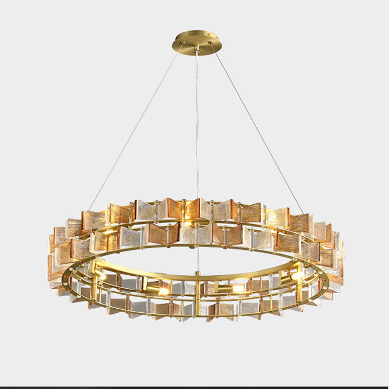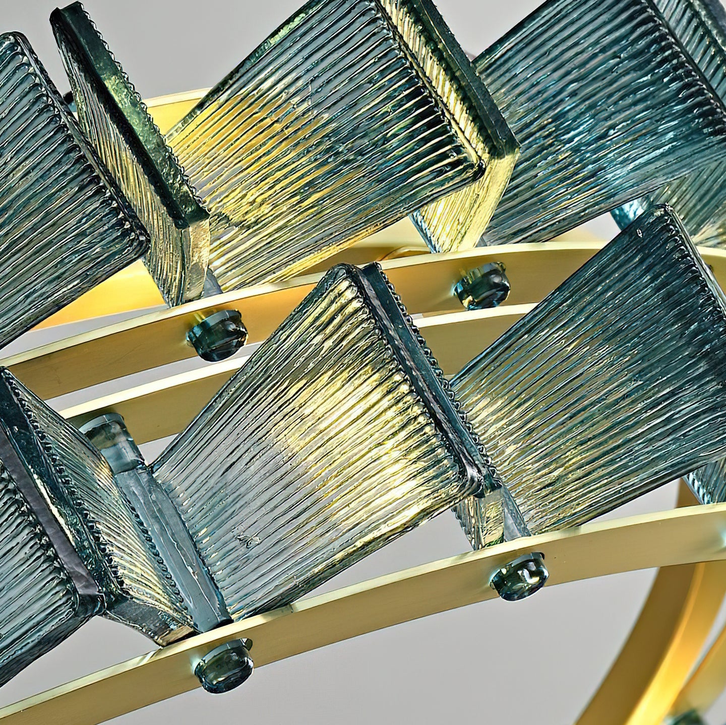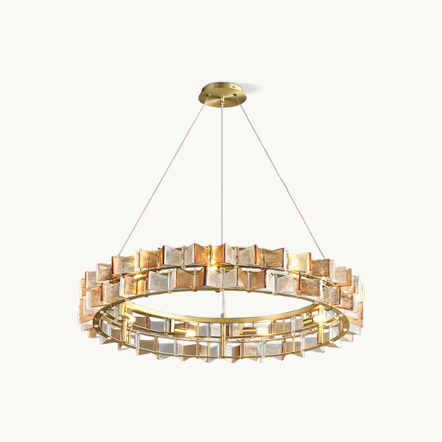 Introducing the Mariposa Round Chandelier by Mooijane - an exquisite addition to any space. Handmade glass with vibrant colors is set in a brass finish frame, creating an eclectic and artisanal touch. Elevate your decor with flawless design and expert craftsmanship.