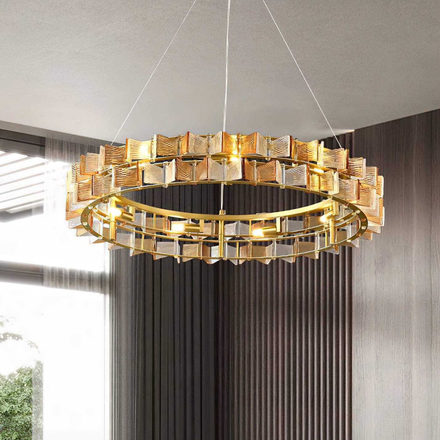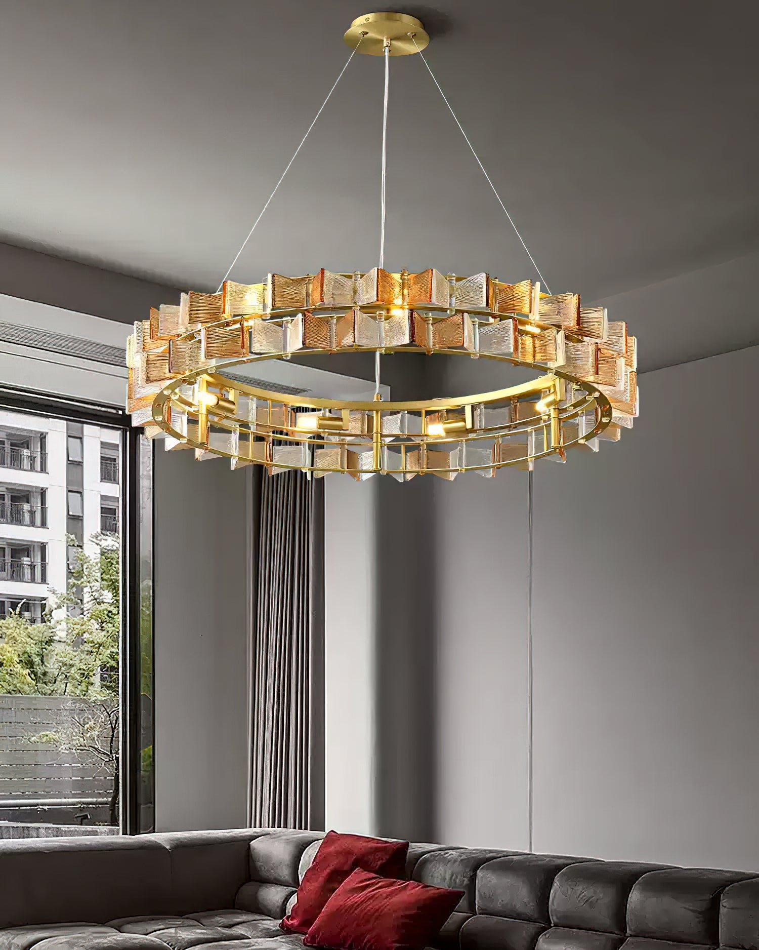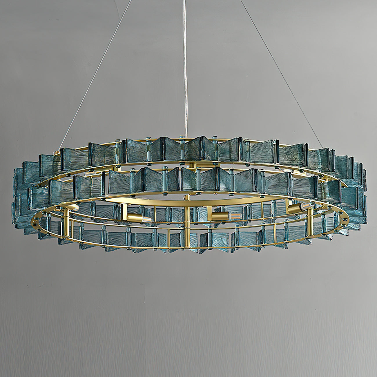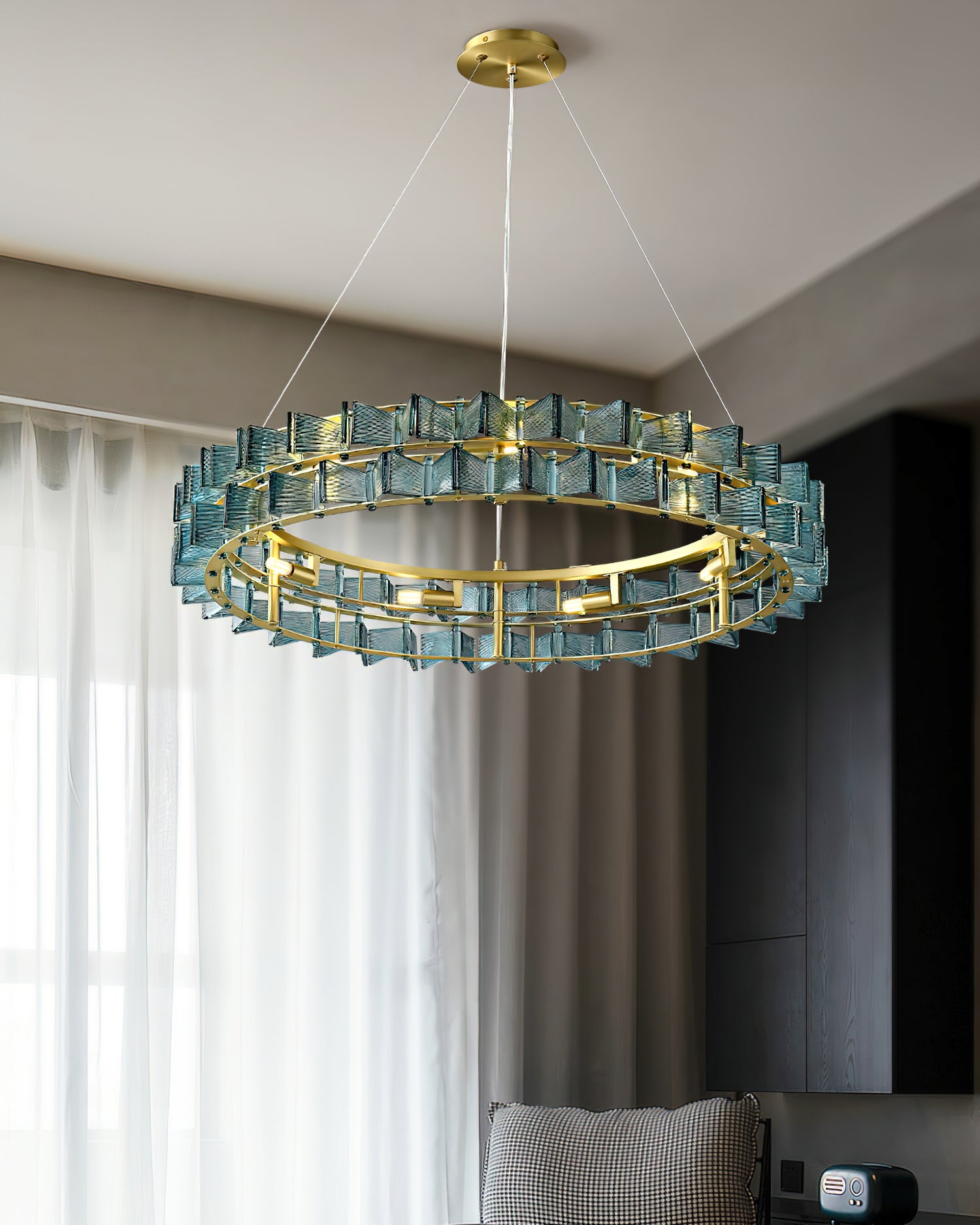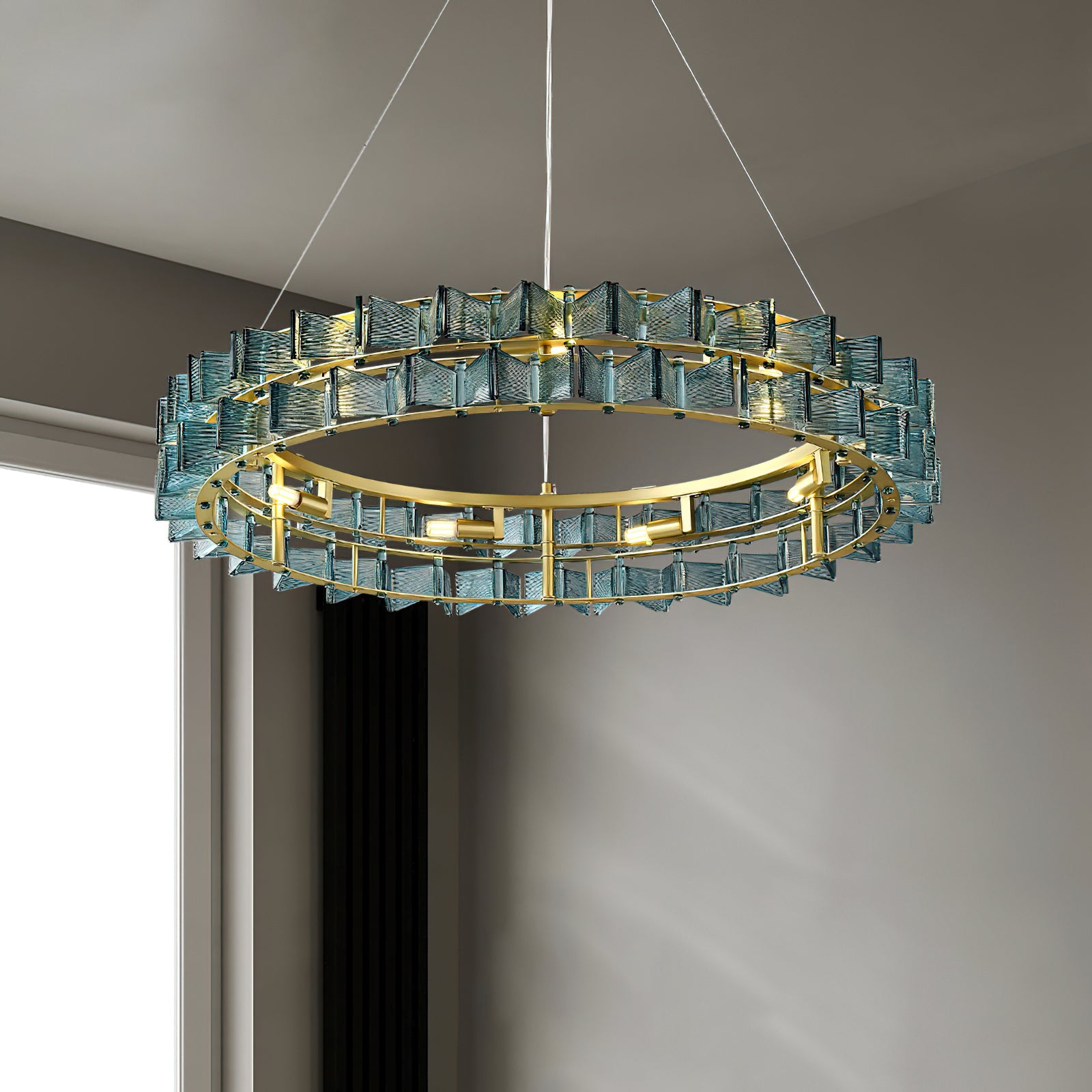Introducing the Mariposa Round Chandelier by Mooijane - an exquisite addition to any space. Handmade glass with vibrant colors is set in a brass finish frame, creating an eclectic and artisanal touch. Elevate your decor with flawless design and expert craftsmanship.
