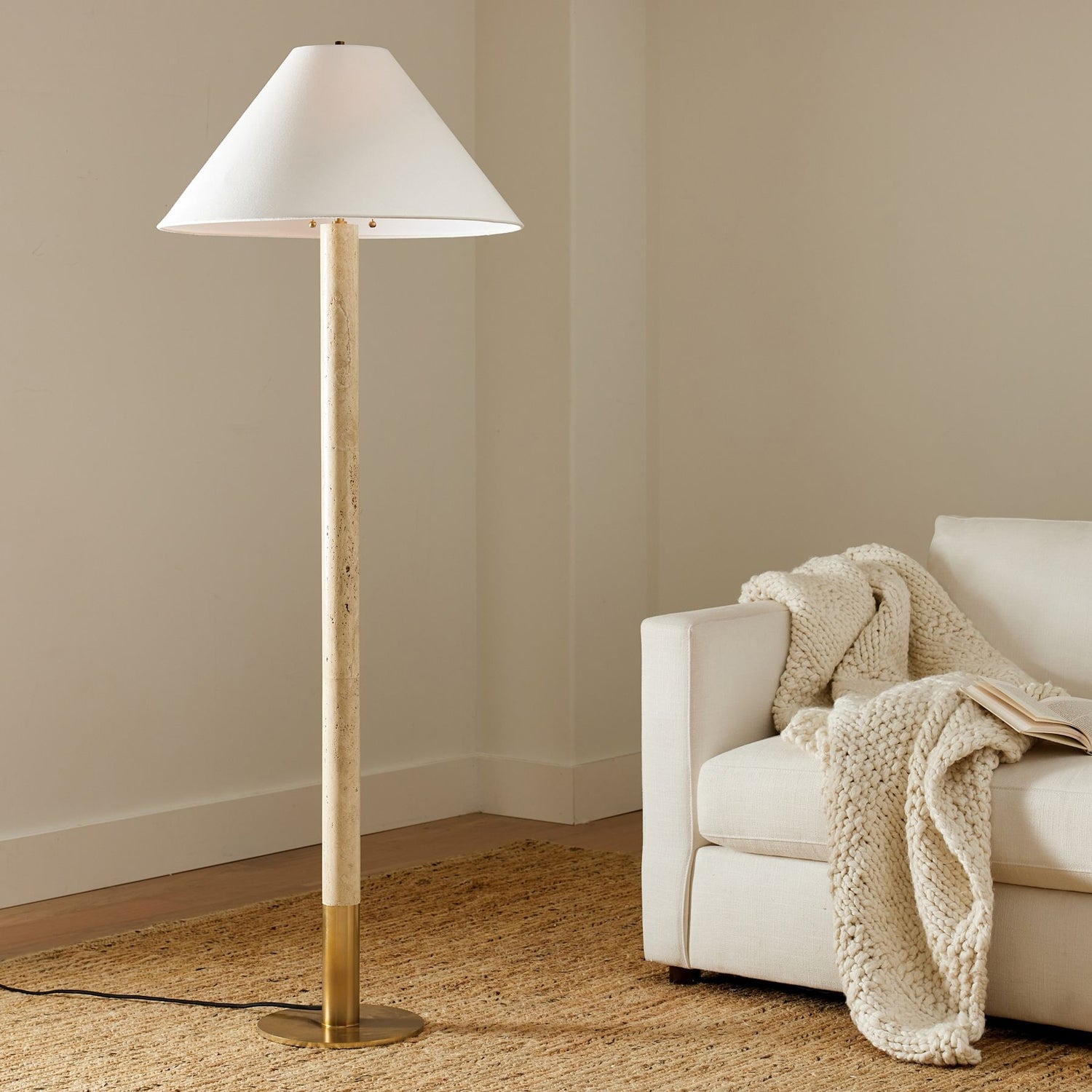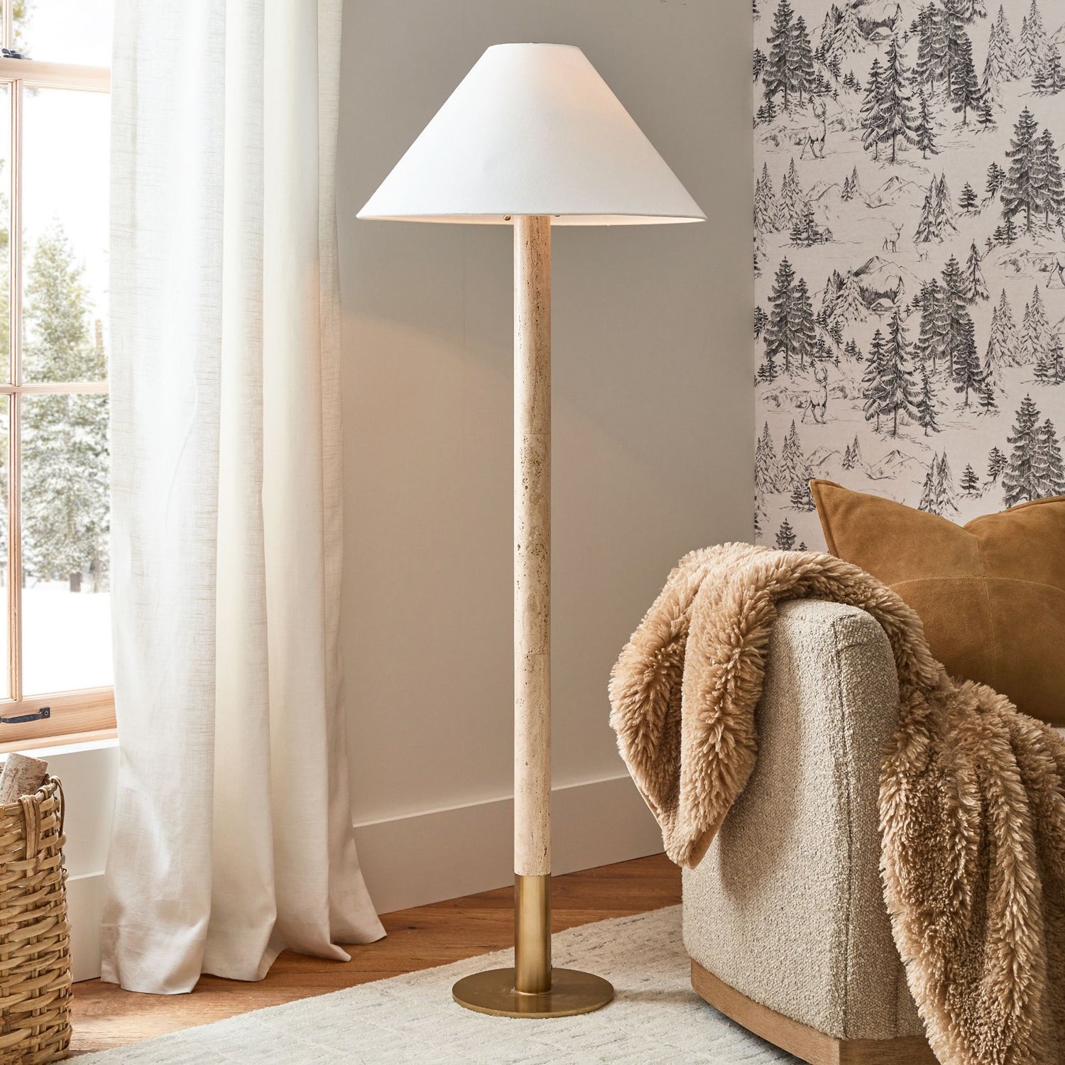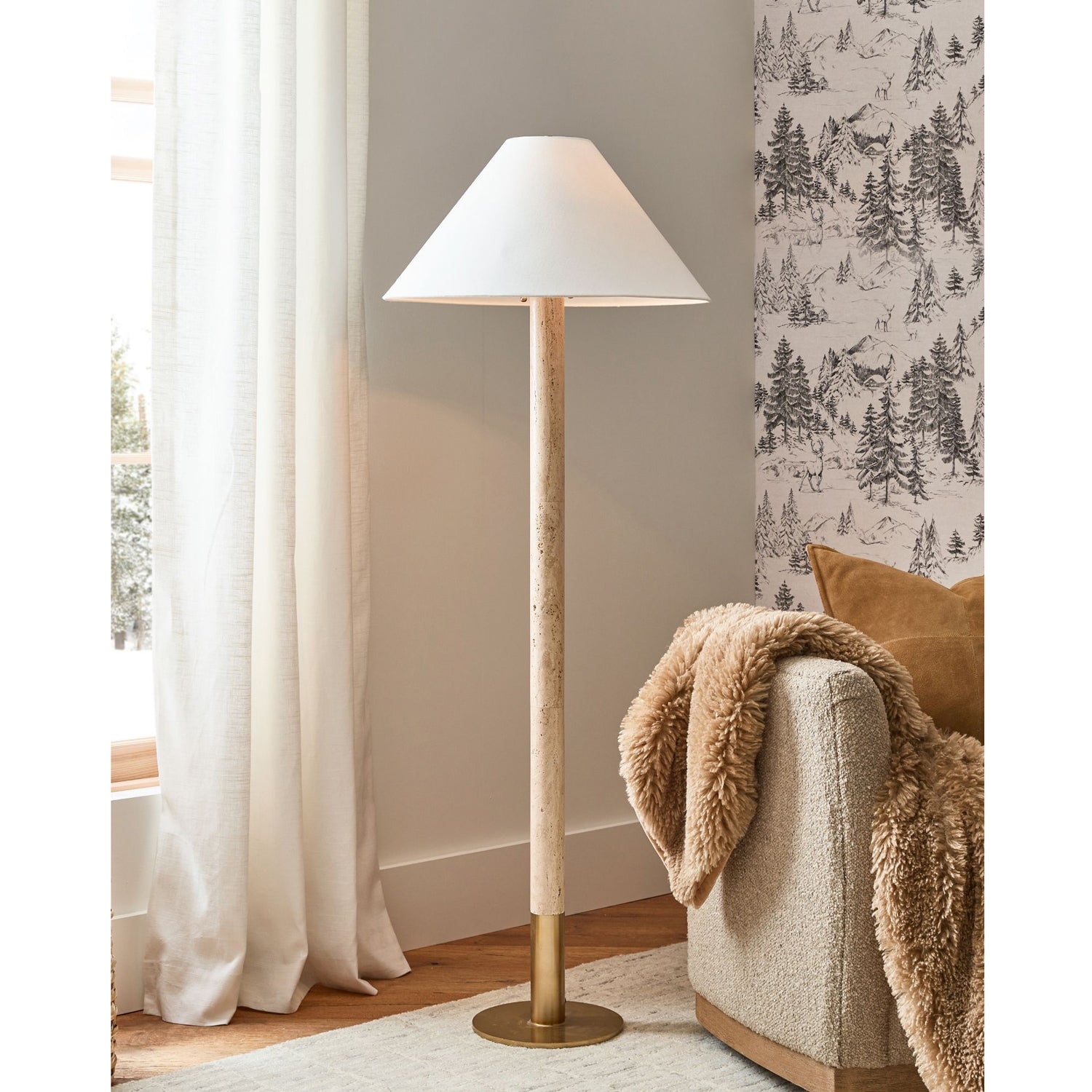 The Markham Floor Lamp from Mooijane blends timeless elegance with refined craftsmanship. Its natural travertine base showcases unique textures, creating a sophisticated focal point for any room. Perfect for both contemporary and classic interiors, this floor lamp combines natural materials with stylish design to elevate your space.