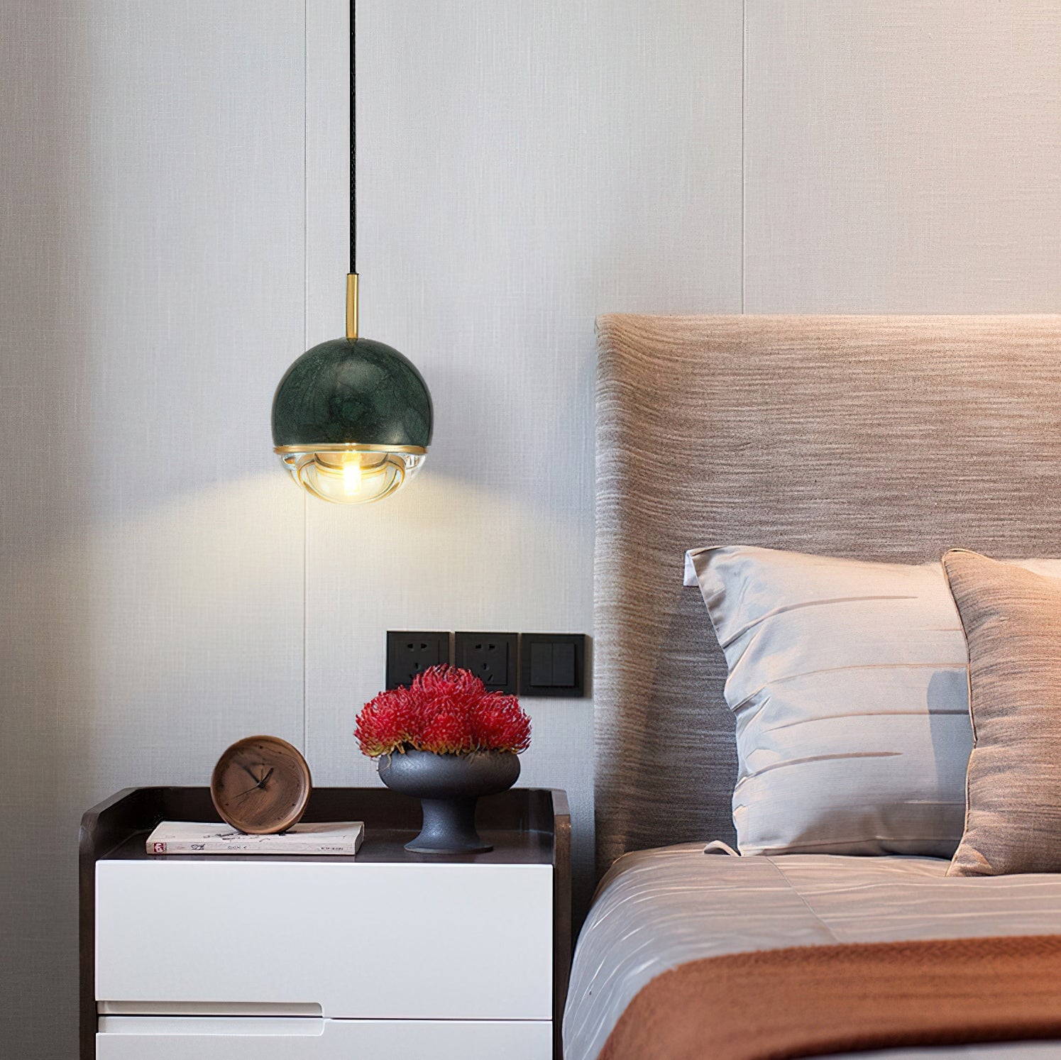 The Marloft Pendant Light from Mooijane is a refined fusion of glass and marble, offering a perfect balance of luxury and modern design. Its minimalist silhouette adds sophistication to any setting—whether above a dining table, in a cozy living area, or as a statement in a contemporary bedroom. A timeless piece that elevates interiors with elegance and style.