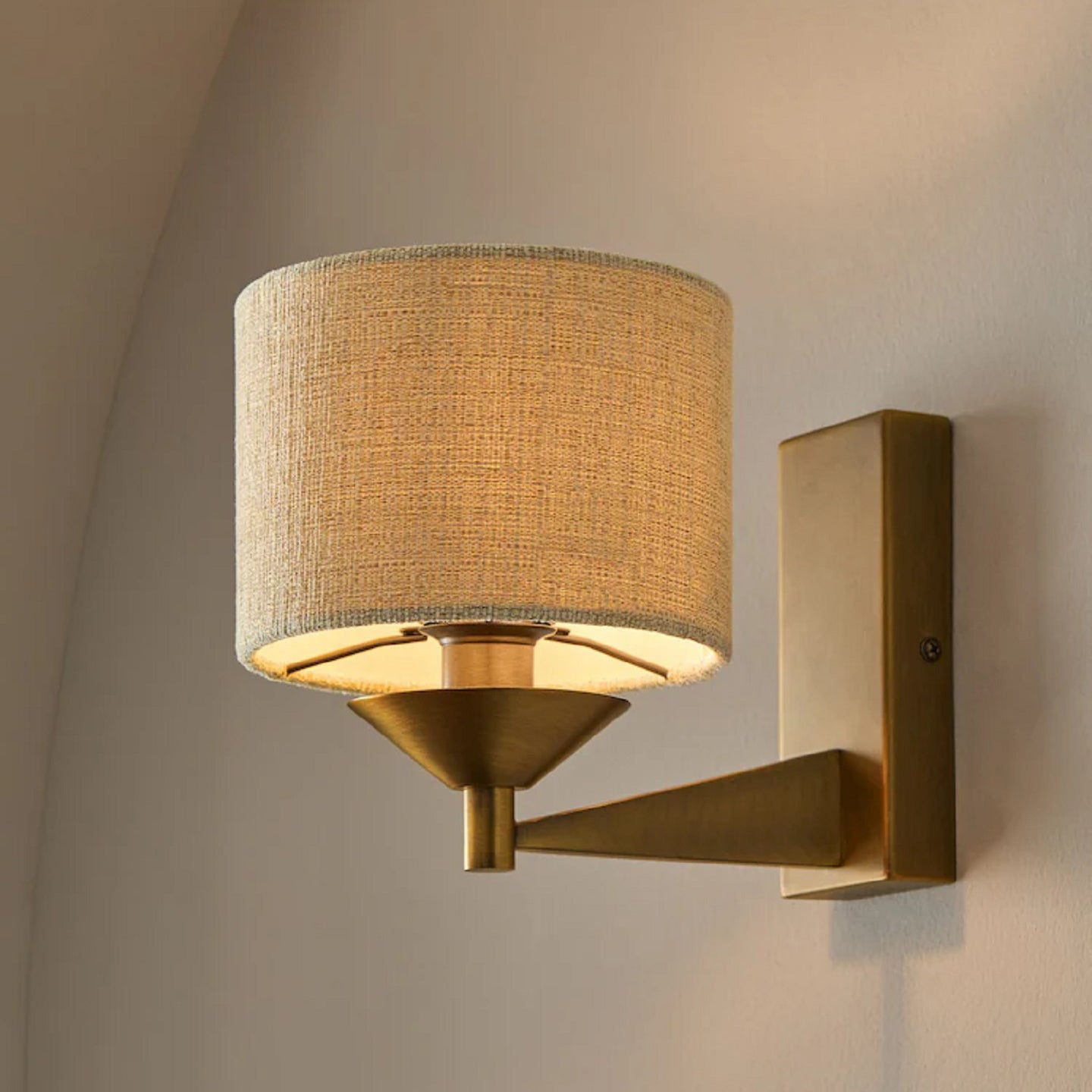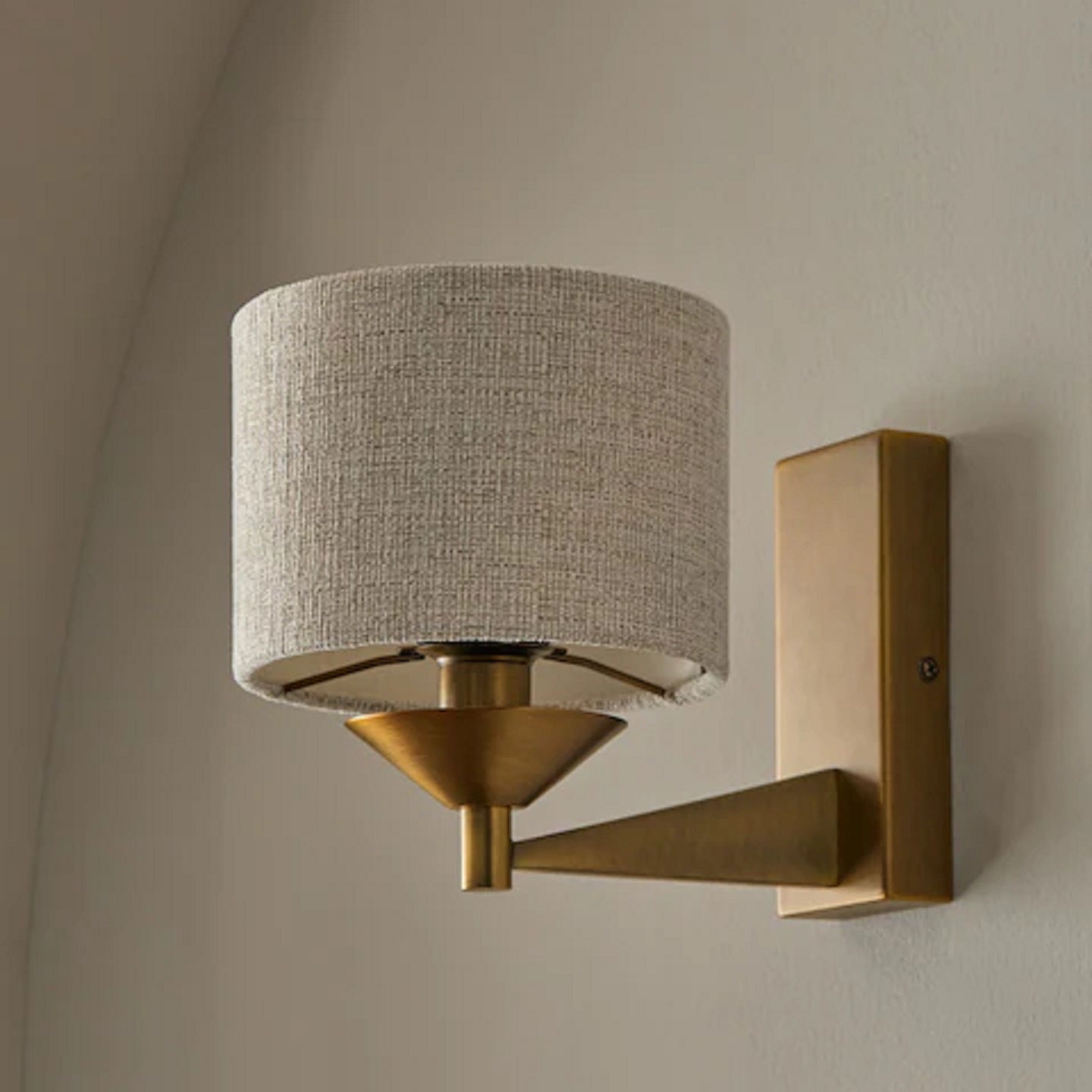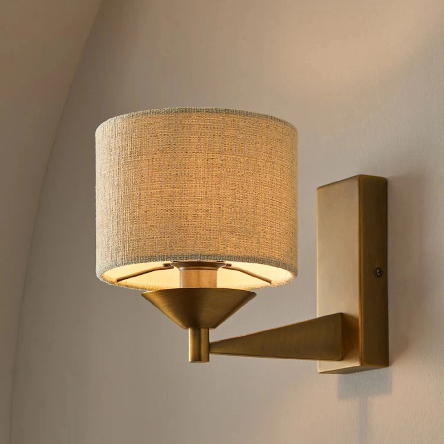 The Marston Wall Light from Mooijane features a retro-inspired design with a brushed metal finish and a fabric shade. Its timeless style and warm, diffused glow make it a versatile addition to living rooms, bedrooms, hallways, or any space in need of elegant, functional lighting.