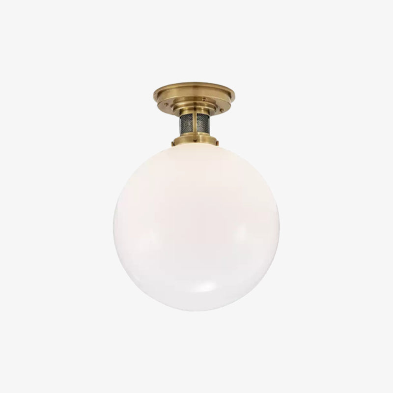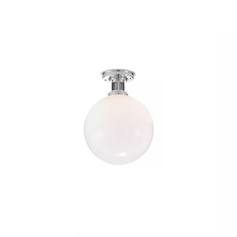 Transform any room with the McCarren Ceiling Light! With its unique design and pure white glass sphere, this light will create a relaxing and radiant ambiance in your space. The industrial screws add an edgy touch, making it a statement piece. Experience perfect, even lighting and energize your surroundings.
