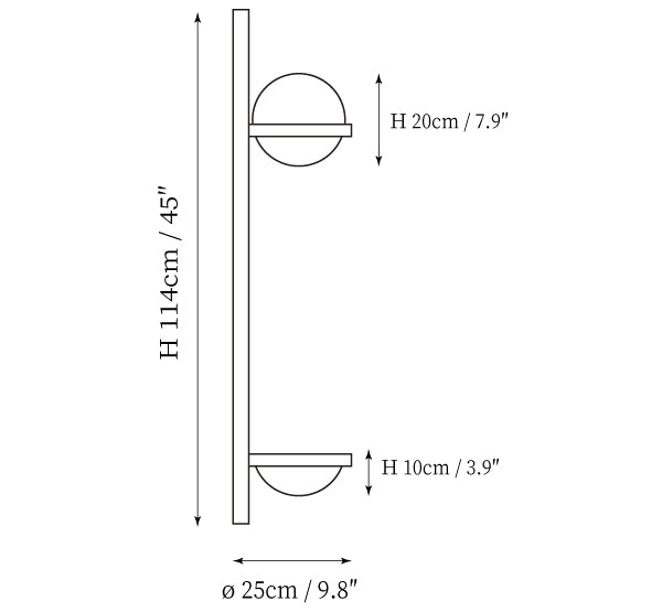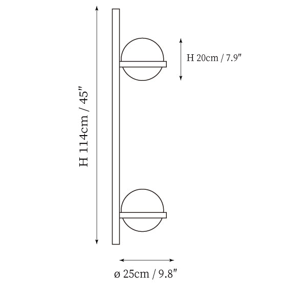 - Model B size: Dia 25cm x H 114cm / ∅ 9.8″ x H 45″ (Power: 2*6W)