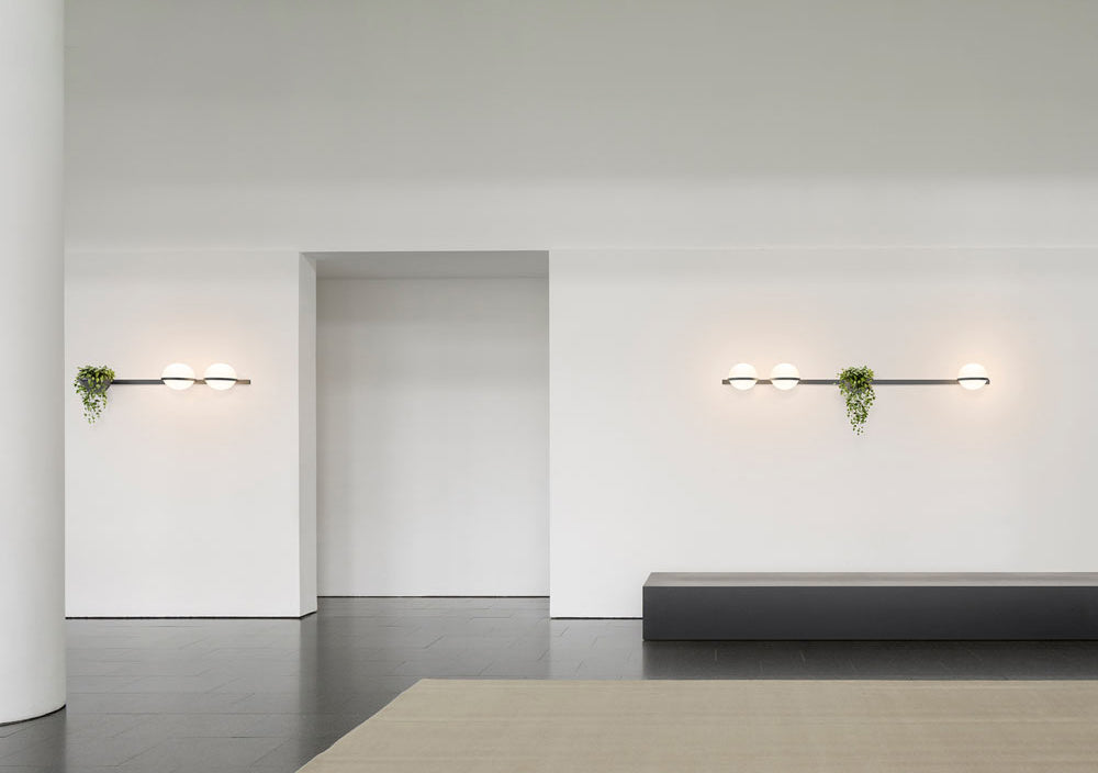 Introducing the Meira Wall Light, inspired by the beauty of hanging gardens. Its flora design and illuminated LED spheres create a calming and cheerful atmosphere. Available in varying scales with or without planters. Experience the fusion of organic and immateriality in your daily environment.