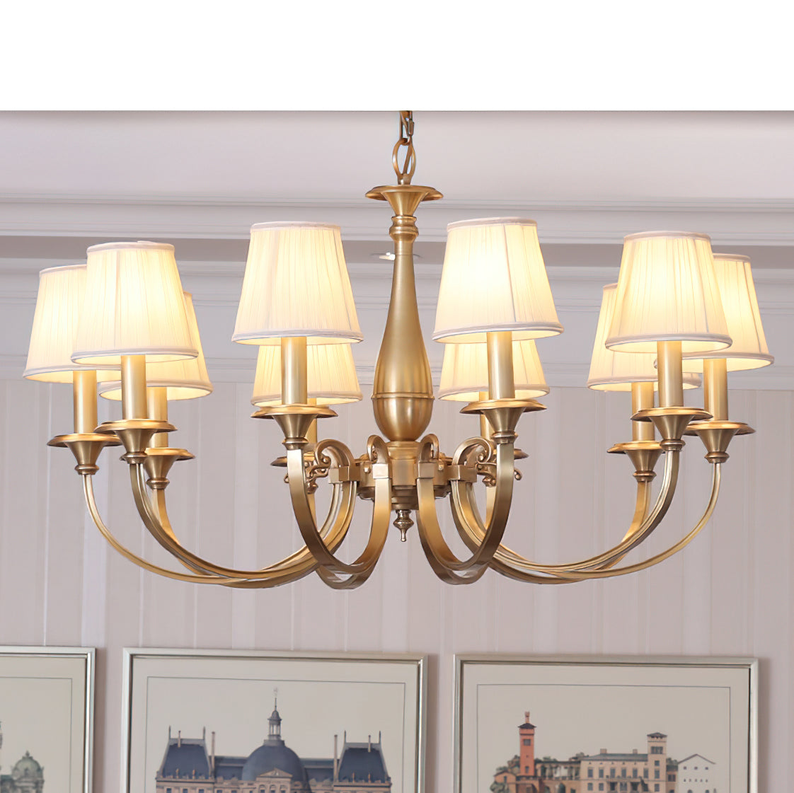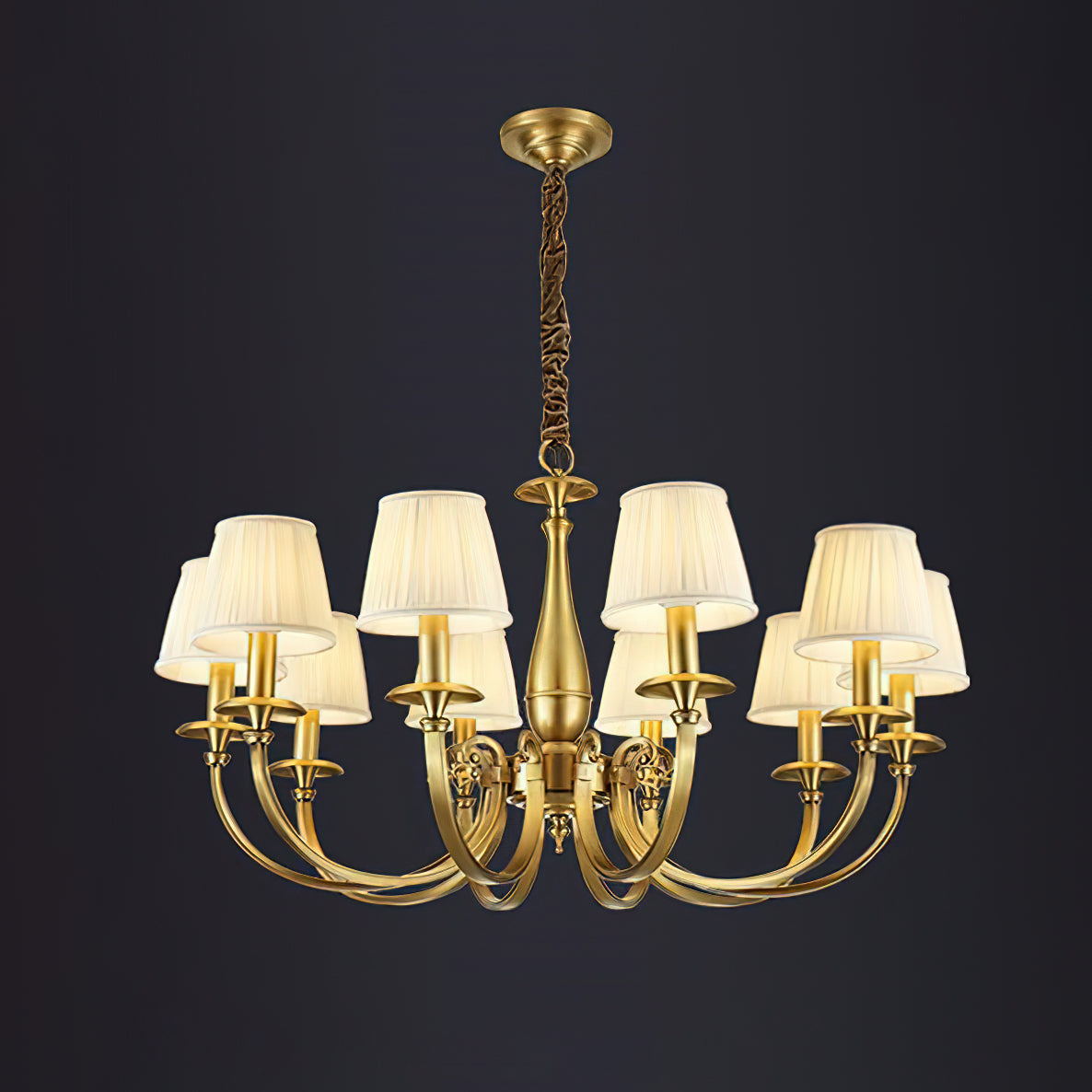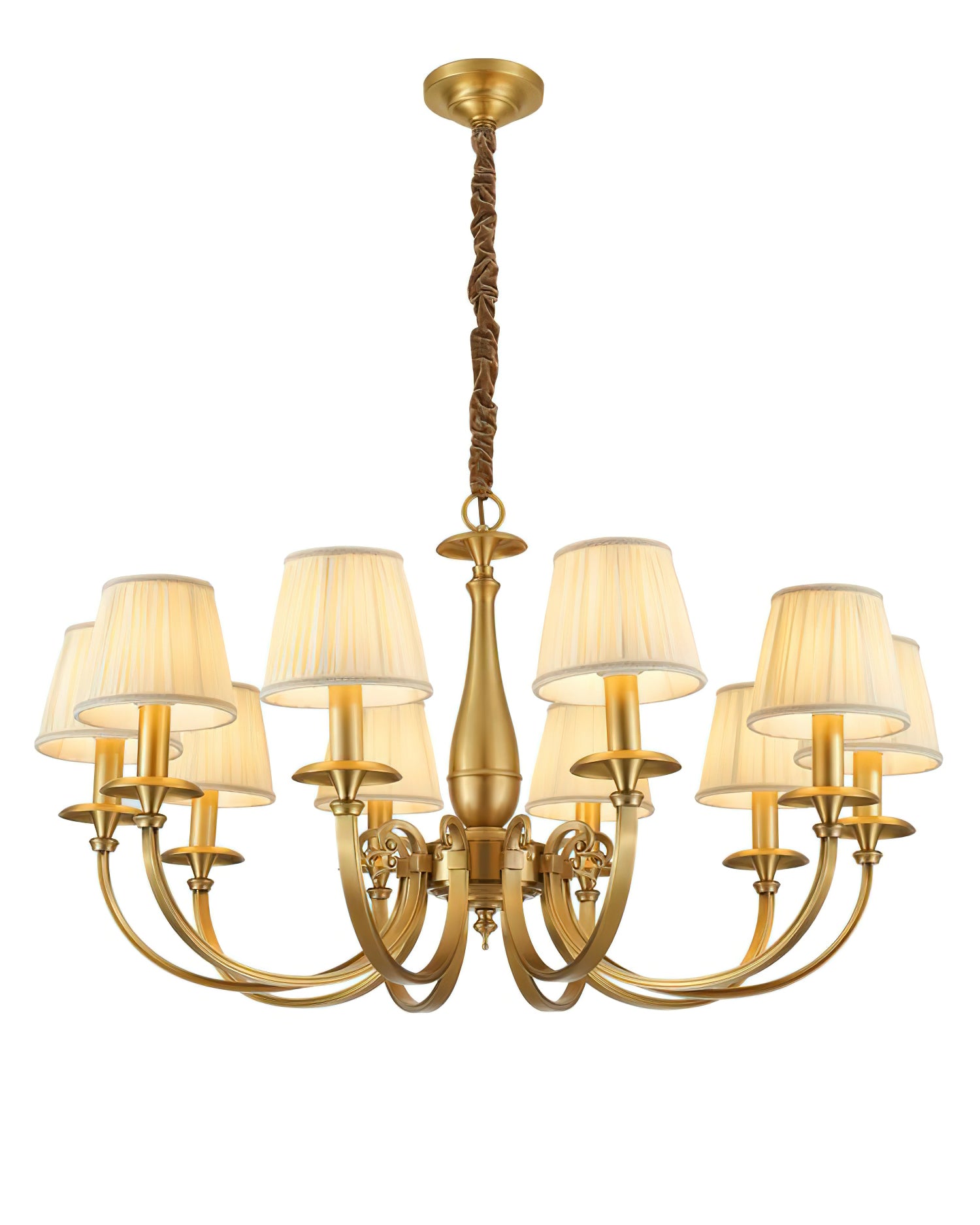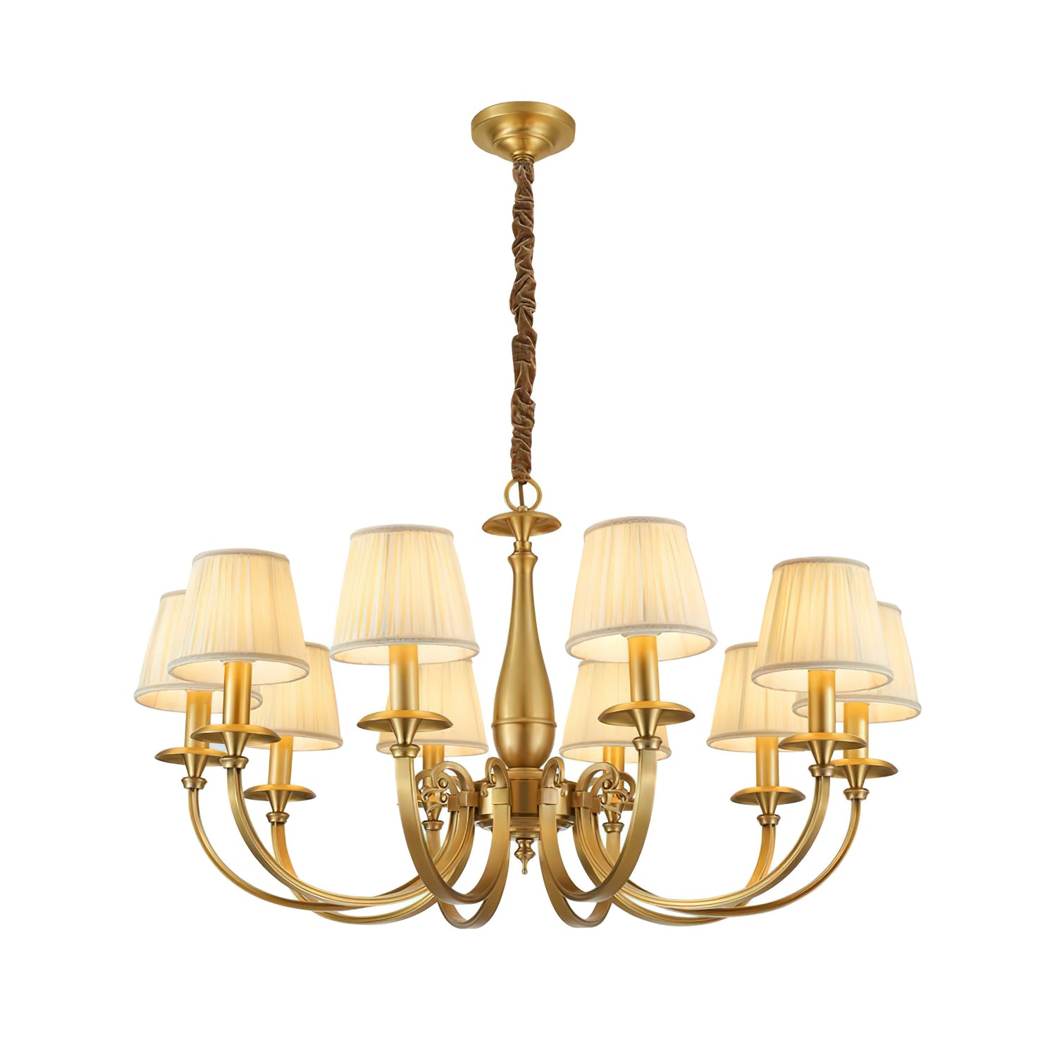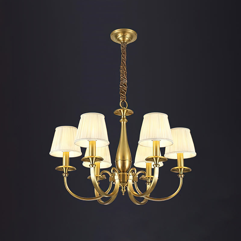 Add a touch of elegance to your space with the Menlo Park Chandelier. Made from premium quality solid brass, this chandelier features beautifully curved arms and detailed finishes, showcasing a classic Georgian style. The white pleated fabric shades add a soft touch to the antique brass design. Elevate your home with this sophisticated and timeless piece.