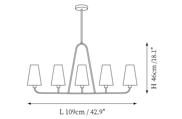 - 5-Lights Size: L 109cm x H 46cm / L42.9″ x H 18.1″