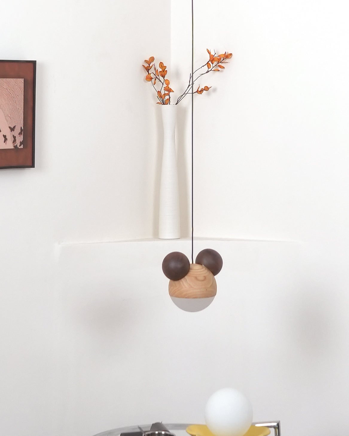 Bring a touch of elegance and sophistication to your home with the Mickey Pendant Lamp. Crafted from luxurious black walnut and ash wood, this minimalist geometric design is complemented by lifelike wood texture embellishments for a truly exclusive look. Enjoy the beauty of nature with the natural wood log and anti-corrosion paint, making it both beautiful and corrosion-resistant.