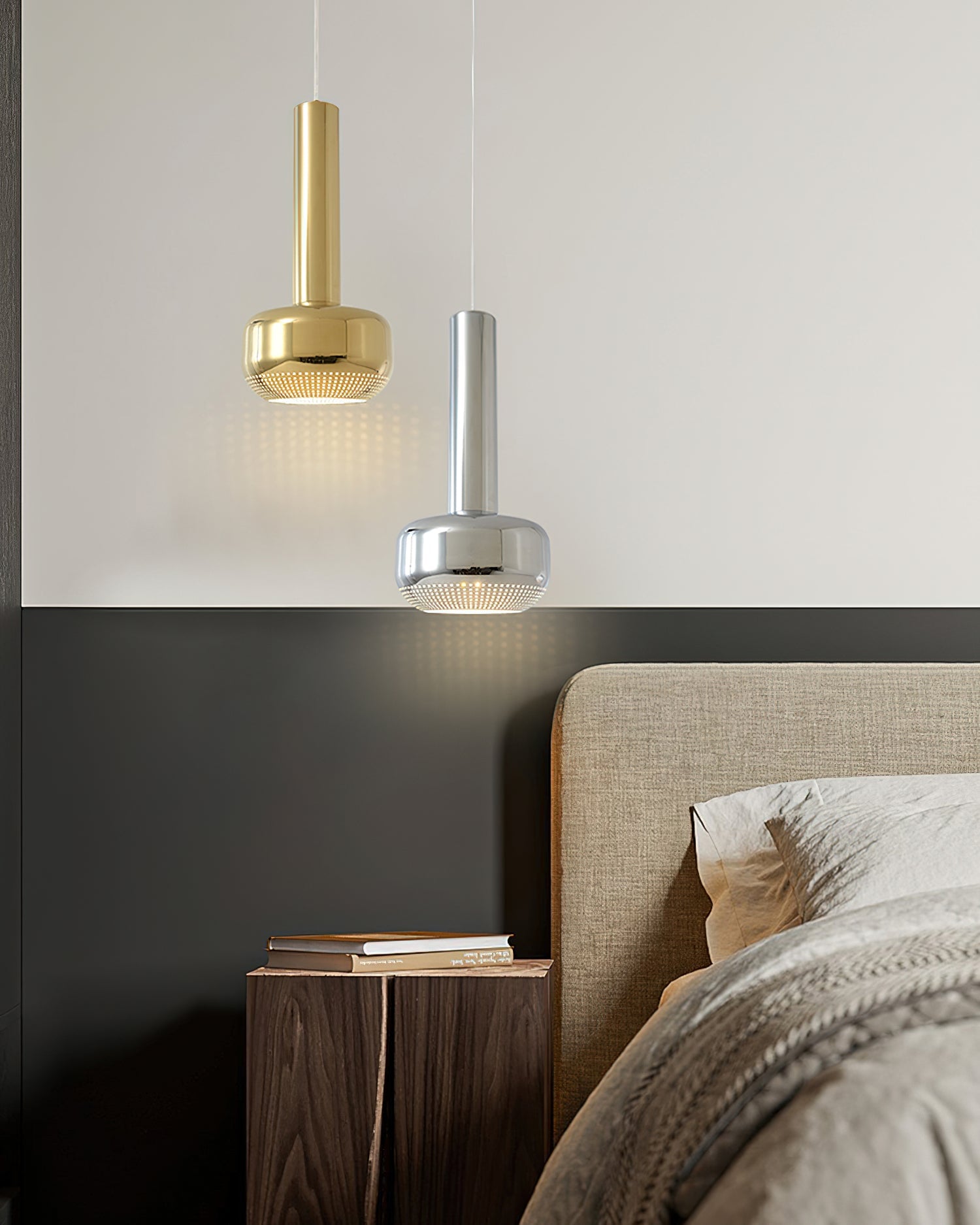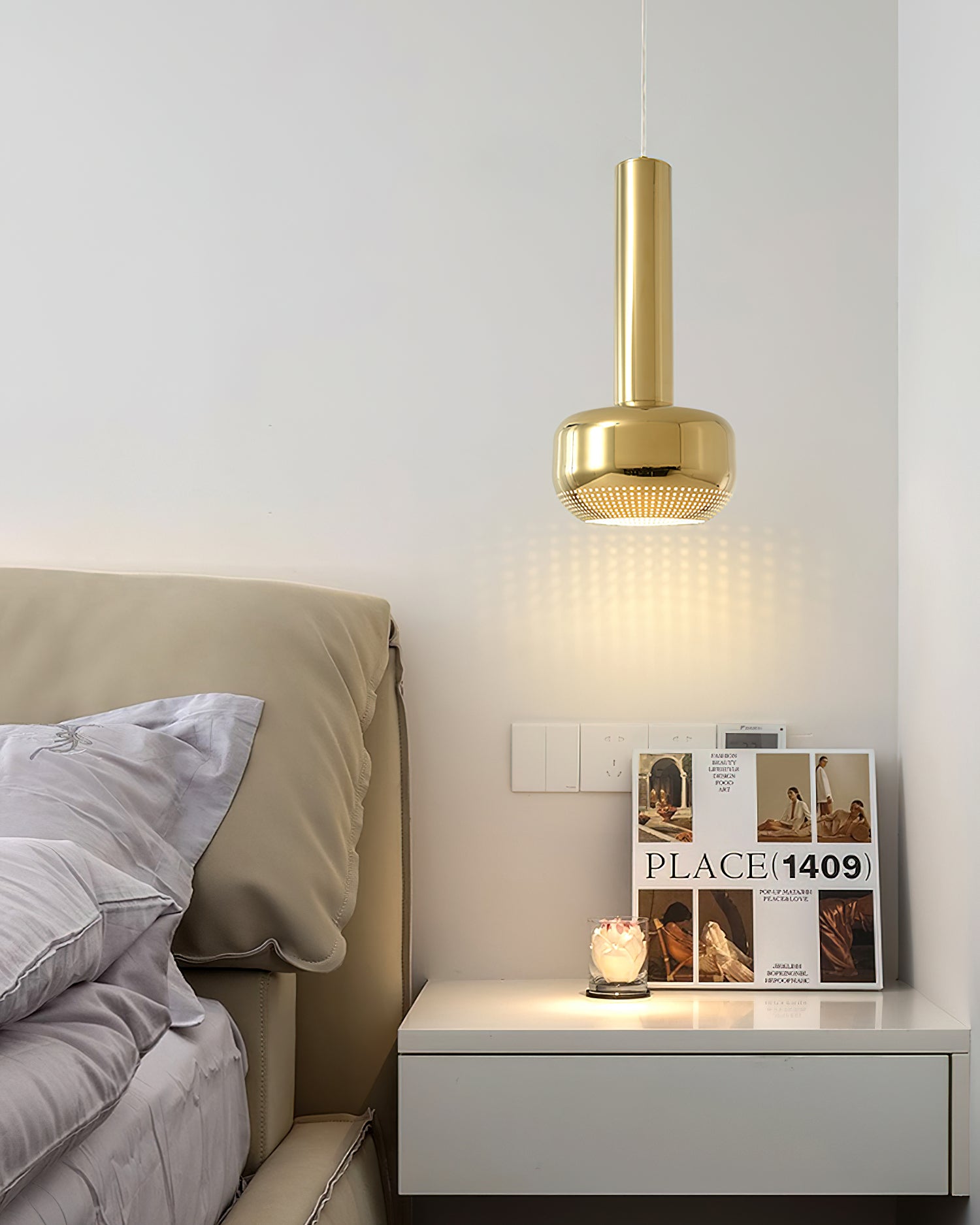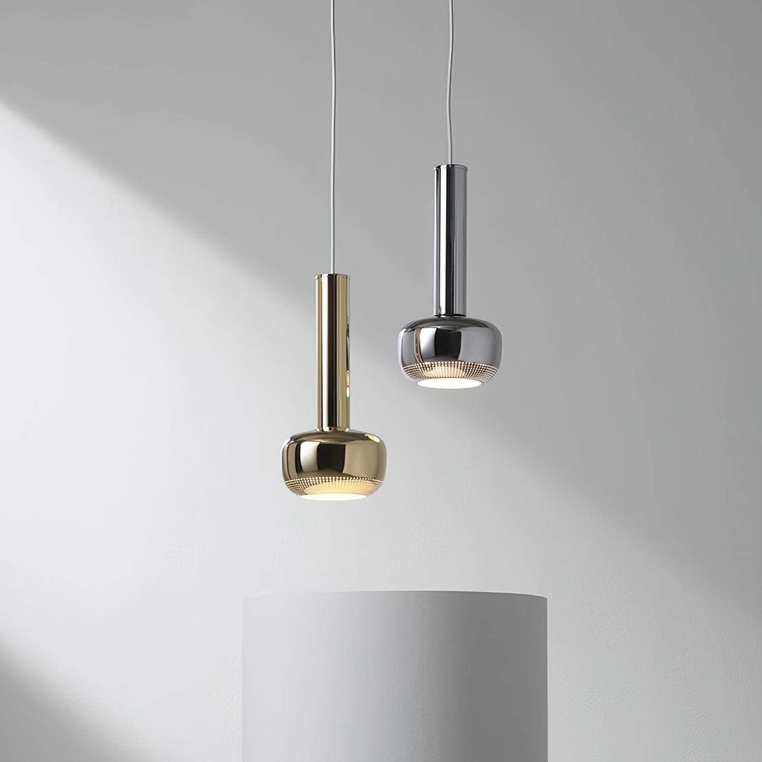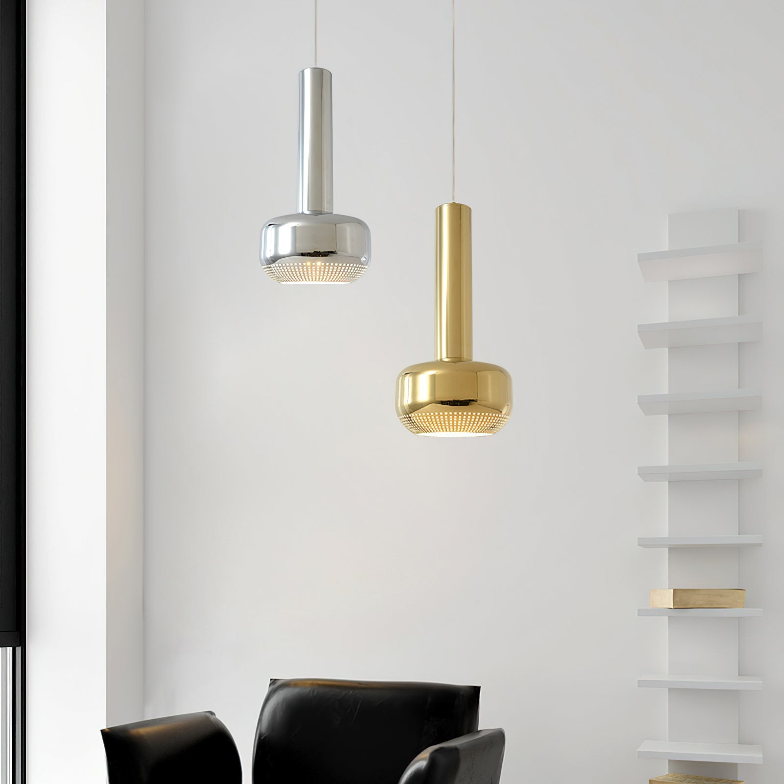 Elevate your interiors with our Microphone Pendant Light from Mooijane. Its contemporary design, luxurious finish, and classic silhouette make it a versatile addition to any space. The vertical design provides focused light, while the subtle perforated pattern adds a sense of grandeur. Whether used alone or in a group, this pendant light is sure to make a sophisticated statement.