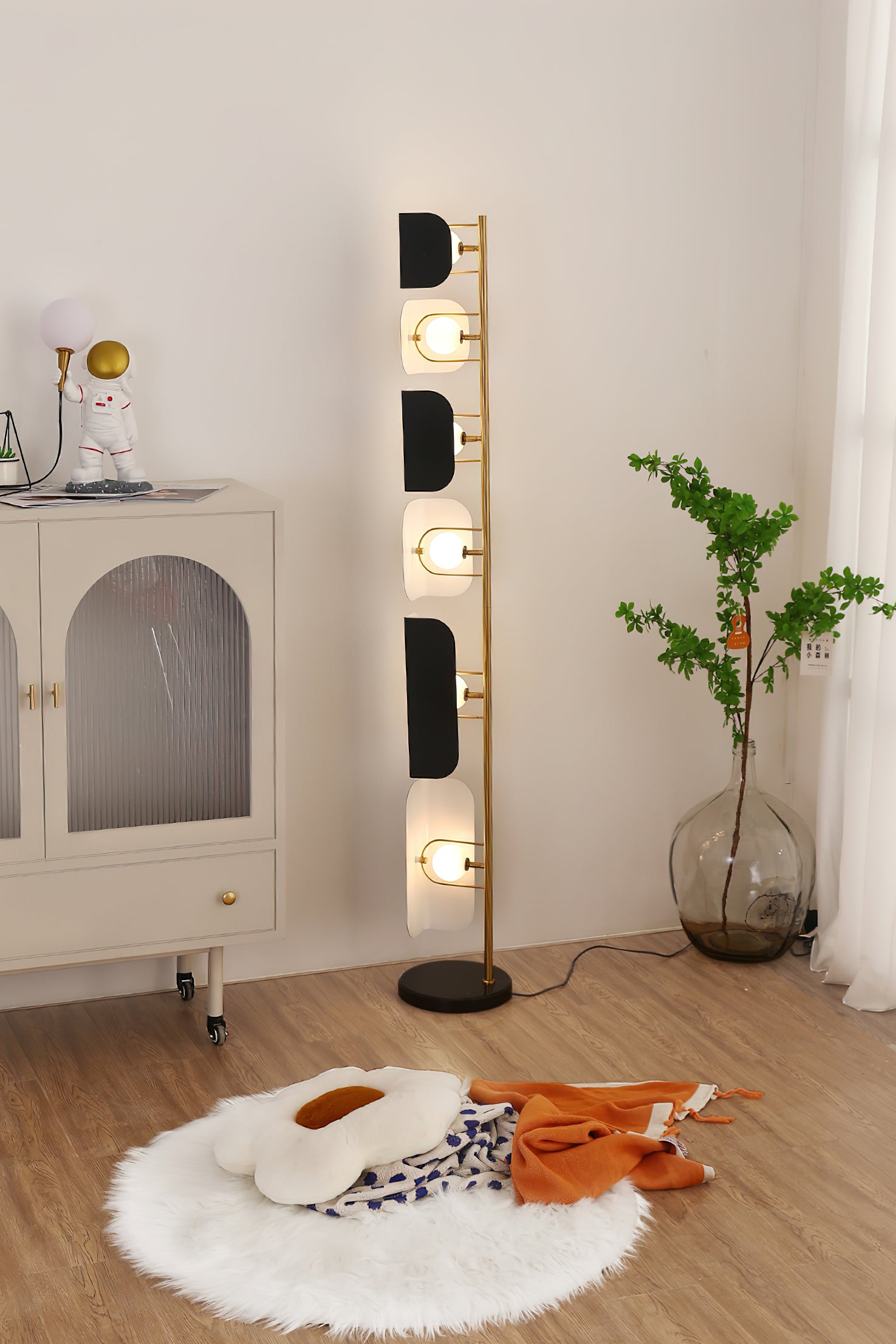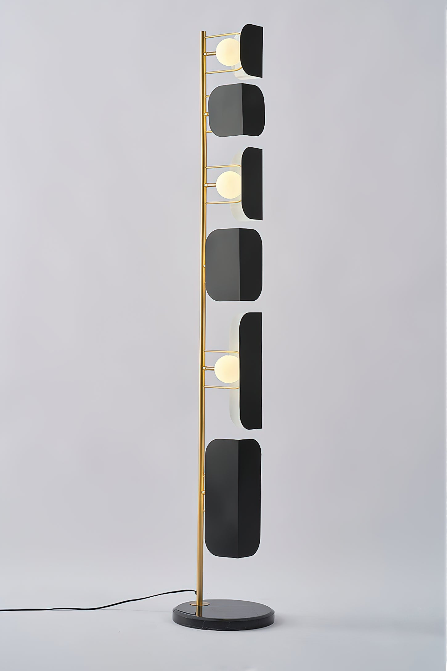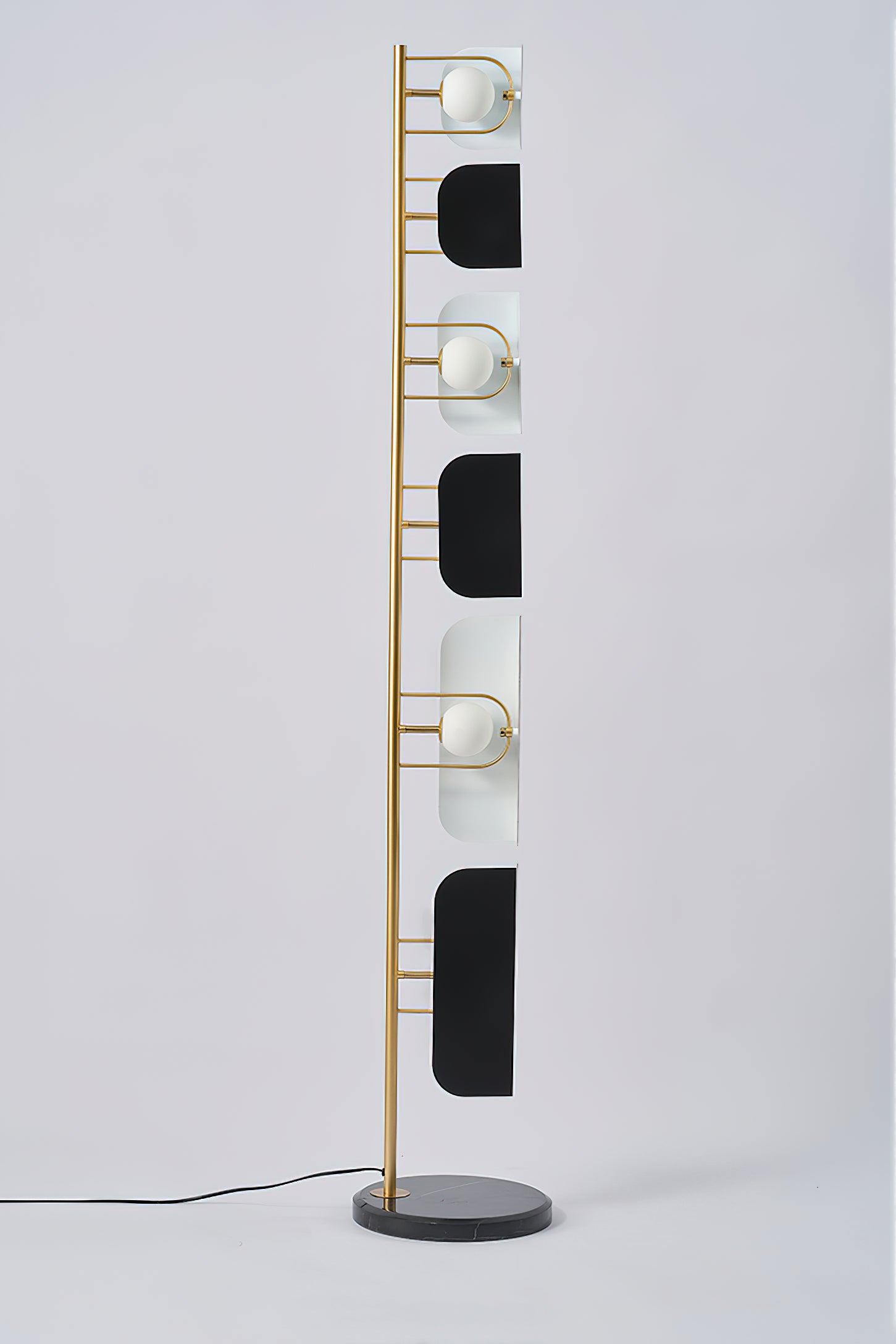 This Milk Jug Floor Lamp features a unique design created using dislocation techniques to create the effect of black and white milk cans. The lamp is completed with a sturdy and elegant marble base and high-quality hardware material. Its distinctive design is sure to add a stylish accent to any room.