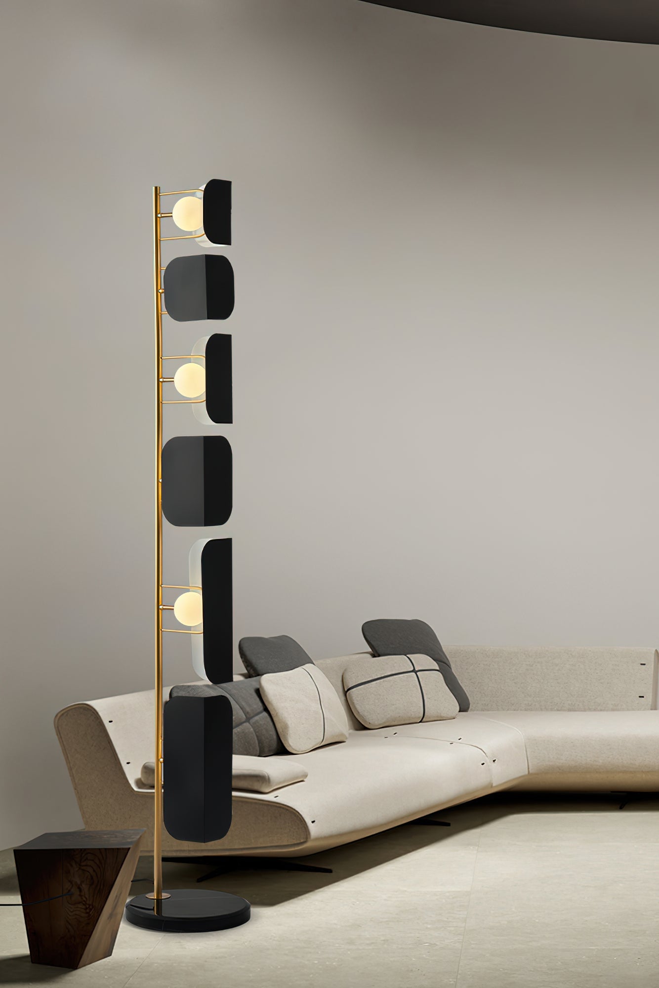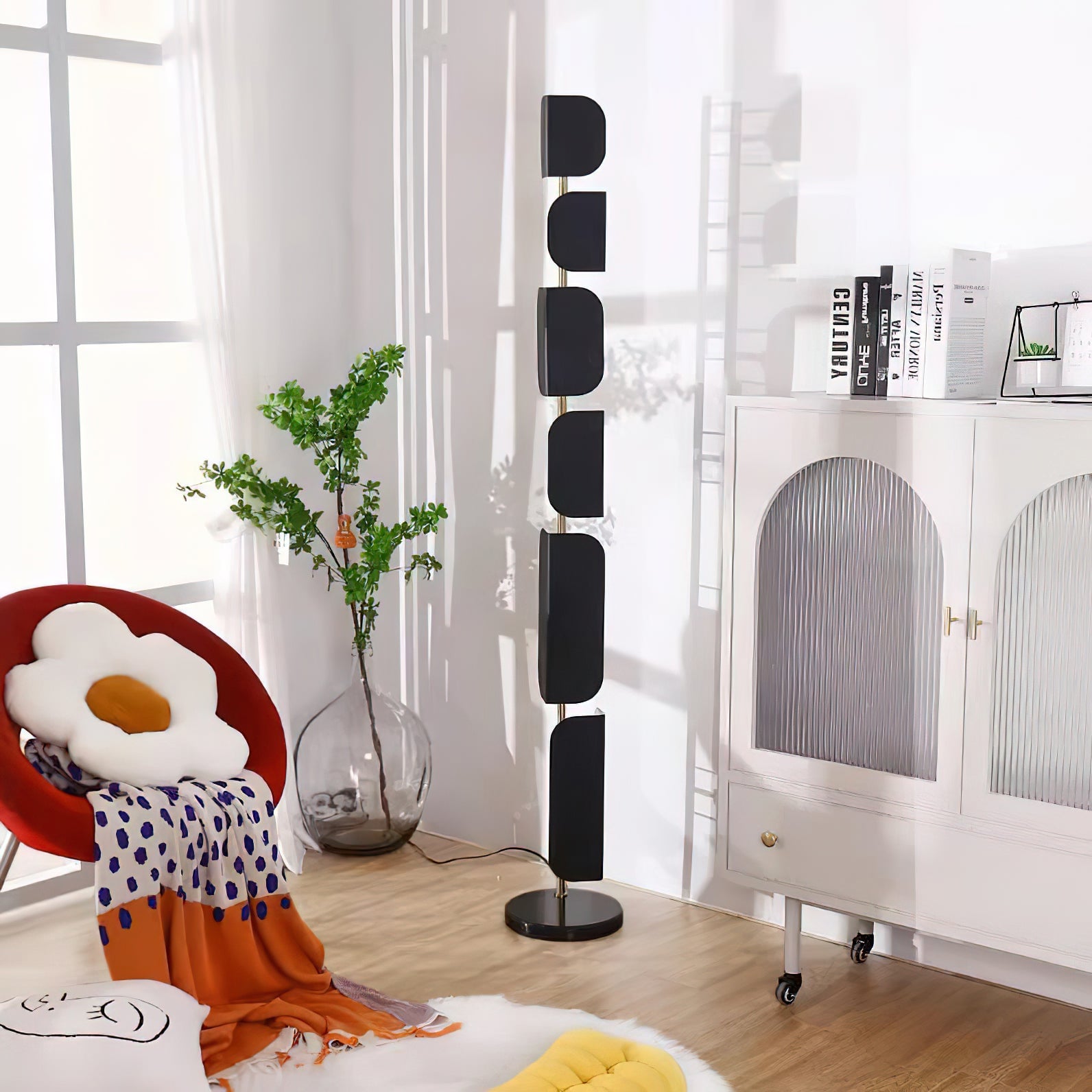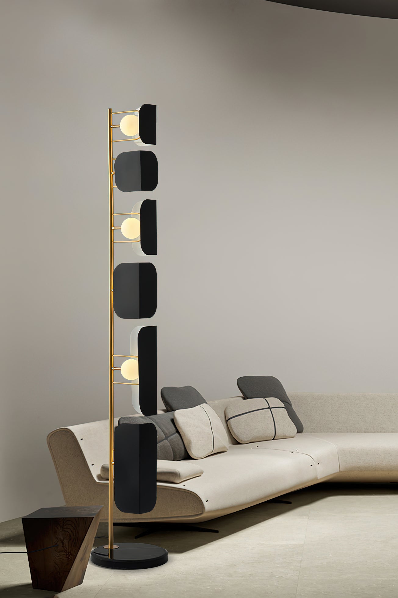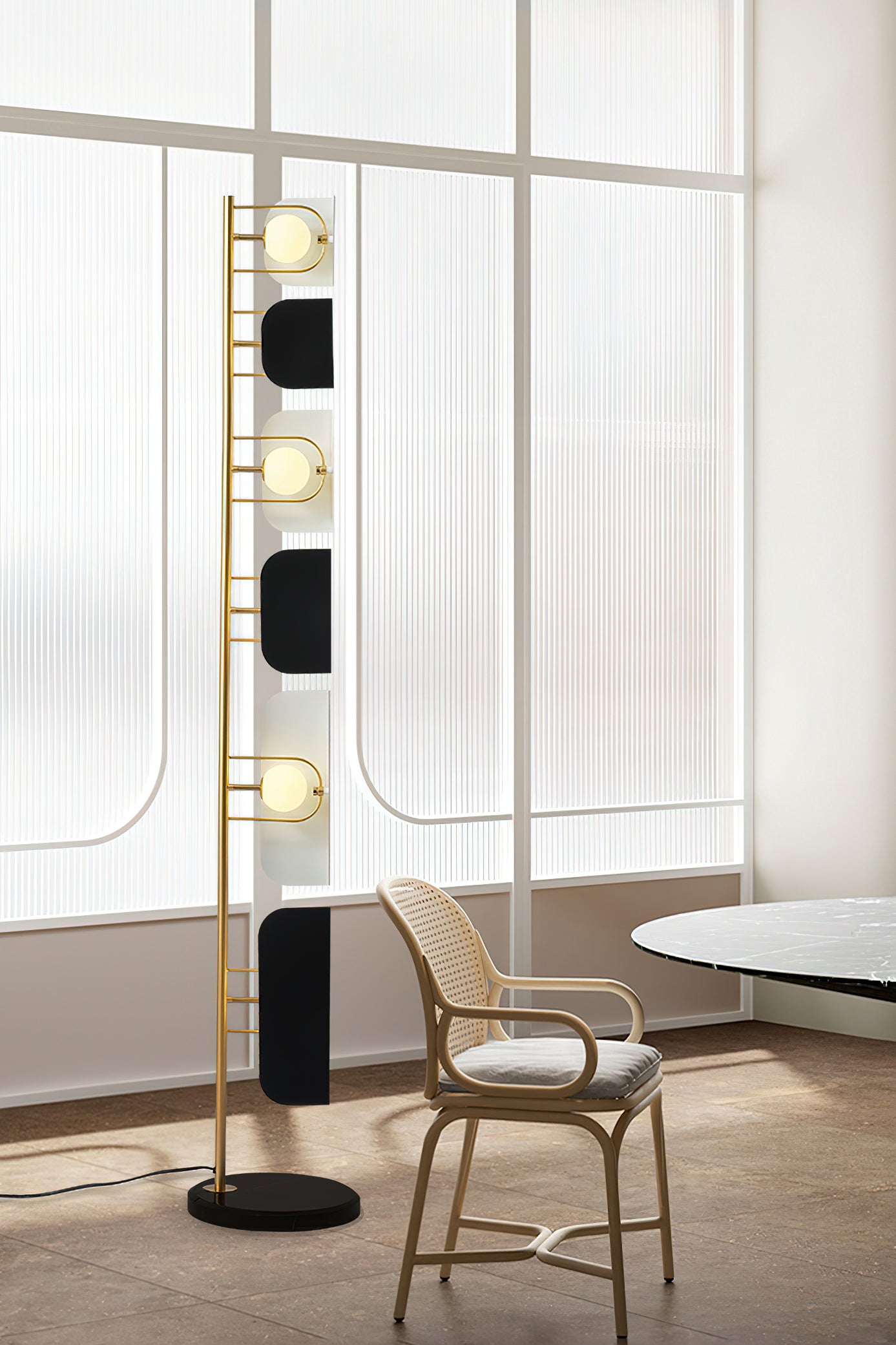 This Milk Jug Floor Lamp features a unique design created using dislocation techniques to create the effect of black and white milk cans. The lamp is completed with a sturdy and elegant marble base and high-quality hardware material. Its distinctive design is sure to add a stylish accent to any room.