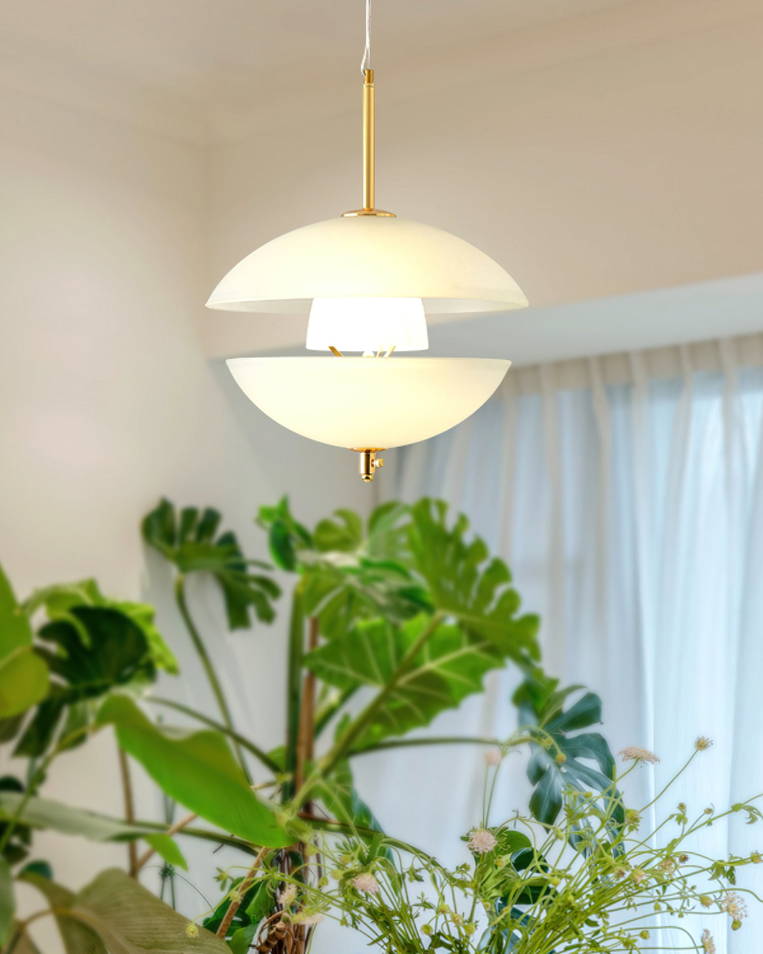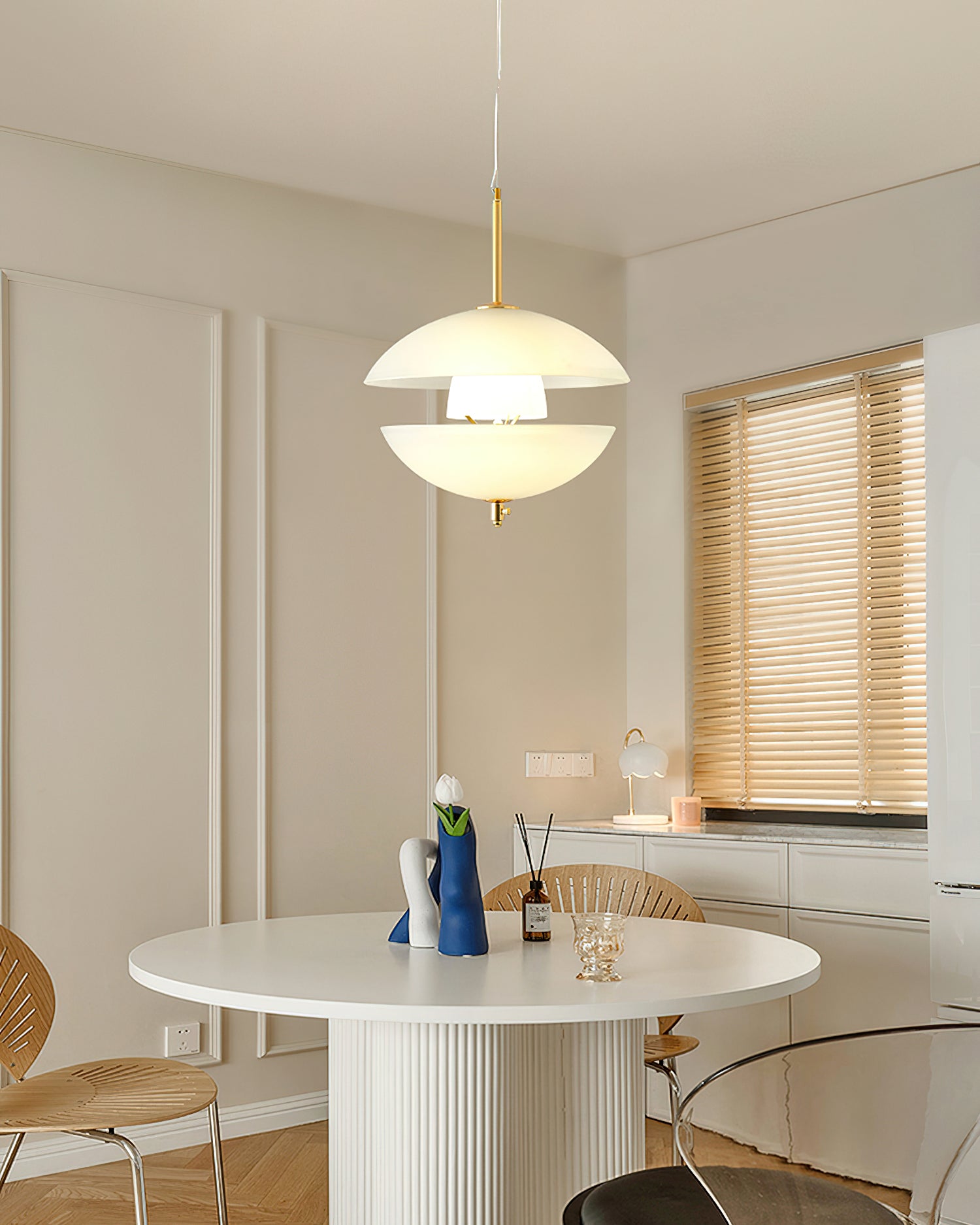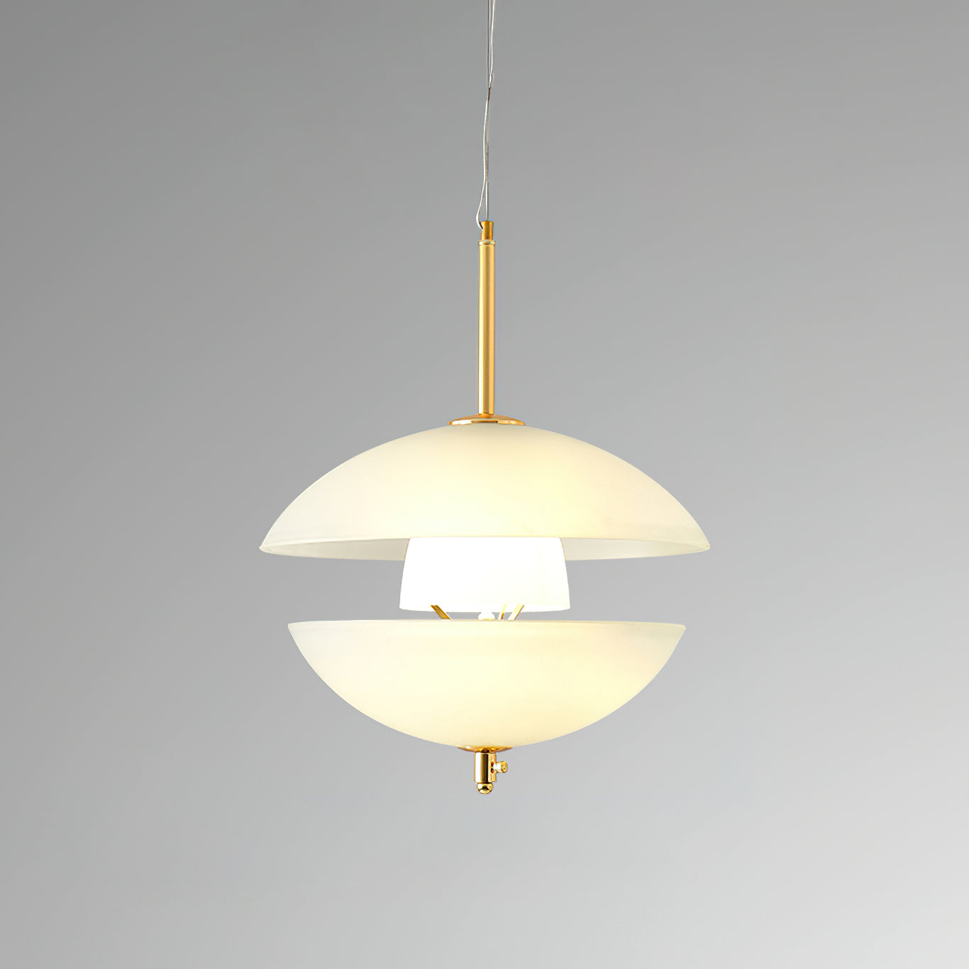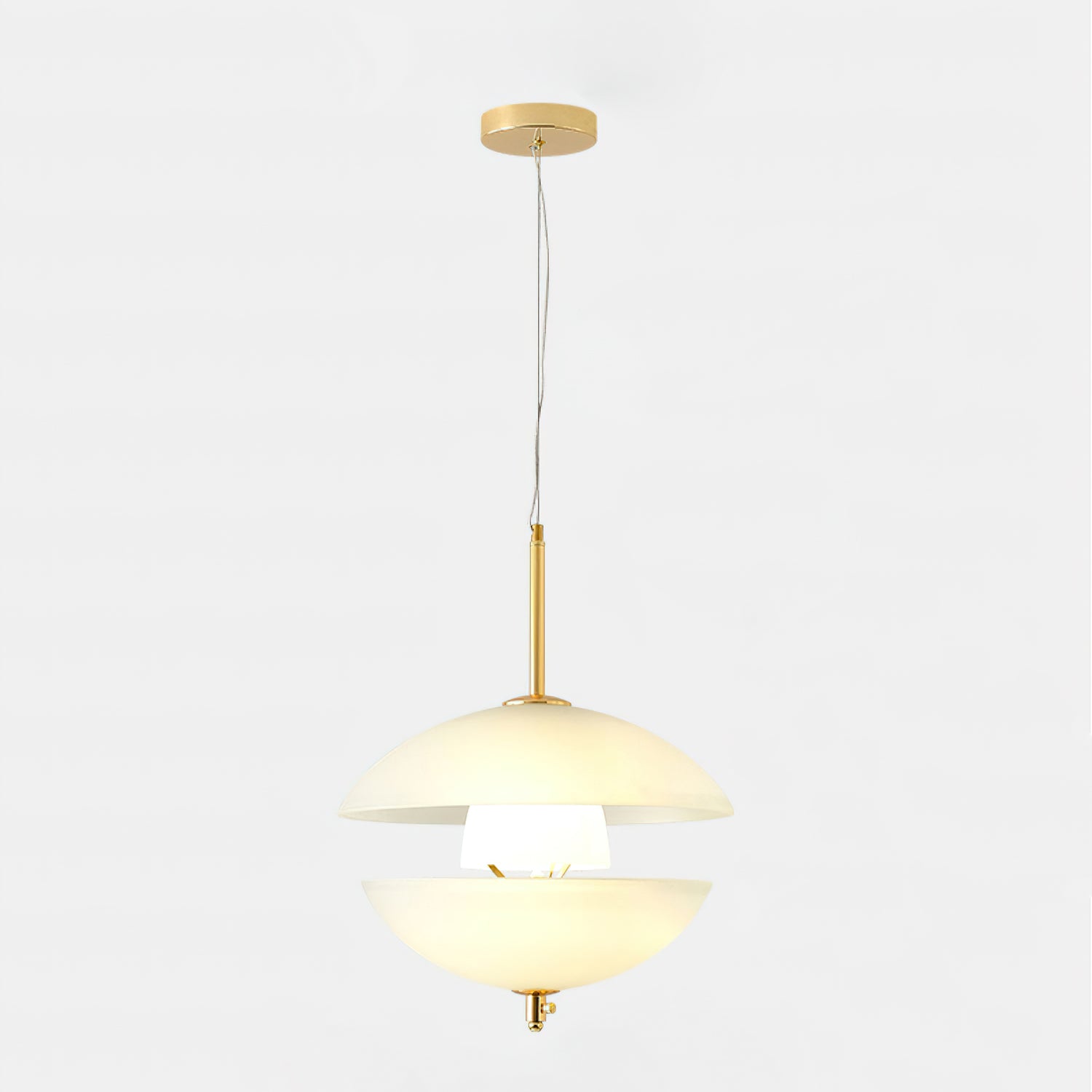 Crafted by Mooijane, this modern and timeless Miller Shell Pendant Light features a sparkling pearl embedded within its delicate shell design. Transform the mood of any room with a simple swipe. The balanced opaline glass and metal hardware make it a great addition to any dining or living area. Equally beautiful open or closed, that effortlessly slide open the shell-like shades to reveal the pearlescent light source within.