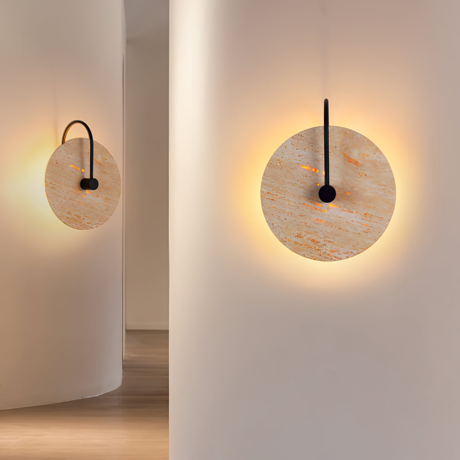 Minimalist Circular Travertine Wall Sconce