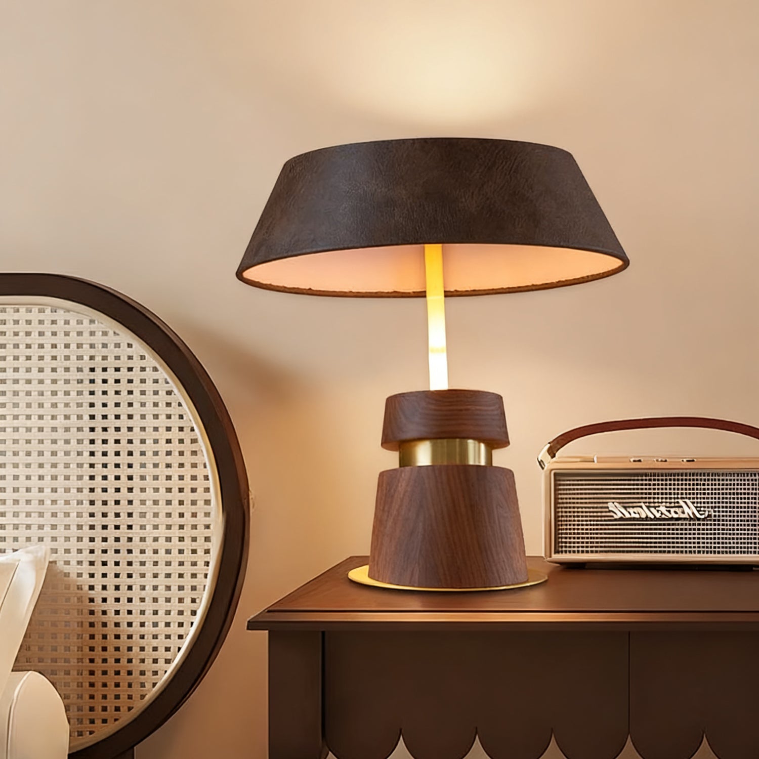 - Lampshade: Brown.