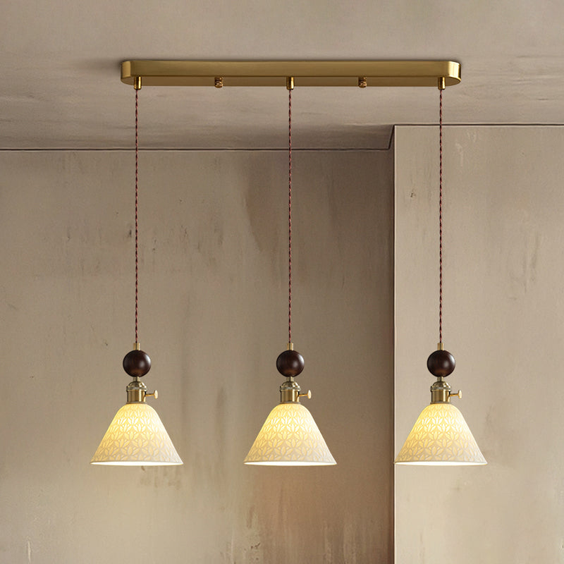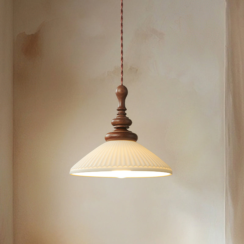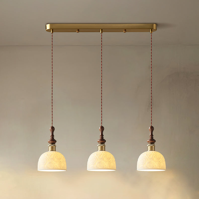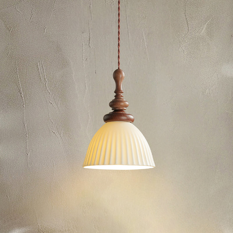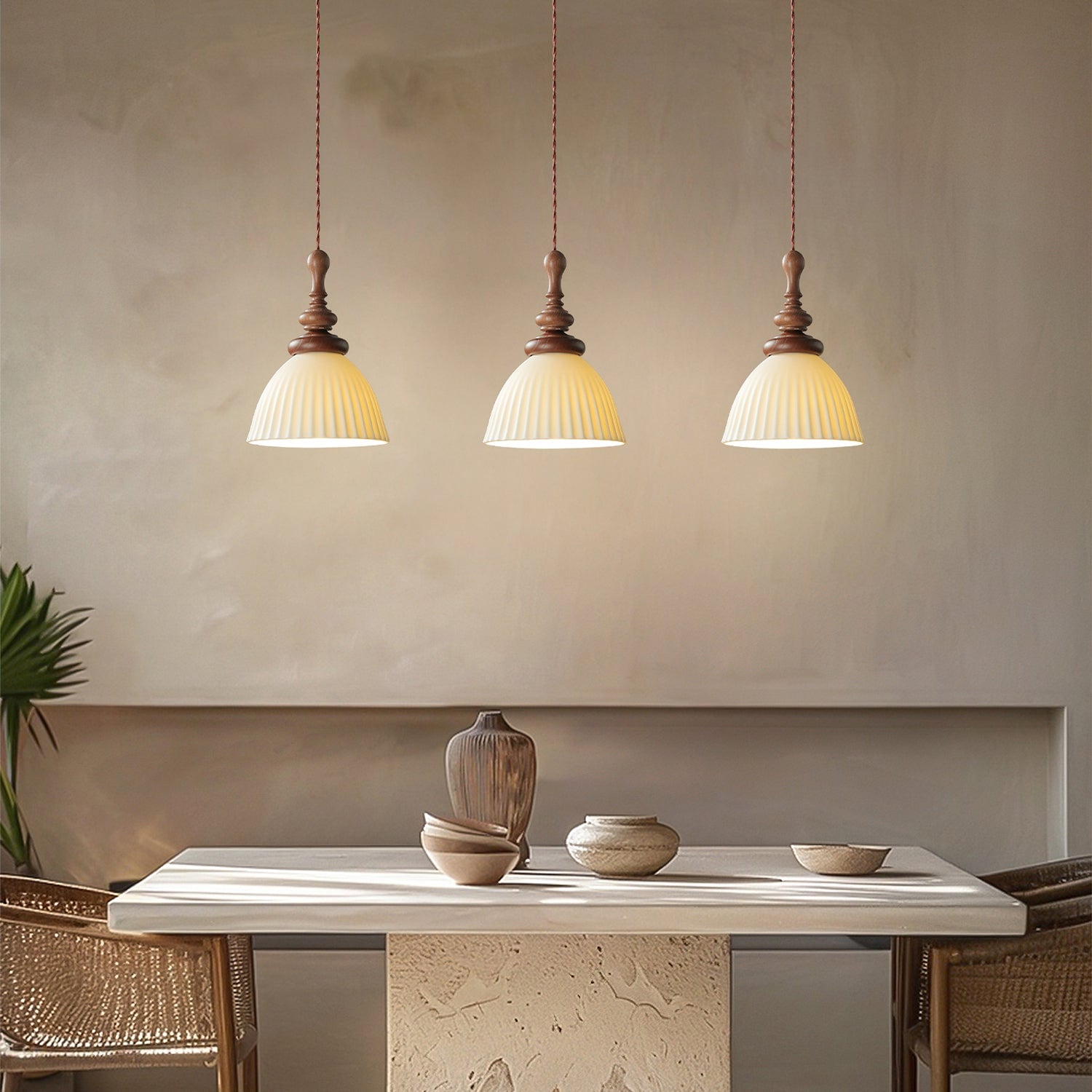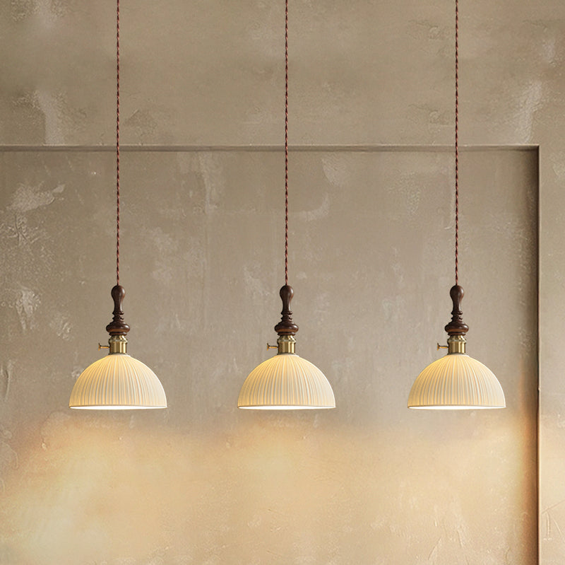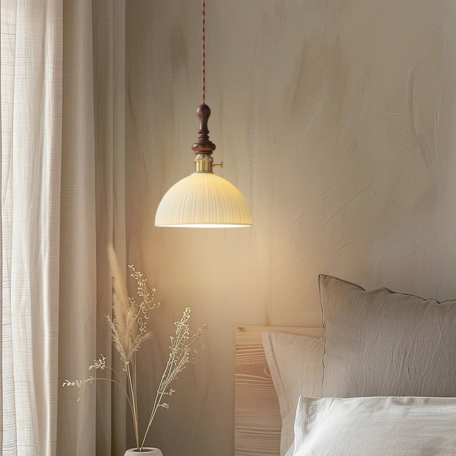 The Mishya Pendant Lamp by Mooijane blends artistic craftsmanship with natural warmth. Its ceramic shade features an intricate three-dimensional pattern that, when illuminated, casts a soft play of light and shadow reminiscent of a blooming flower. The combination of warm wood and a metal cap creates a refined balance of texture and form. Whether lit or unlit, this pendant lamp brings quiet elegance and poetic charm to dining areas, bedrooms, or entryways.