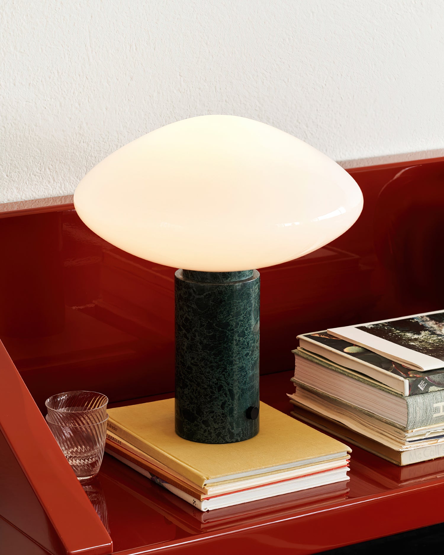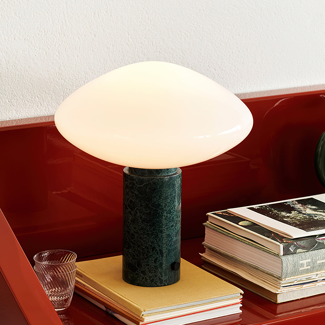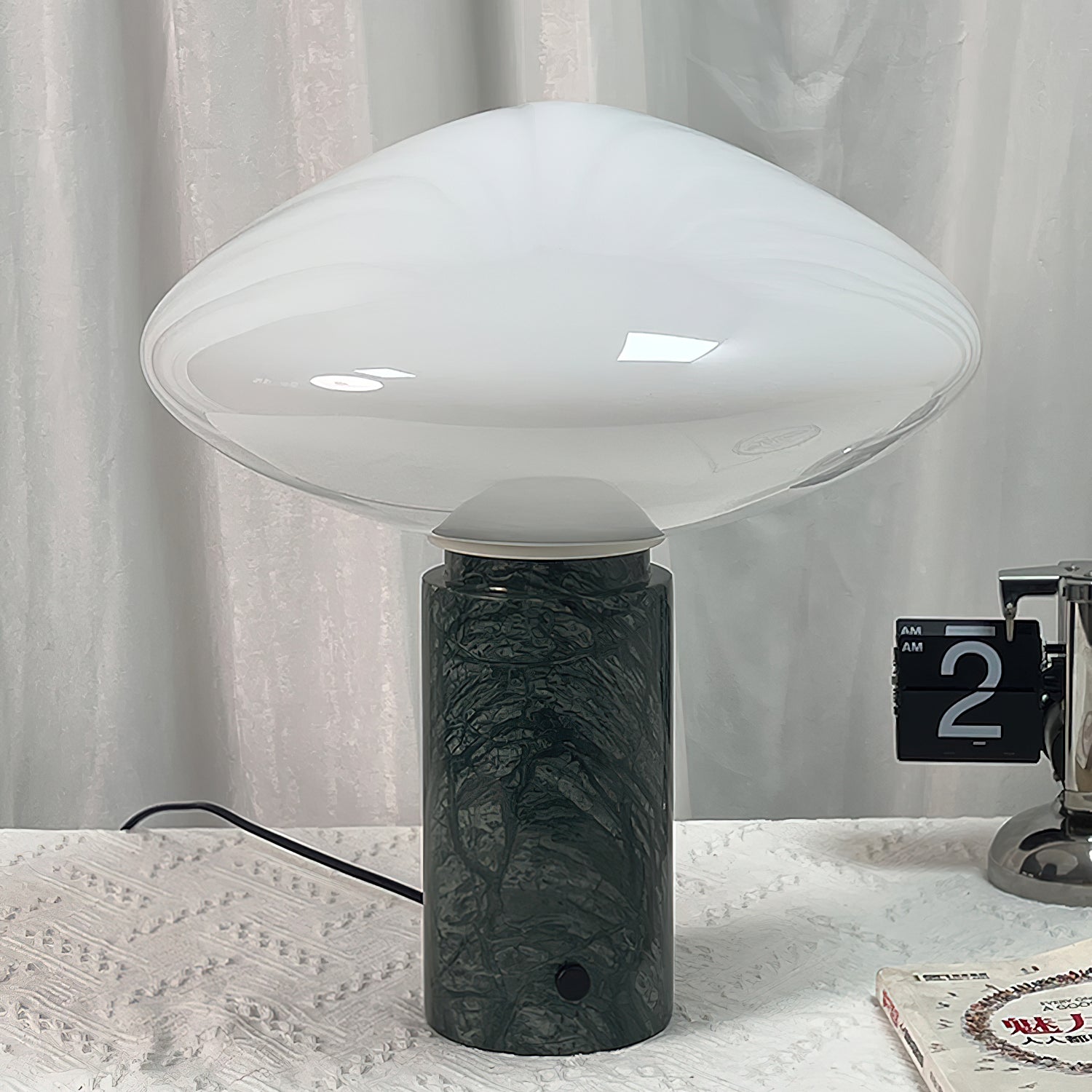 Give your space a touch of elegance and practicality with Mooijane's Mist Table Lamp. Its bar glass shade and marble base emit a soft, diffused light, creating a warm and inviting ambiance. Elevate your room with this beautiful and functional piece of art.