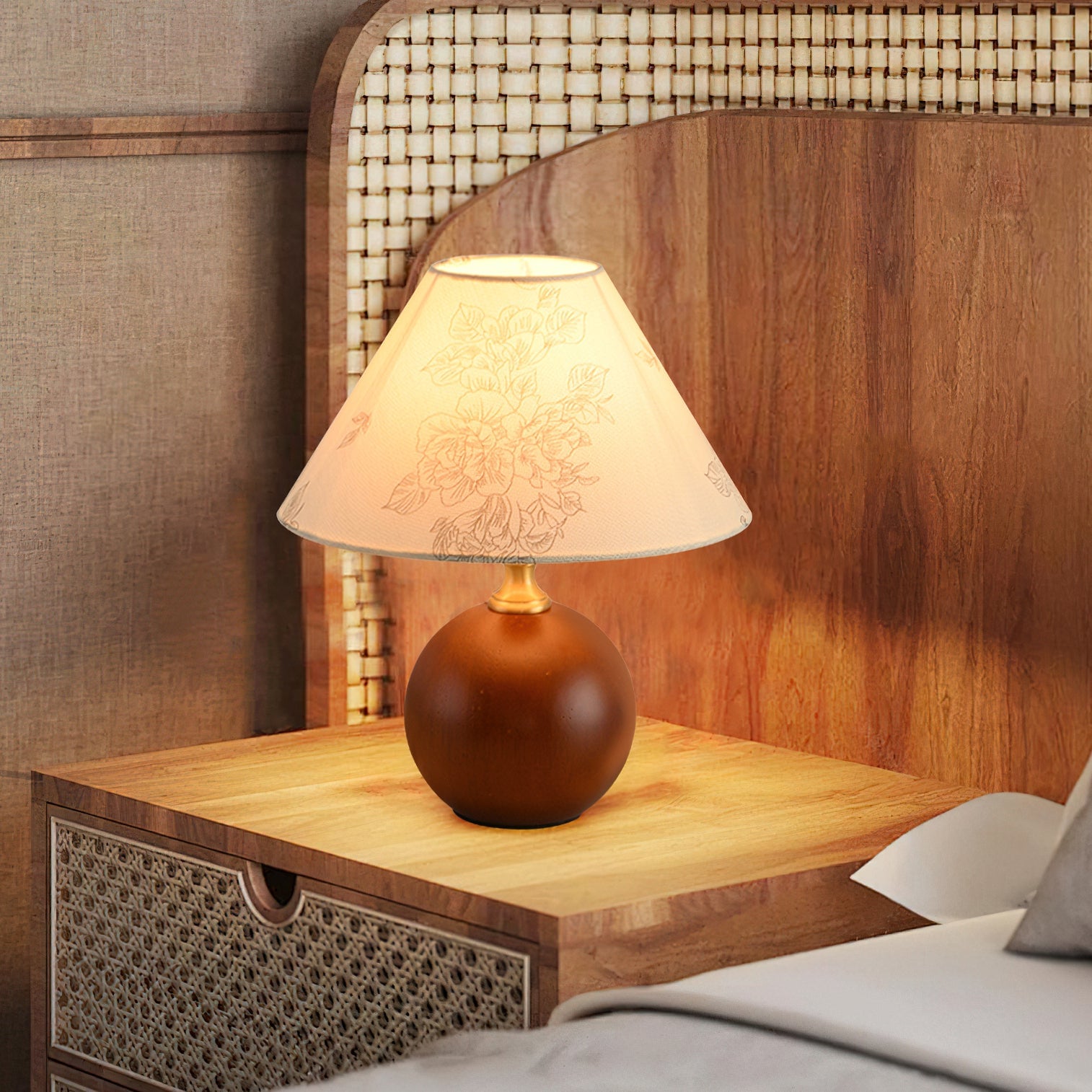 The Mlins Table Lamp from Mooijane blends natural warmth with elegant design. Its smooth, spherical wooden base conveys a sense of solidity, while the fabric shade, adorned with delicate floral patterns, softly diffuses light. This harmonious combination creates a cozy and inviting ambiance, making it an ideal accent for bedrooms, living rooms, or studies.