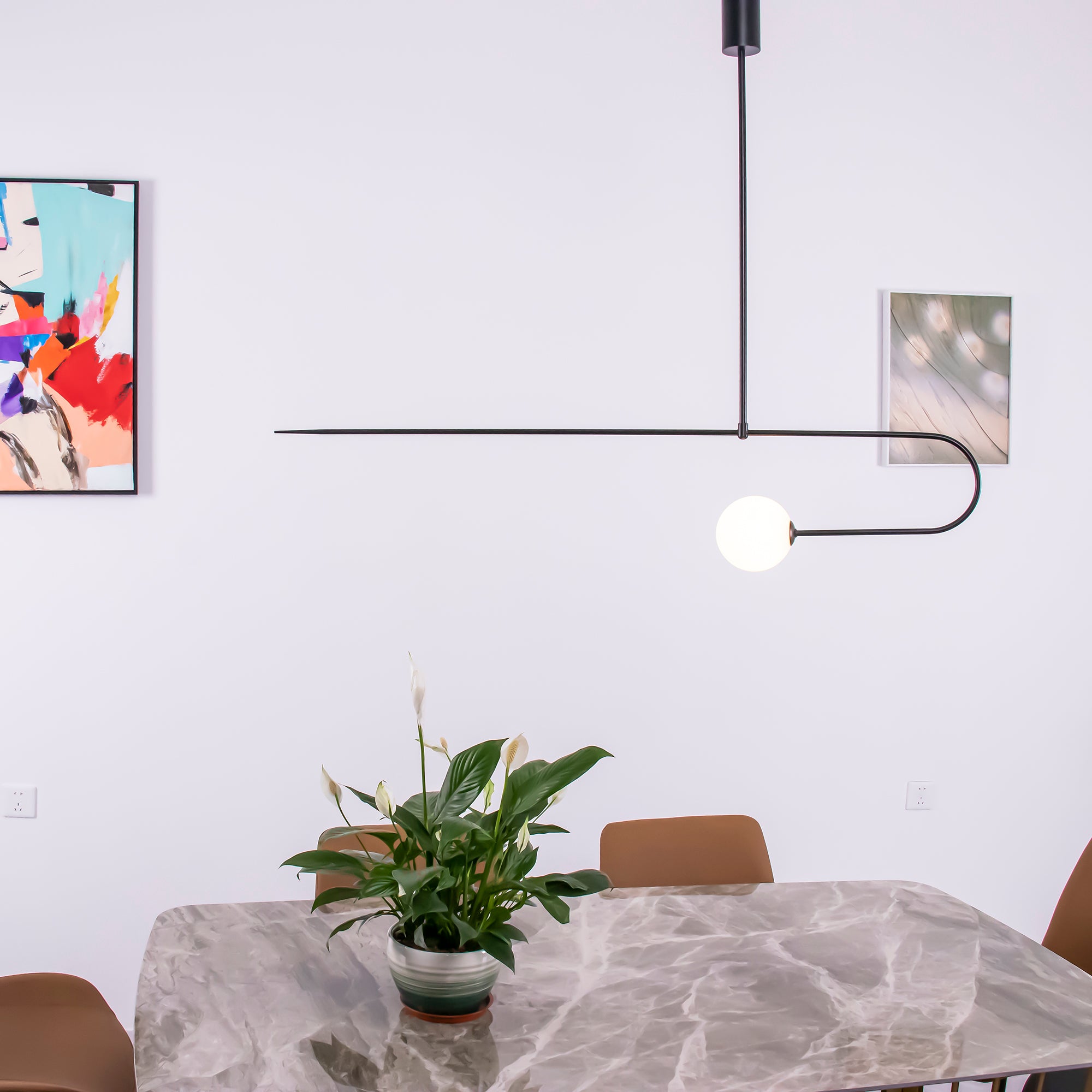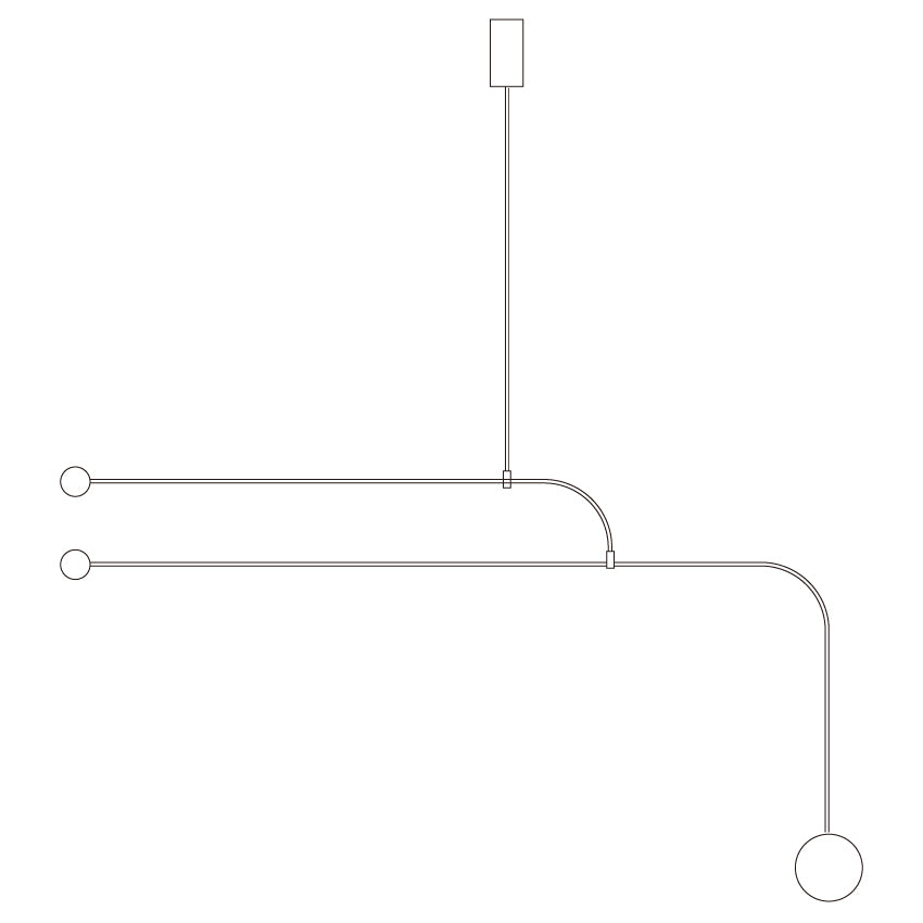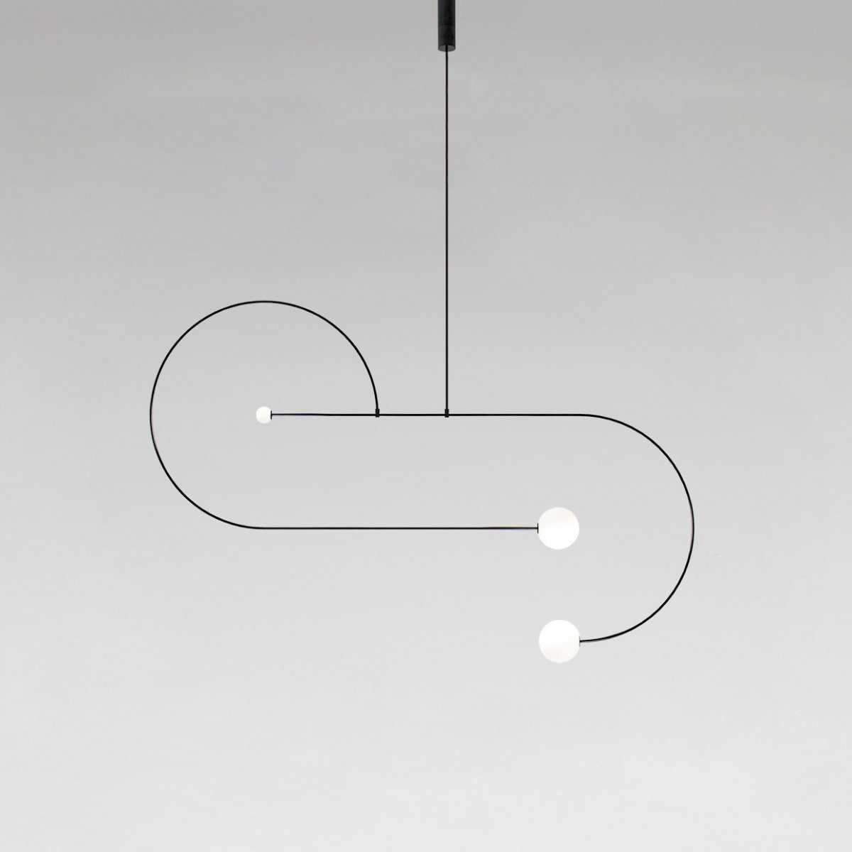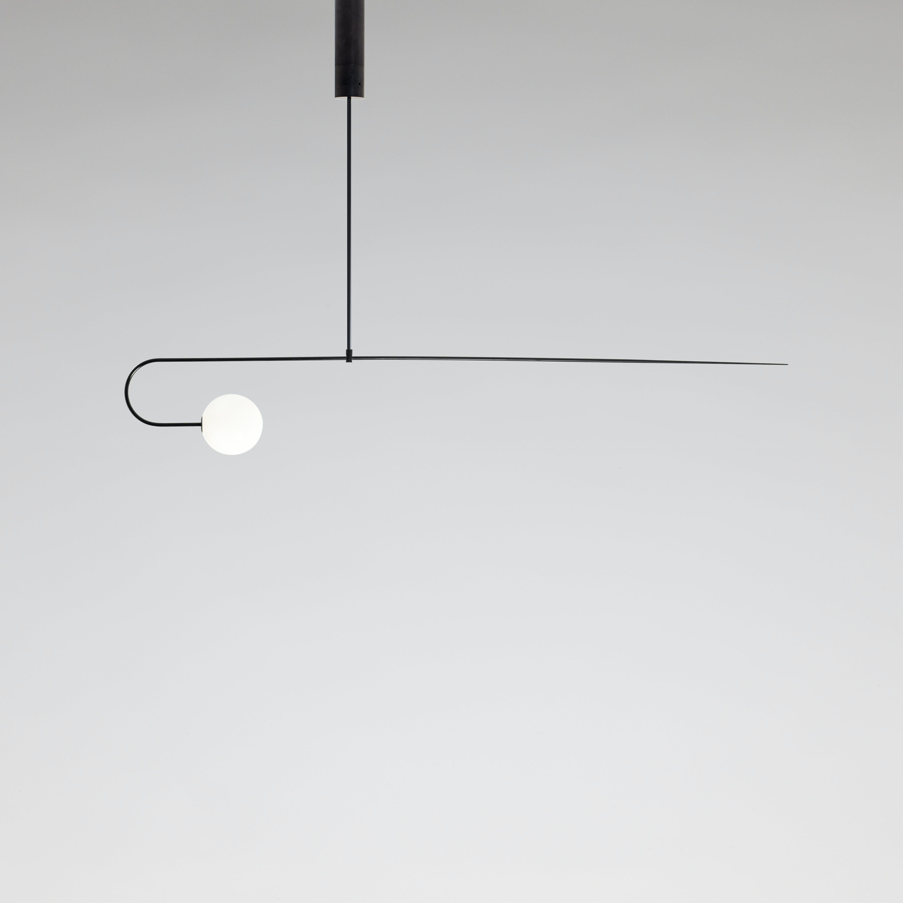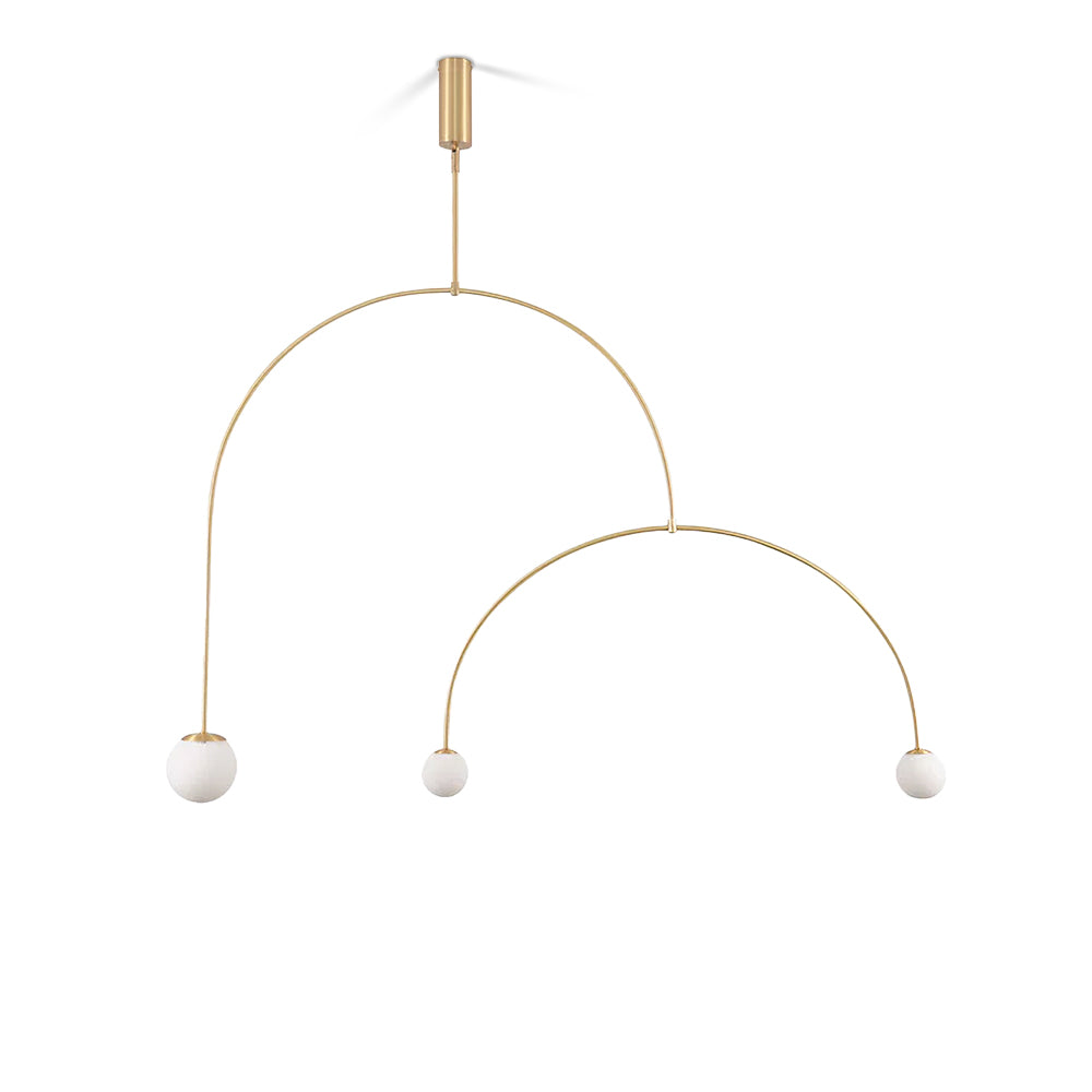 This lighting reveals a minimalist design with very graphic and uncluttered forms. These lines in the air have several sources of warm light, with diffusers in an opaline-blown glass.