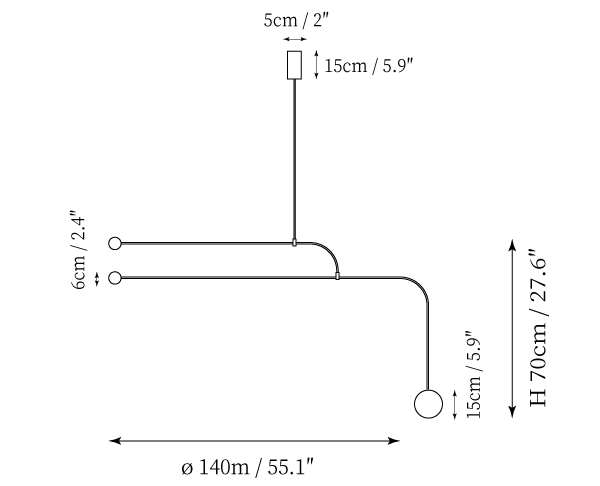- Mobile Chandelier 3 size: L 140cm x H 30cm /L 55.1 ″ x H 11.8″