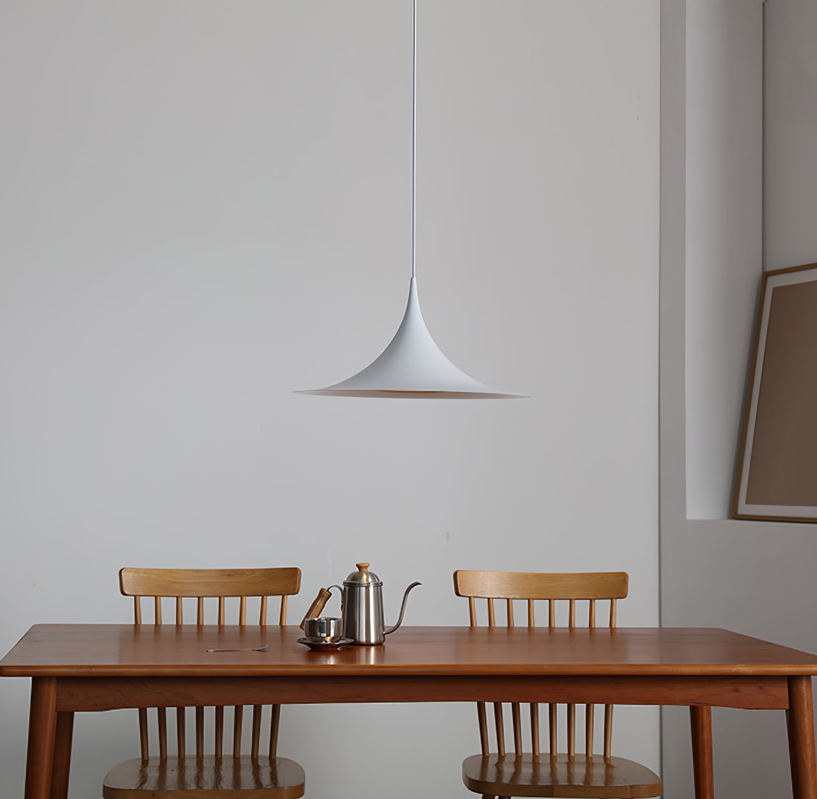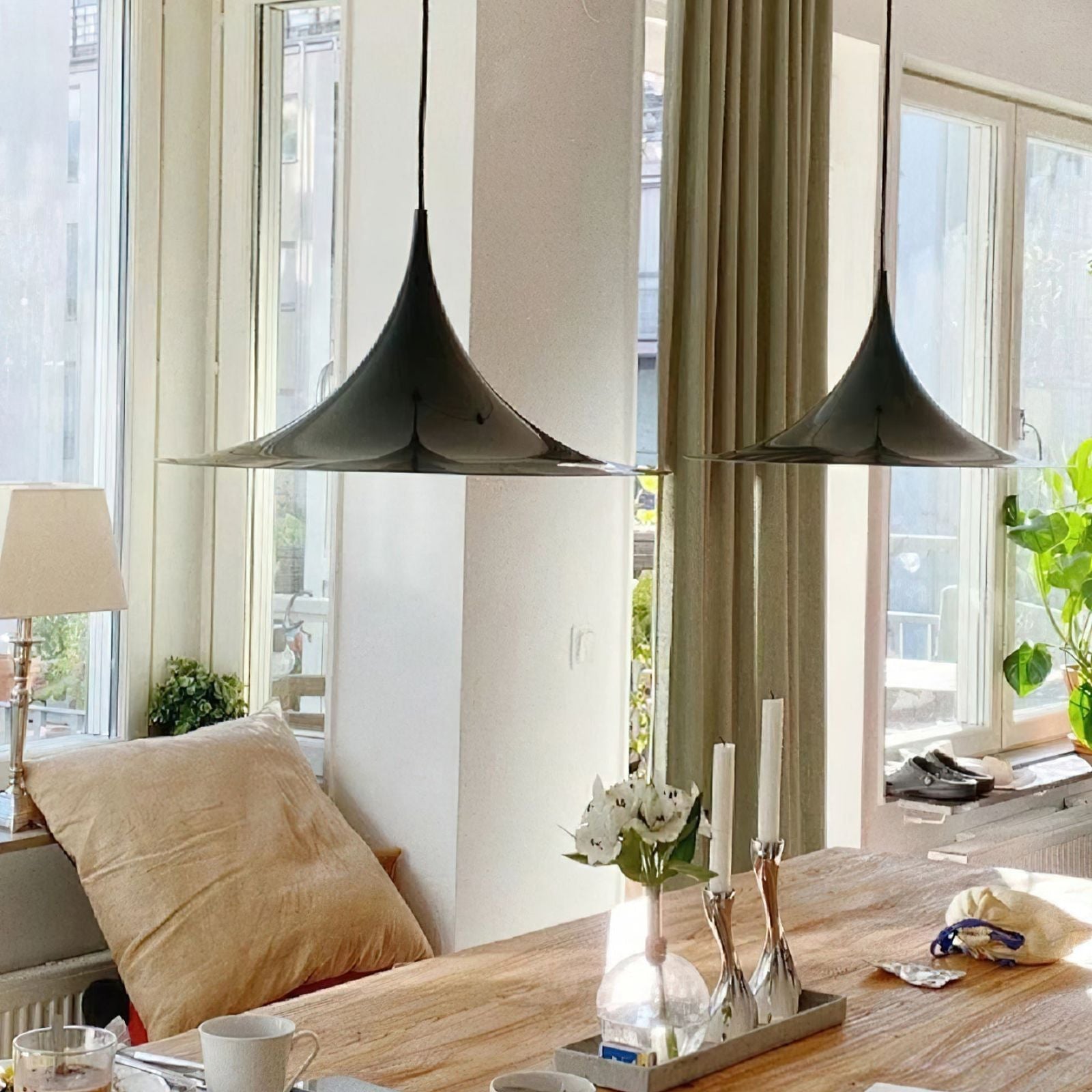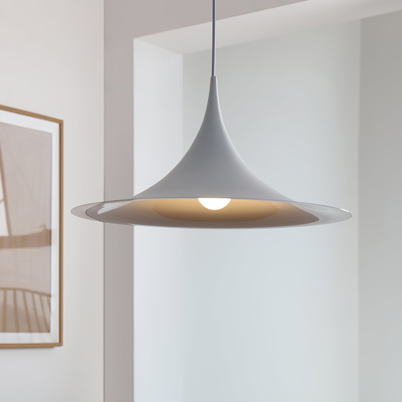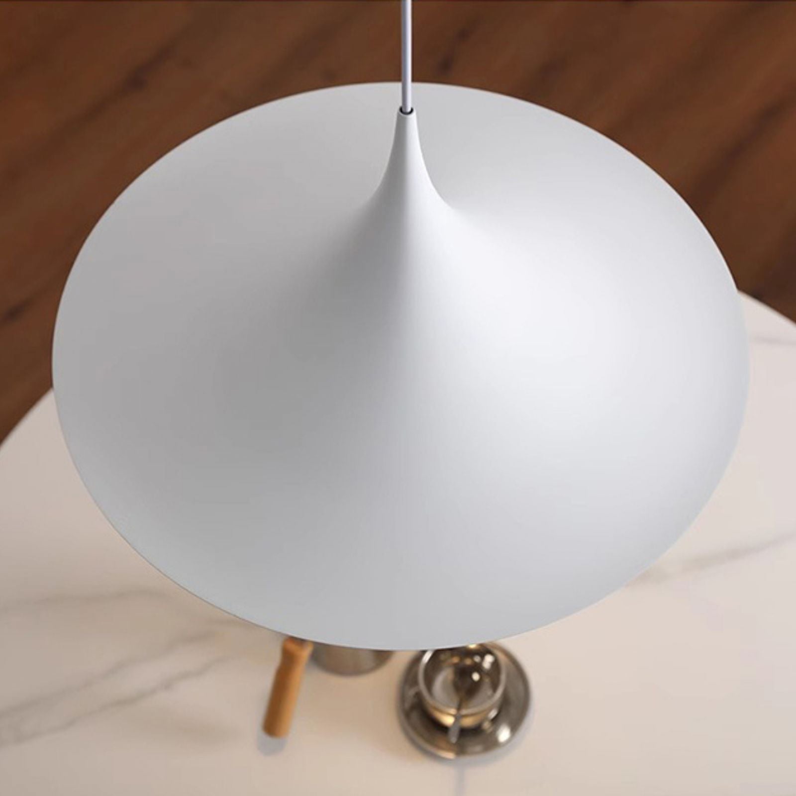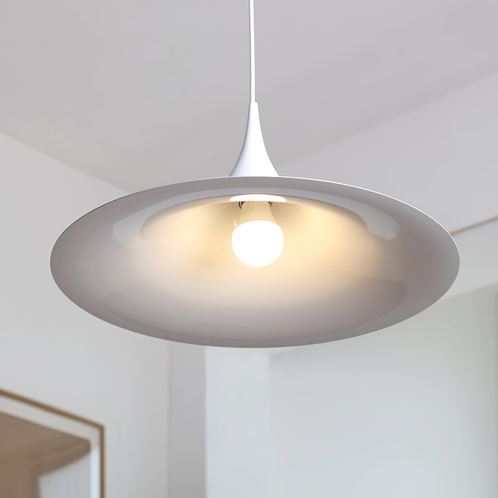 This Modern Trumpet Glass Hanging Light is a perfect combination of simplicity and elegance. Its unique trumpet-shaped glass lampshade design resembles a blooming flower, creating a warm and soft light. The lampshade is crafted from high-quality glass with a smooth surface and excellent light transmittance. It not only provides ample illumination for the space but also fosters a gentle ambiance. The metal pendant complements the lampshade beautifully. The exquisite craftsmanship and modern lines enhance the fashionability of this chandelier.