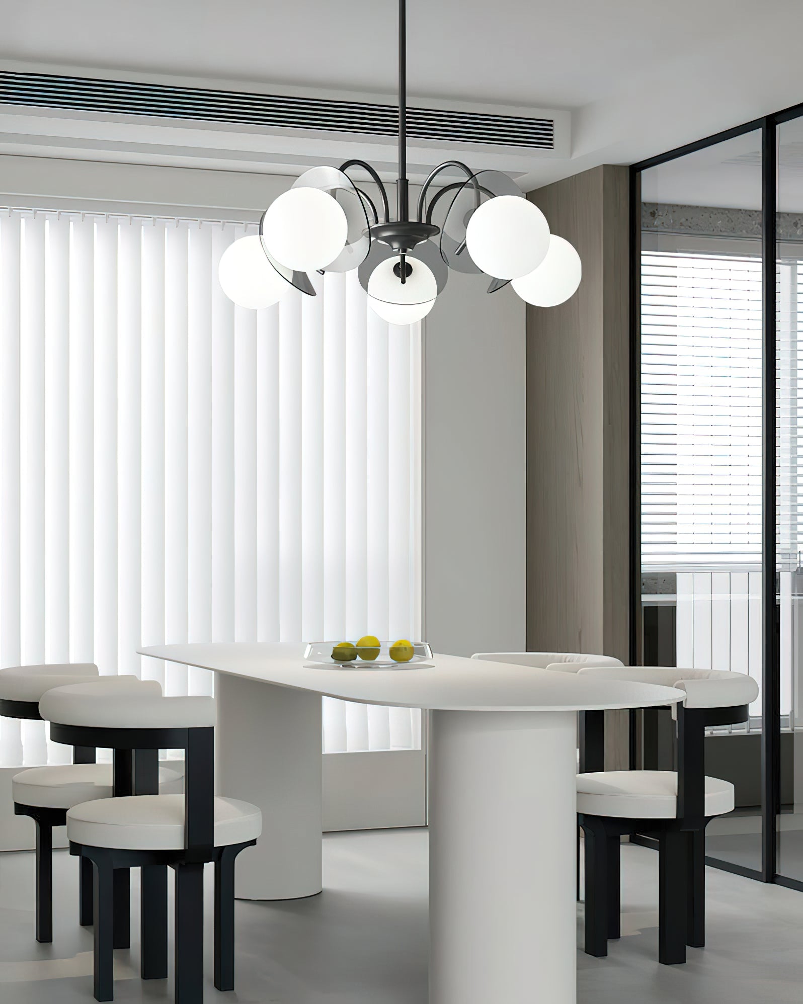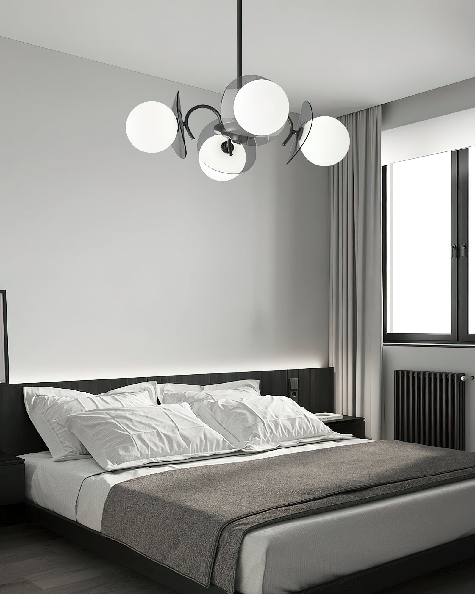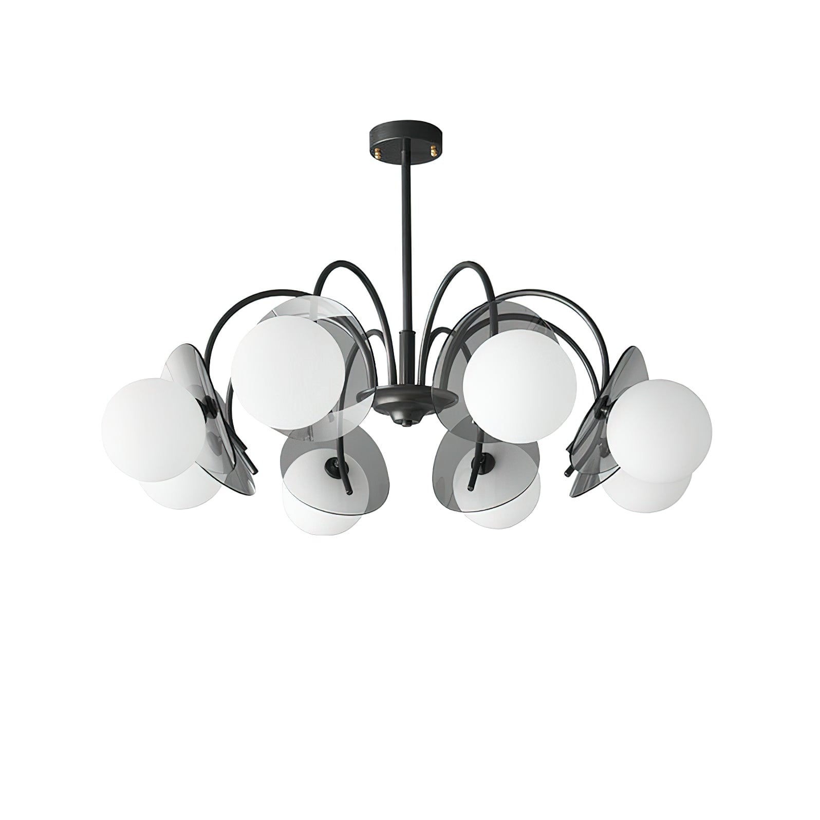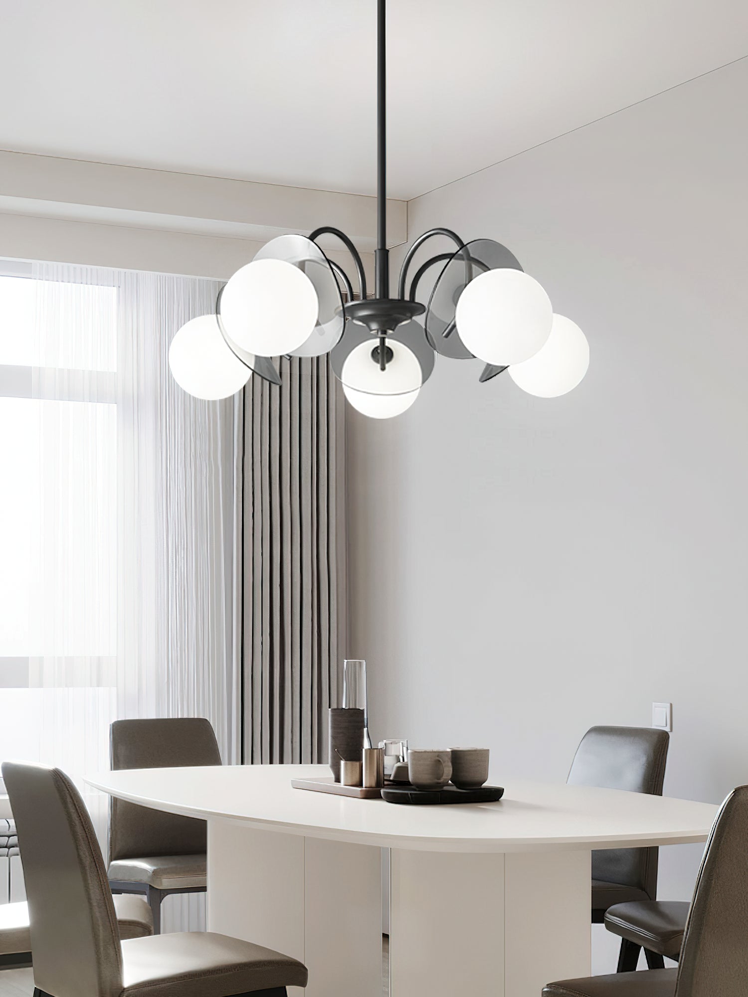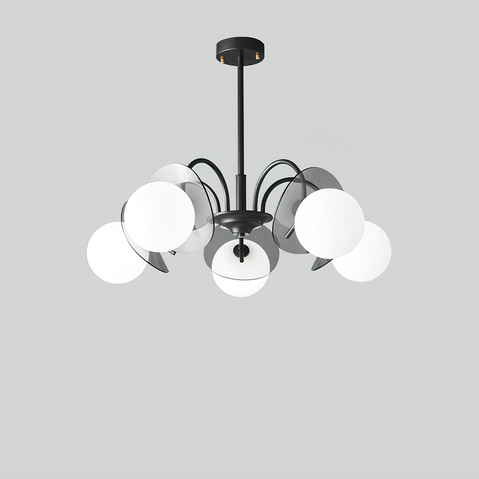 Unleash the allure of a solar eclipse in your home with our Molecular Spherical Glass Chandelier. A black frame and clear glass spheres create a captivating interplay of light and shadow, transforming any room into a modern and intriguing space. Perfect for living rooms, dining rooms, or entryways.