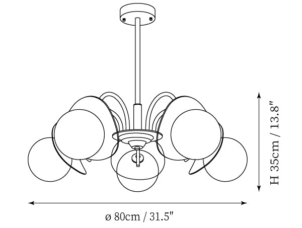 - 5 Heads Size: Dia 80cm x H 35cm / ∅ 31.5″ x H 13.8"