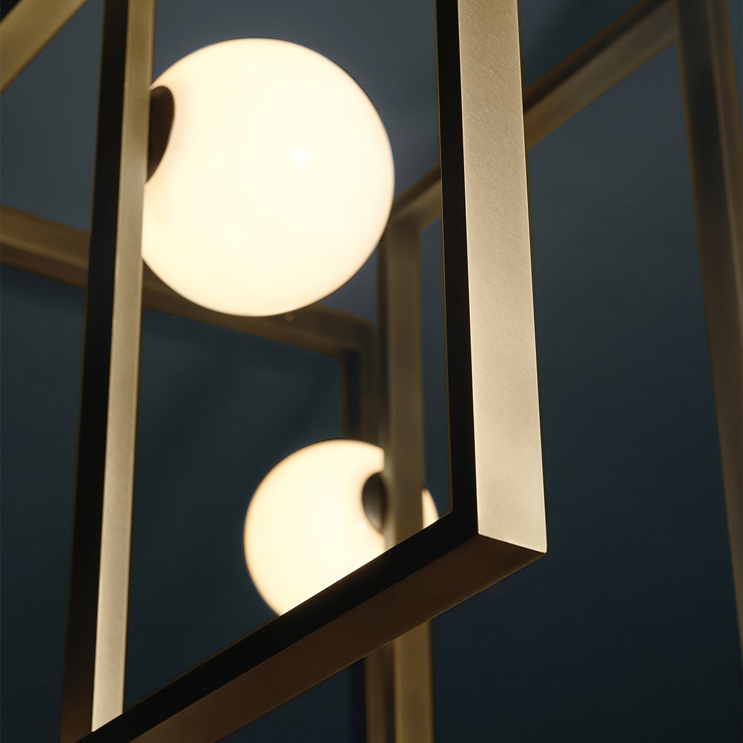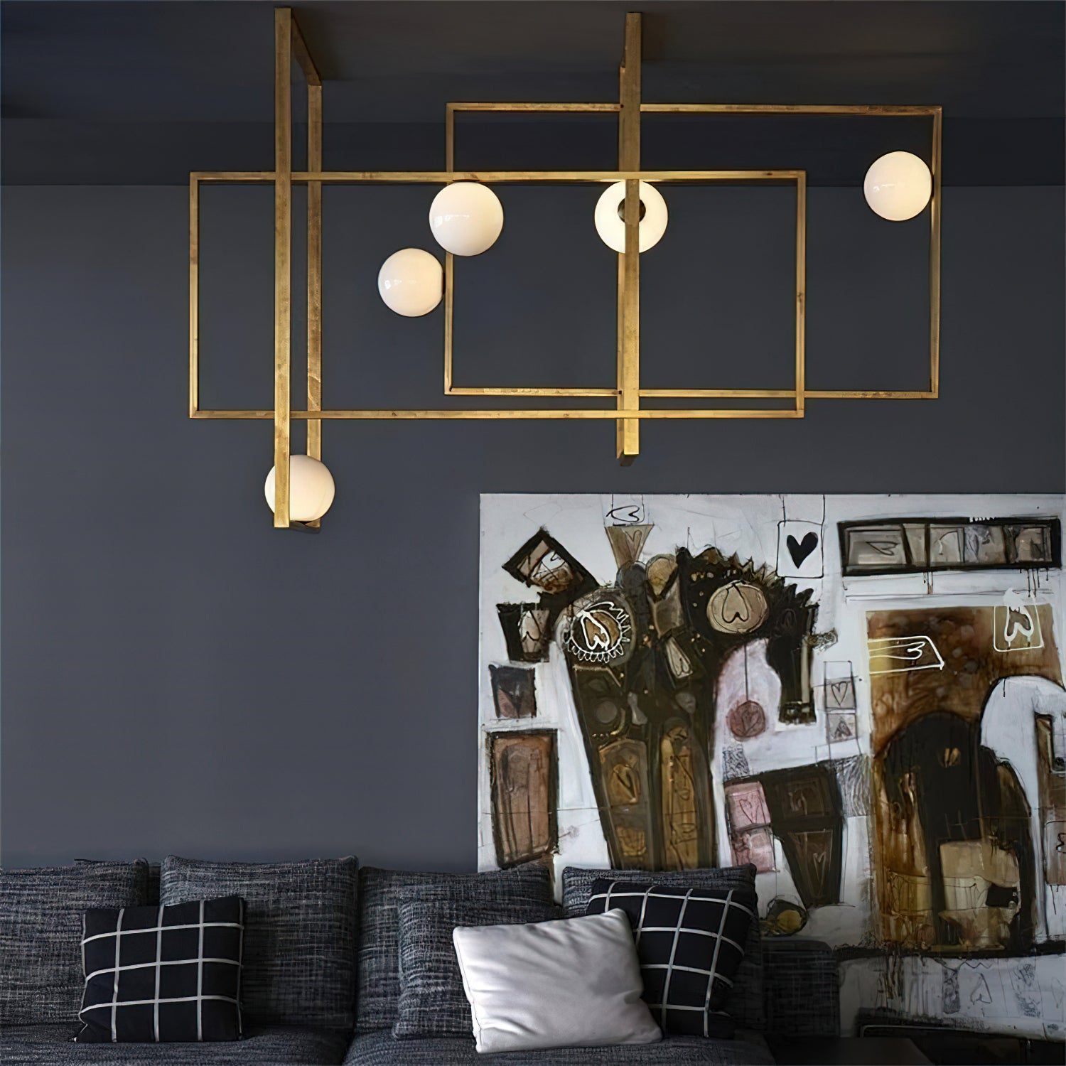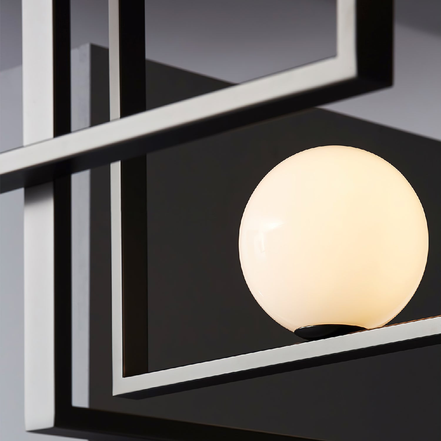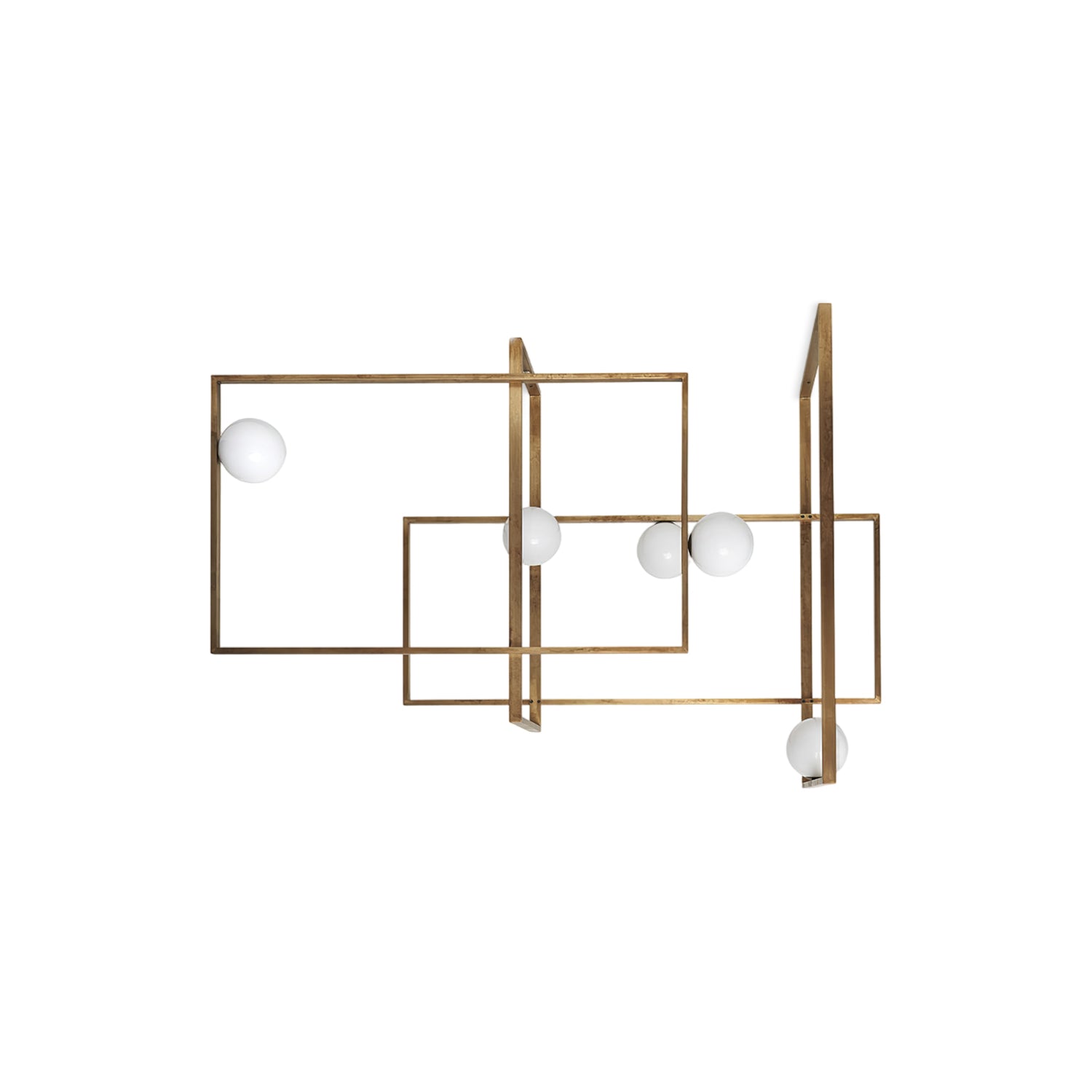 Elevate your living space with the Mondrian Rectangular Chandelier. Featuring five hand-blown white glass globes, this modern art chandelier will add a stylish touch to any room. Add a bold yet elegant element to your home decor. Add sparkle to your space with this eye-catching piece.