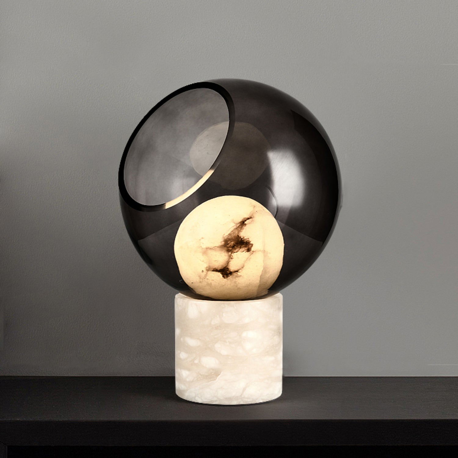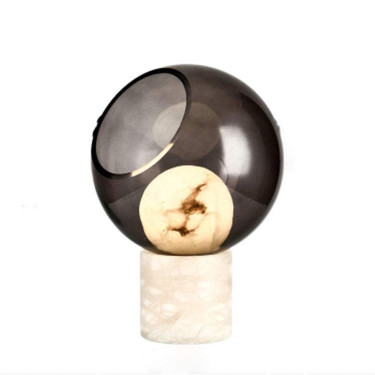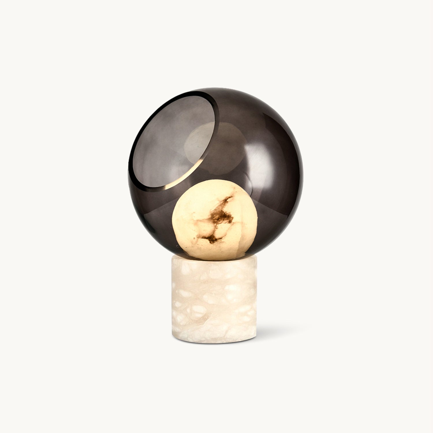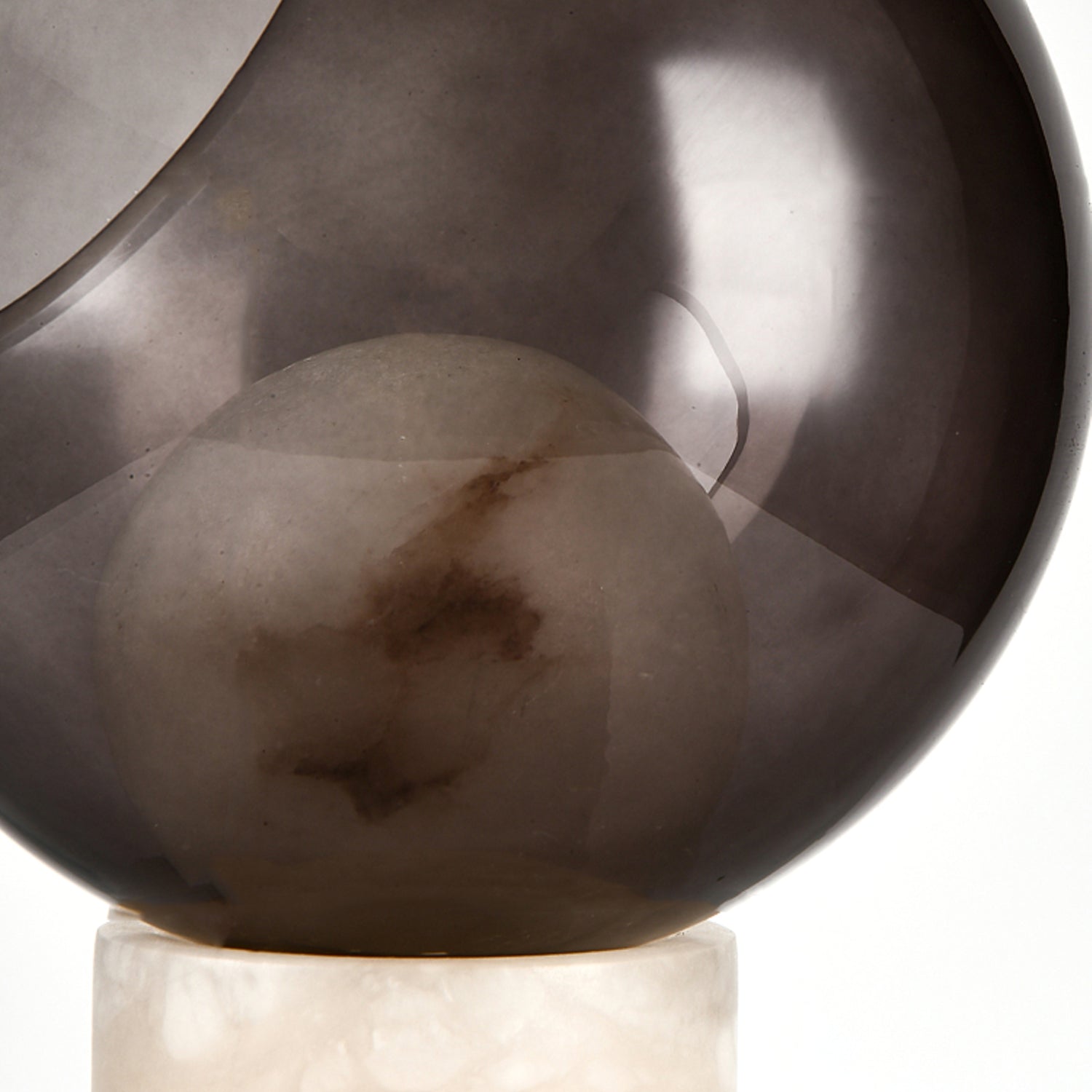 Elevate your space with the Mortentini Table Lamp from Mooijane. Featuring stunning Alabaster accents and stylish smoked glass, this modern lamp adds a one-of-a-kind aesthetic to any room. Let the exquisite craftsmanship captivate and impress with its unique beauty.