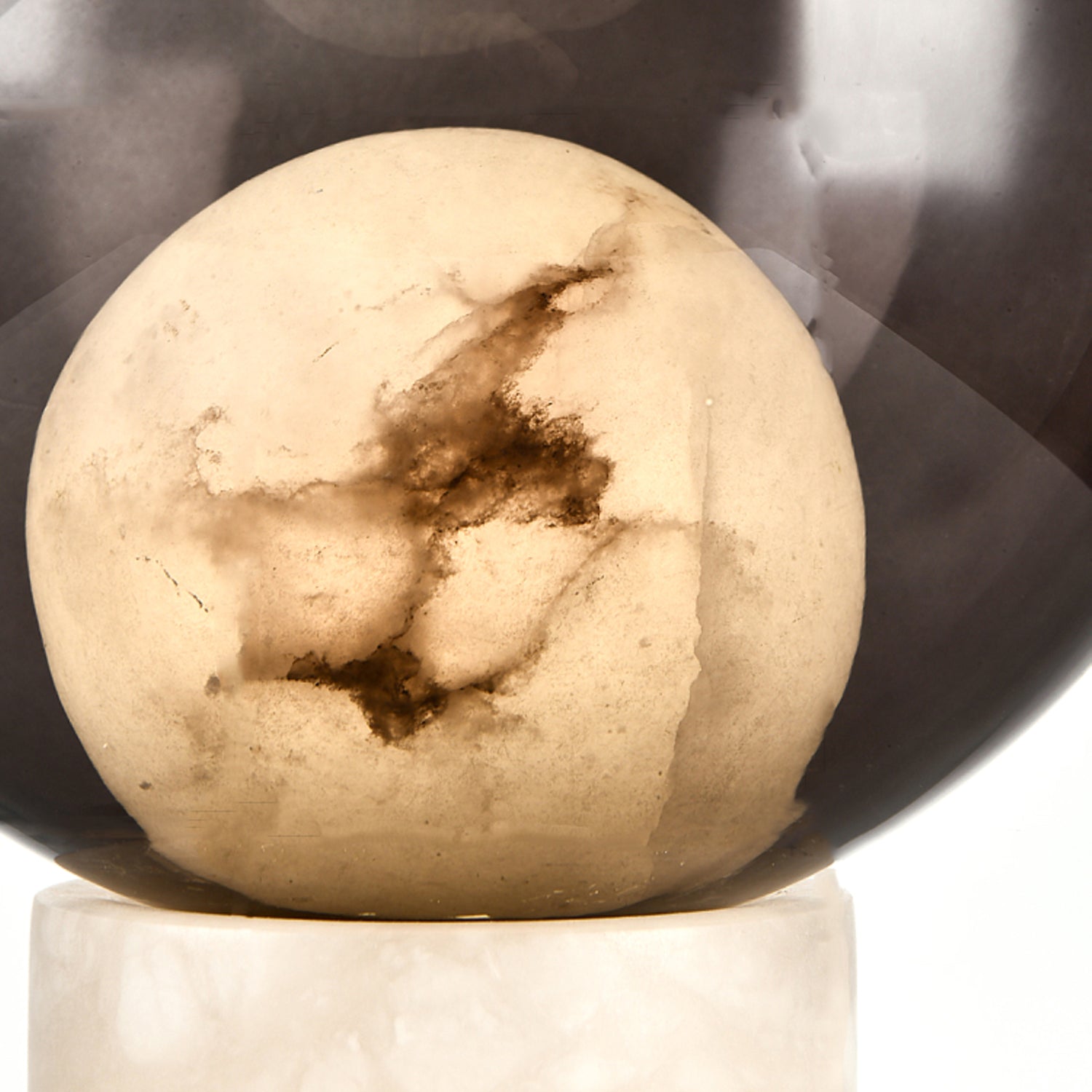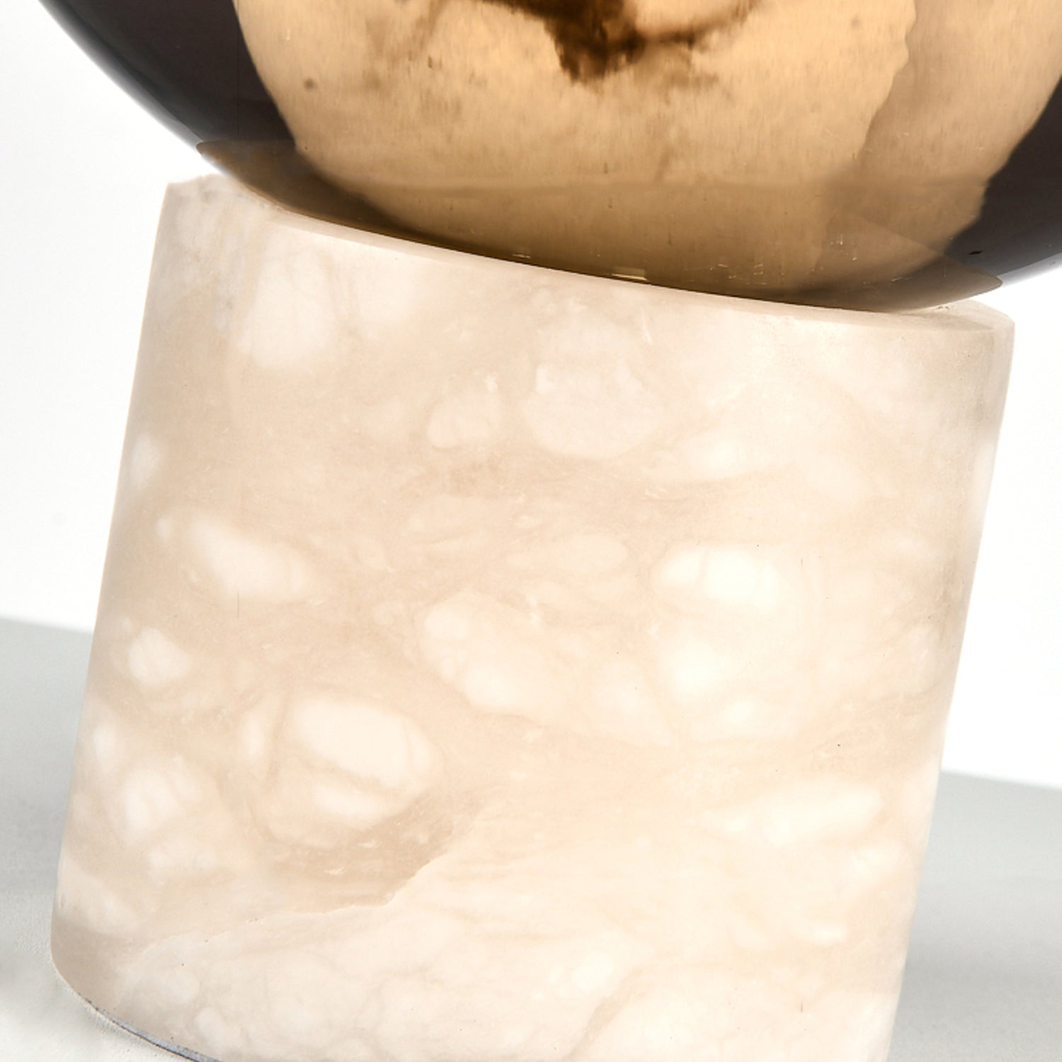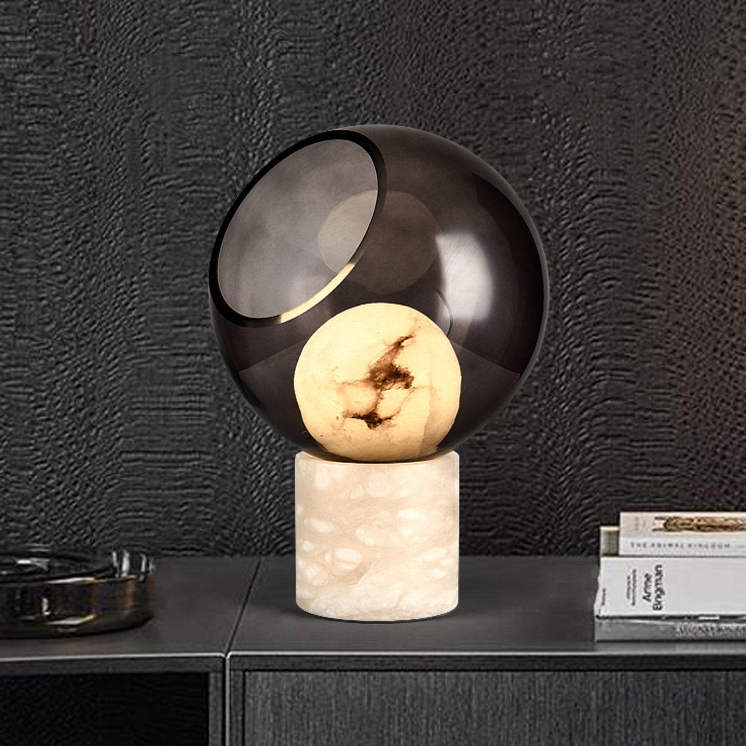 Elevate your space with the Mortentini Table Lamp from Mooijane. Featuring stunning Alabaster accents and stylish smoked glass, this modern lamp adds a one-of-a-kind aesthetic to any room. Let the exquisite craftsmanship captivate and impress with its unique beauty.