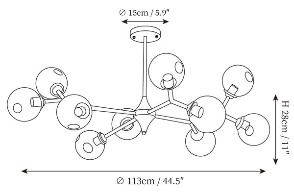 - 10Heads Size: Dia 113cm x H 28cm / ∅ 44.5″ x H 11″