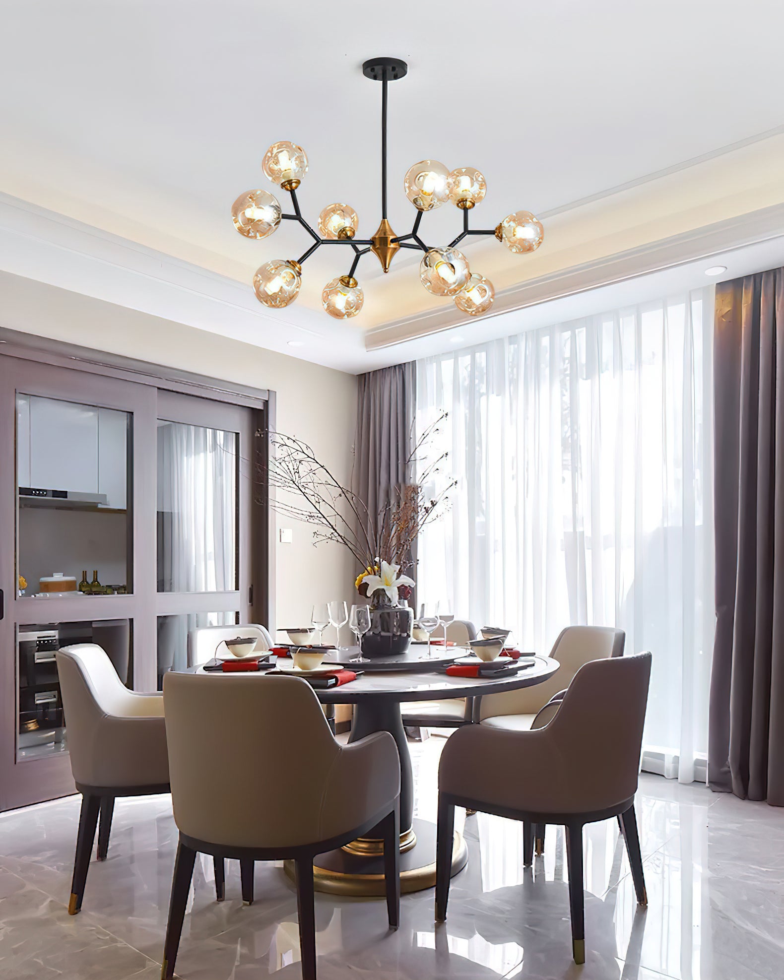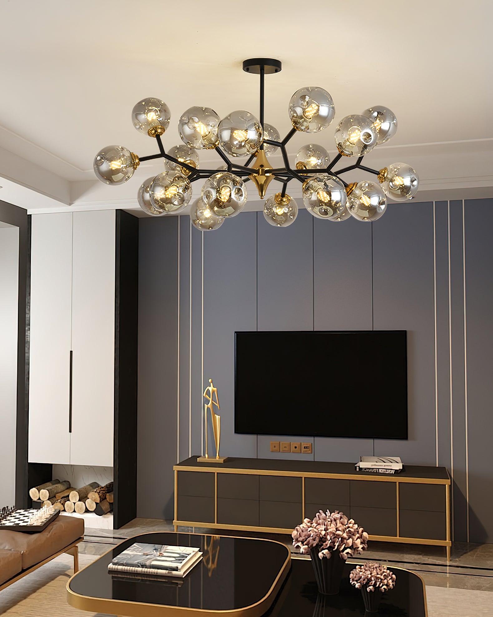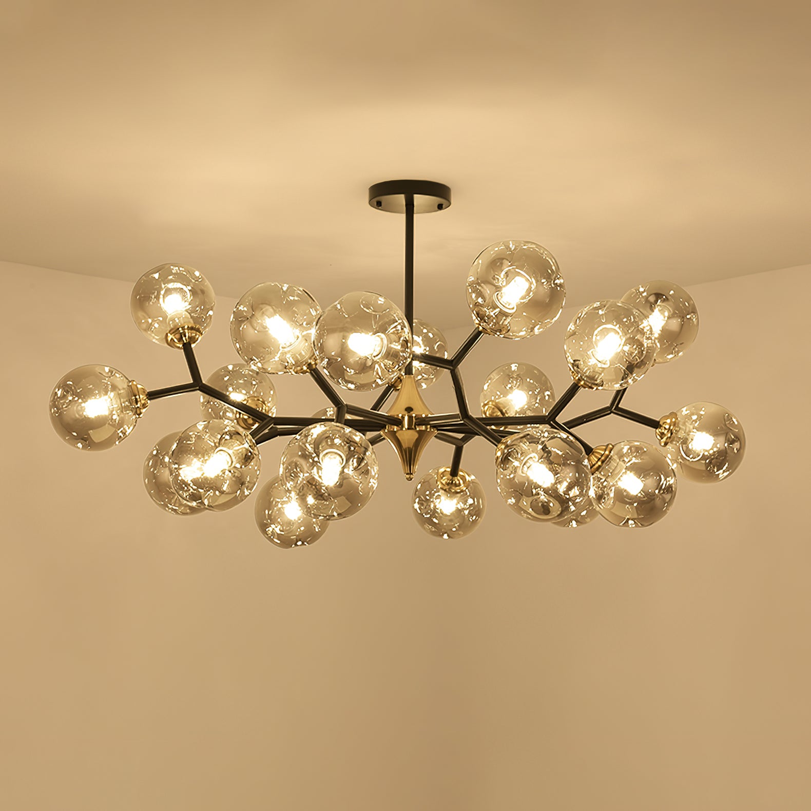The Multi Eye Magic Ball Chandelier offers a unique and sophisticated way to bring light and beauty into any room. The swiveling stand allows you to adjust the lamp angle at will, and its high-temperature fired glass ensures bright and durable illumination. The smoke grey glass lampshade offers even diffusion of light, making it perfect for any enviroment. Illuminate your space in style with the Multi Eye Magic Ball Chandelier.