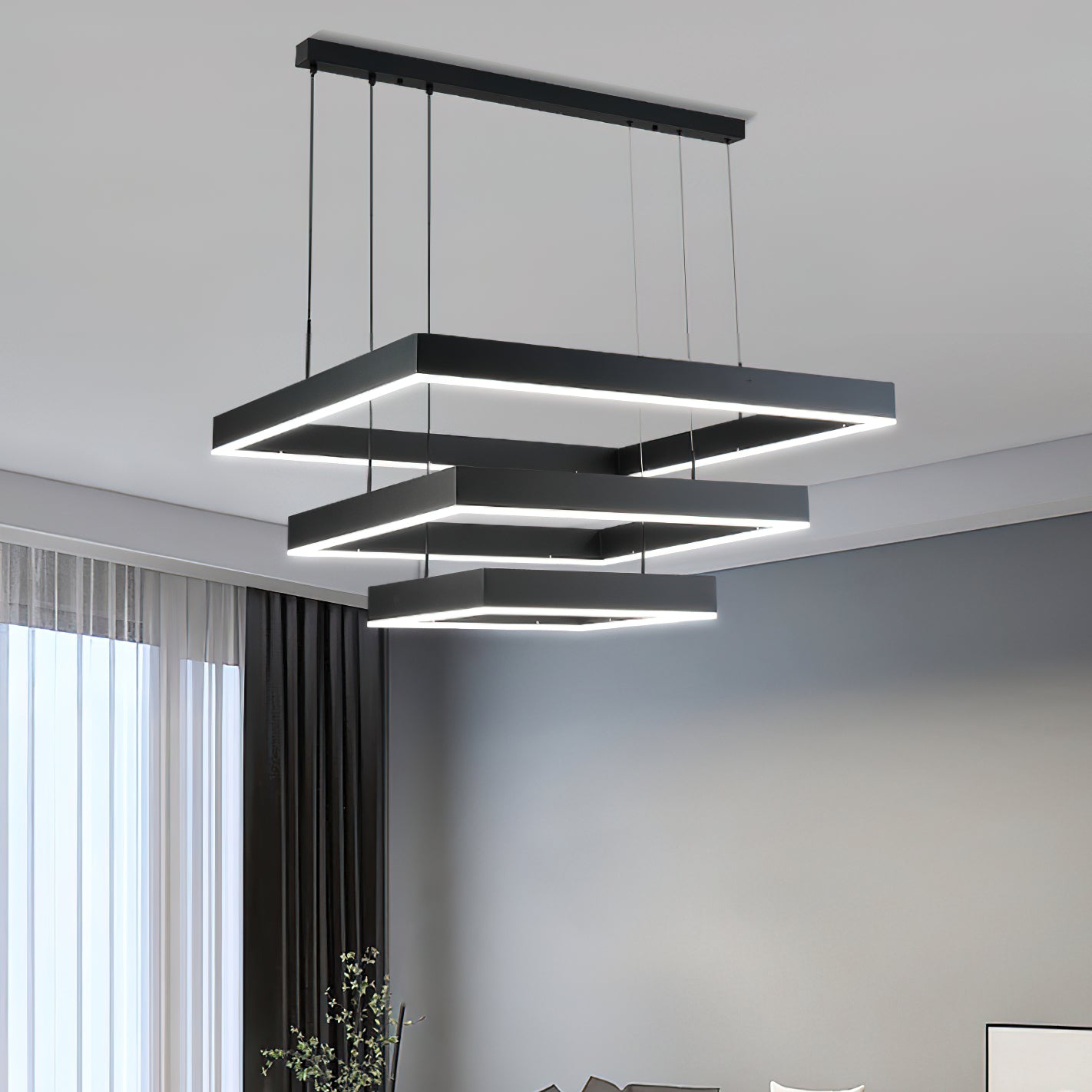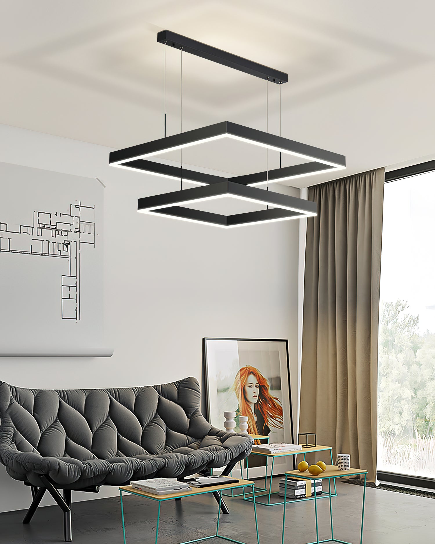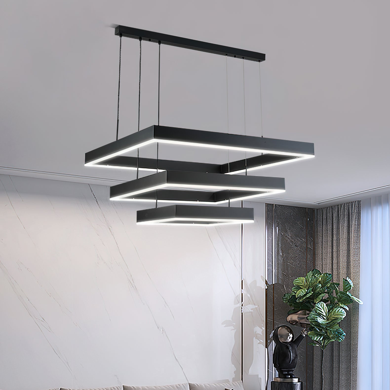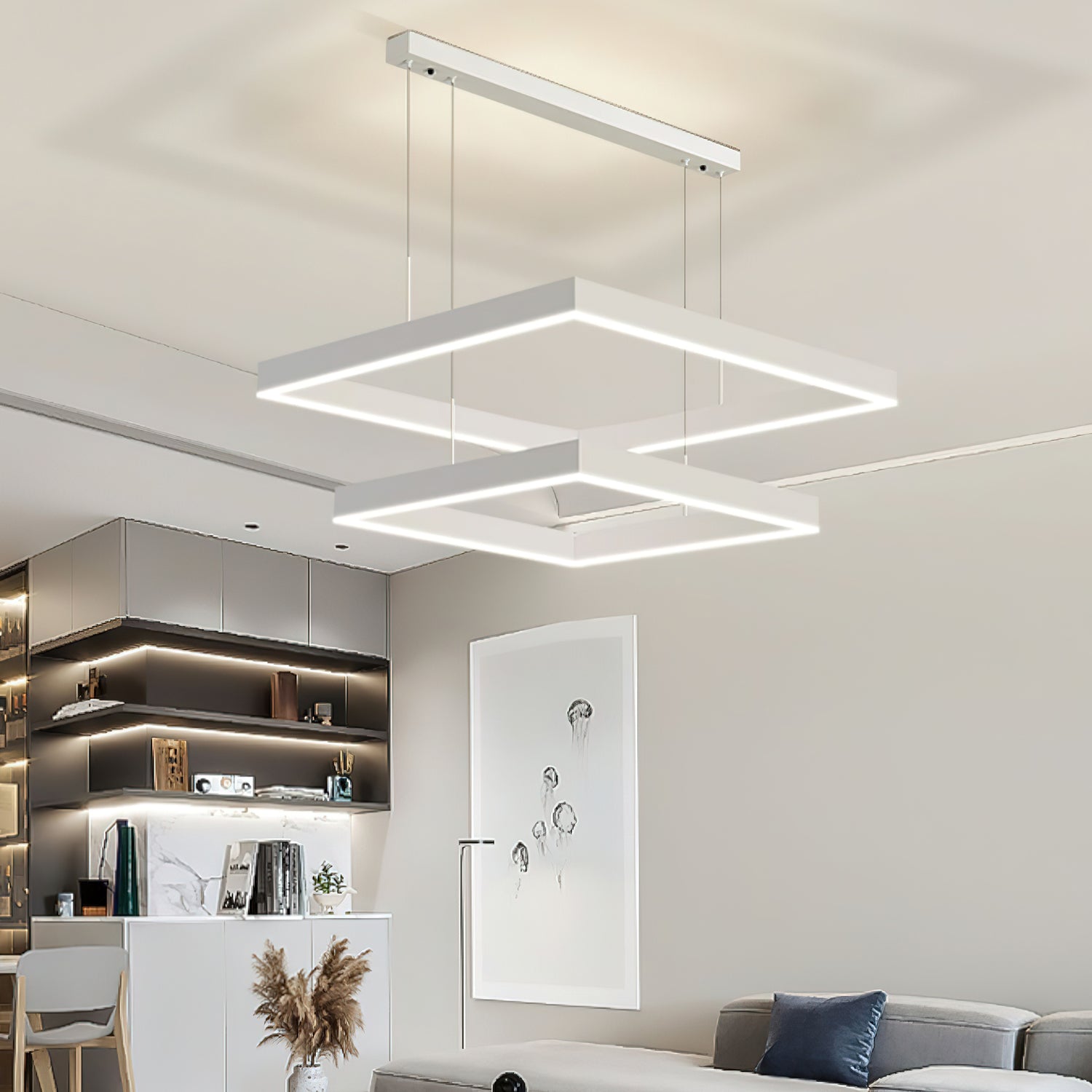 The Multi-tier Square Chandelier has built-in LED light sources to create a comfortable lighting environment. Its aluminum chassis has a durable matte texture, creating a modern and warm atmosphere. This chandelier has a simple and versatile design that complements any decoration. It is very suitable for adding a touch of fashion to the home and living room, dining room, bedroom, and office.
