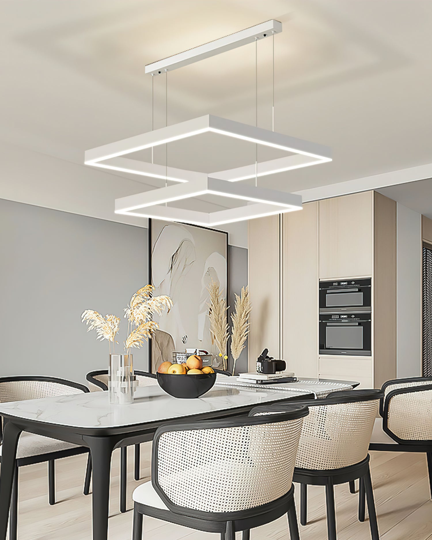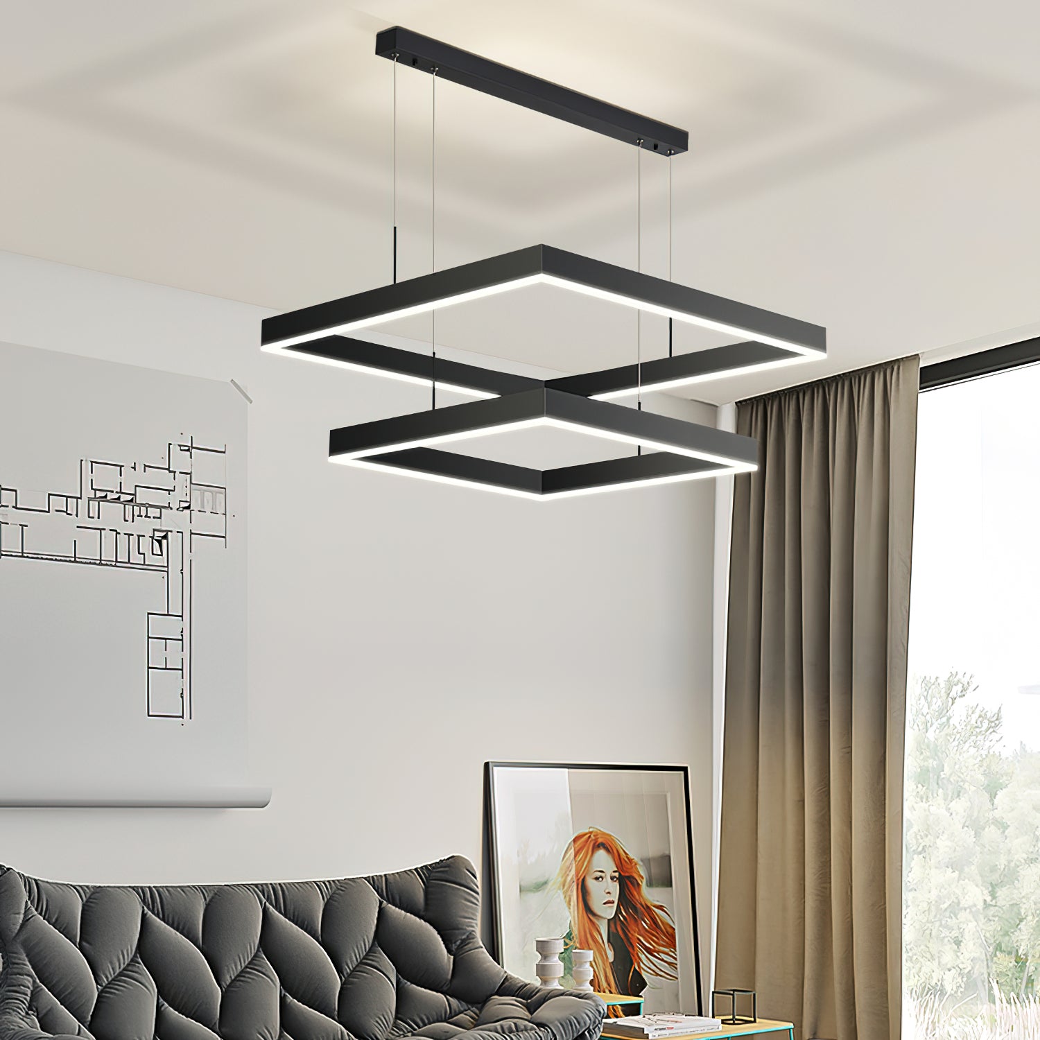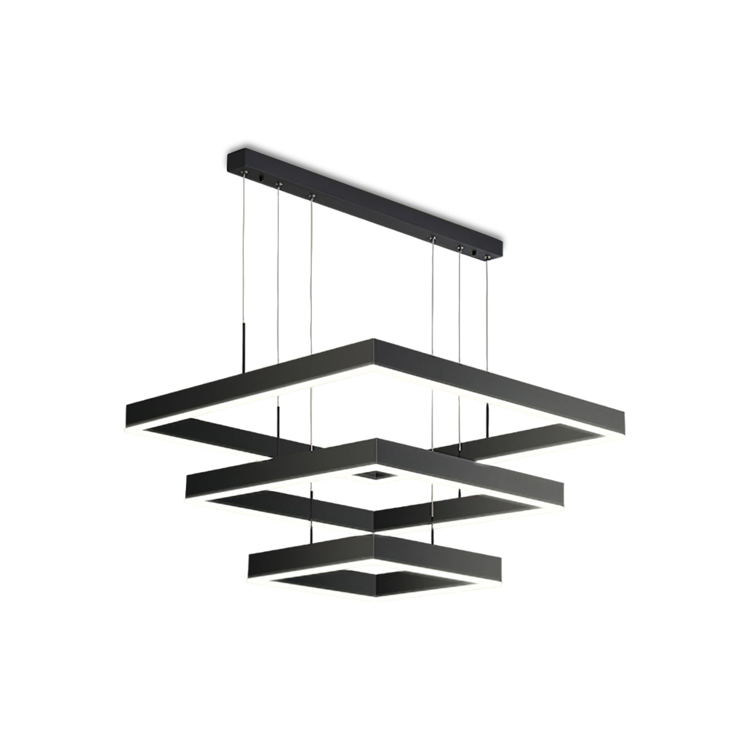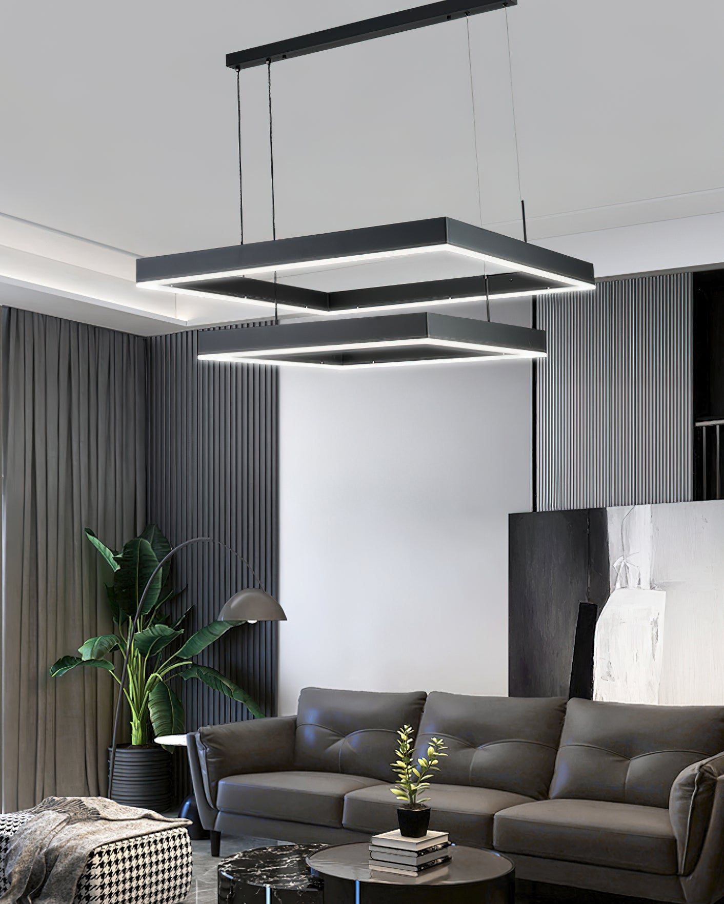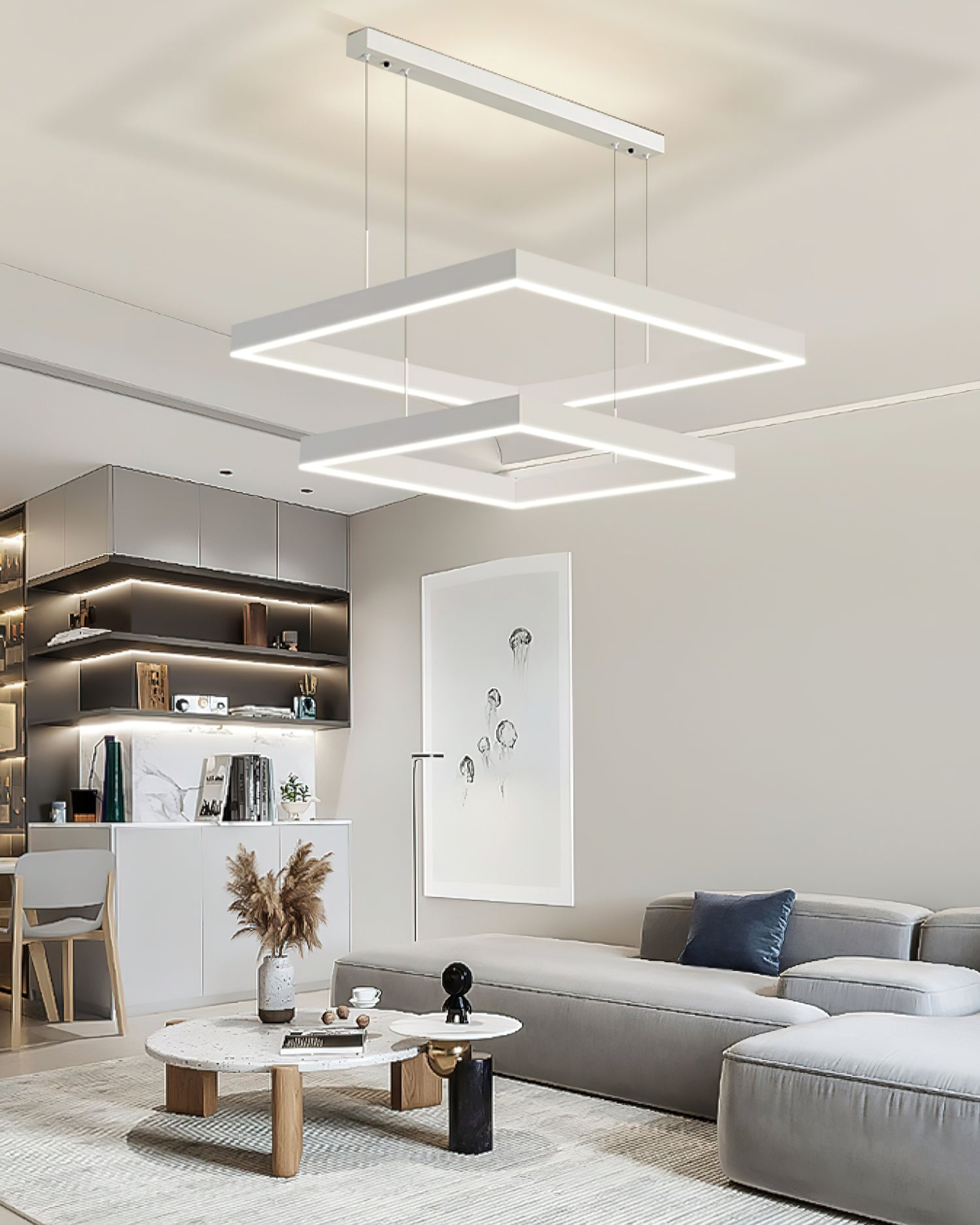 The Multi-tier Square Chandelier has built-in LED light sources to create a comfortable lighting environment. Its aluminum chassis has a durable matte texture, creating a modern and warm atmosphere. This chandelier has a simple and versatile design that complements any decoration. It is very suitable for adding a touch of fashion to the home and living room, dining room, bedroom, and office.