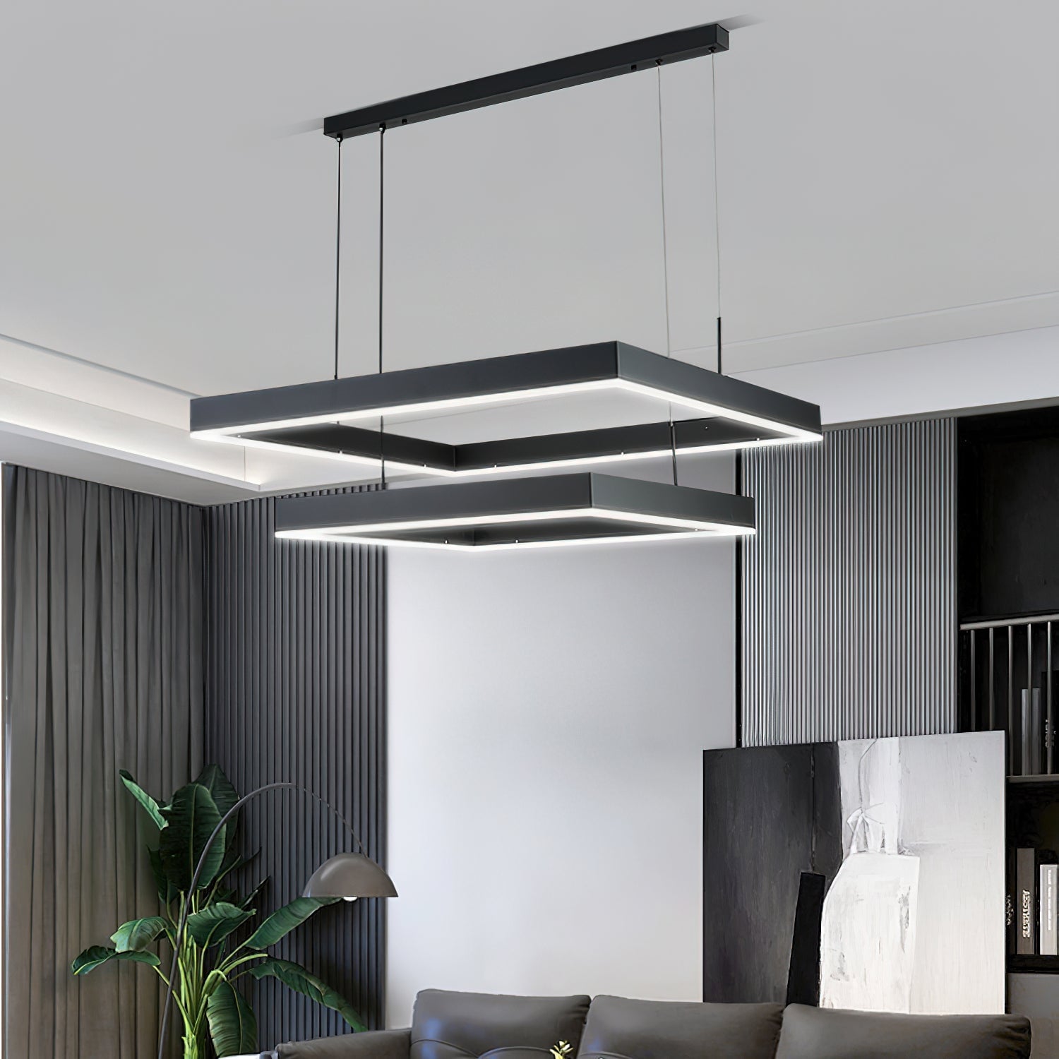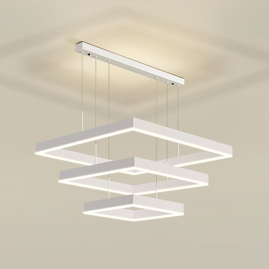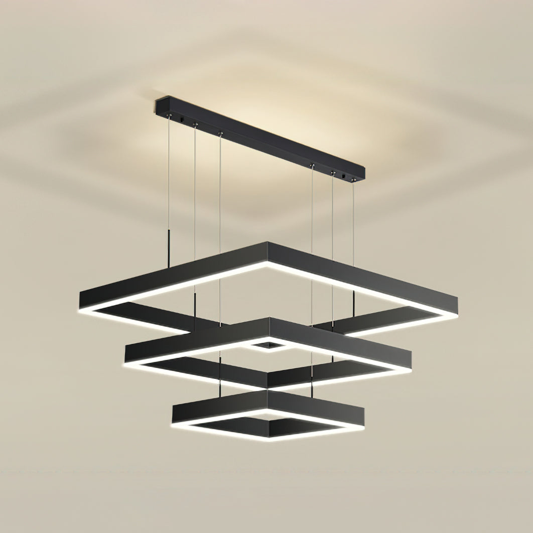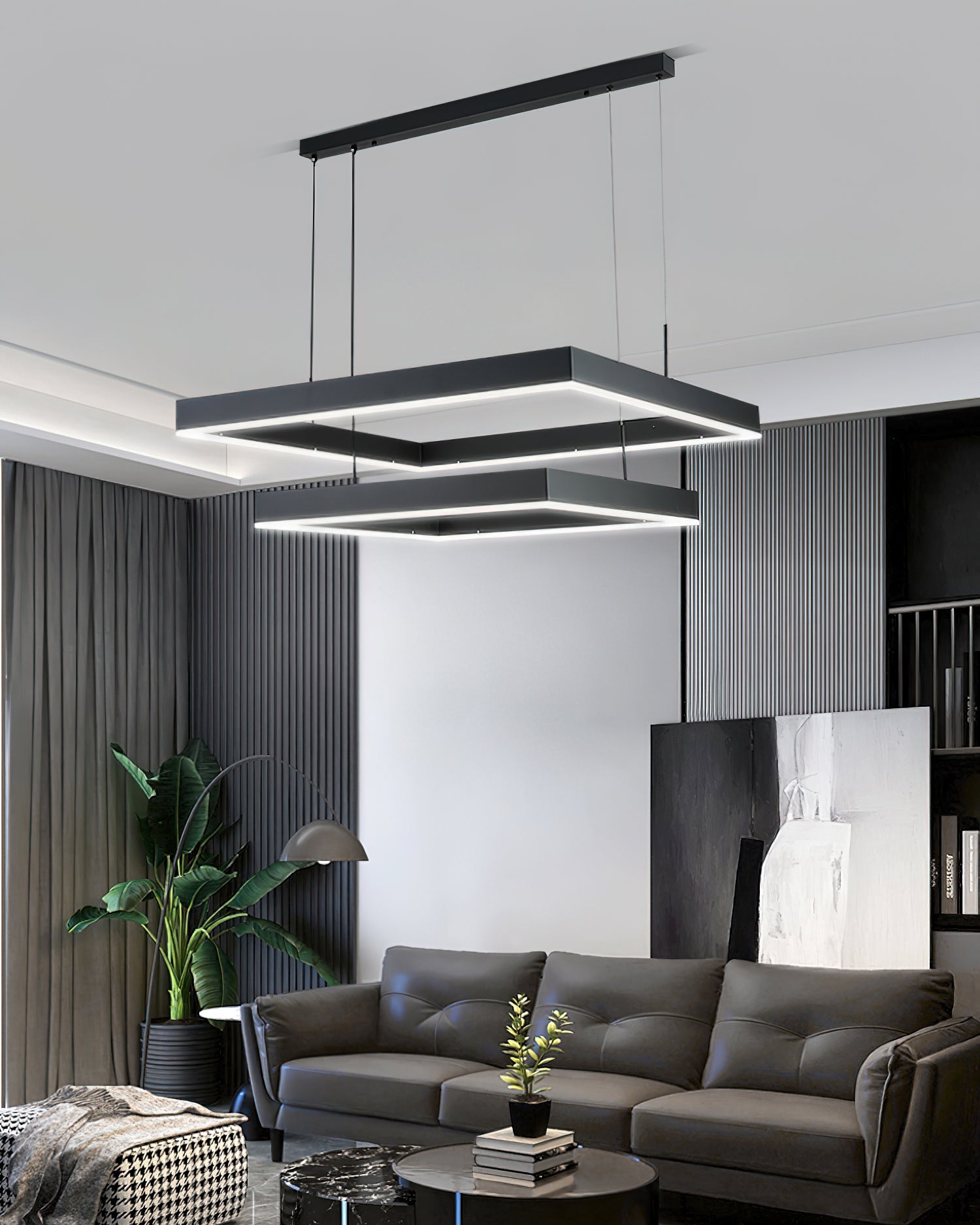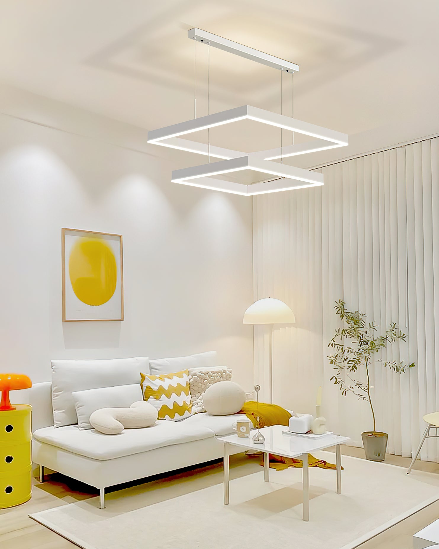 The Multi-tier Square Chandelier has built-in LED light sources to create a comfortable lighting environment. Its aluminum chassis has a durable matte texture, creating a modern and warm atmosphere. This chandelier has a simple and versatile design that complements any decoration. It is very suitable for adding a touch of fashion to the home and living room, dining room, bedroom, and office.