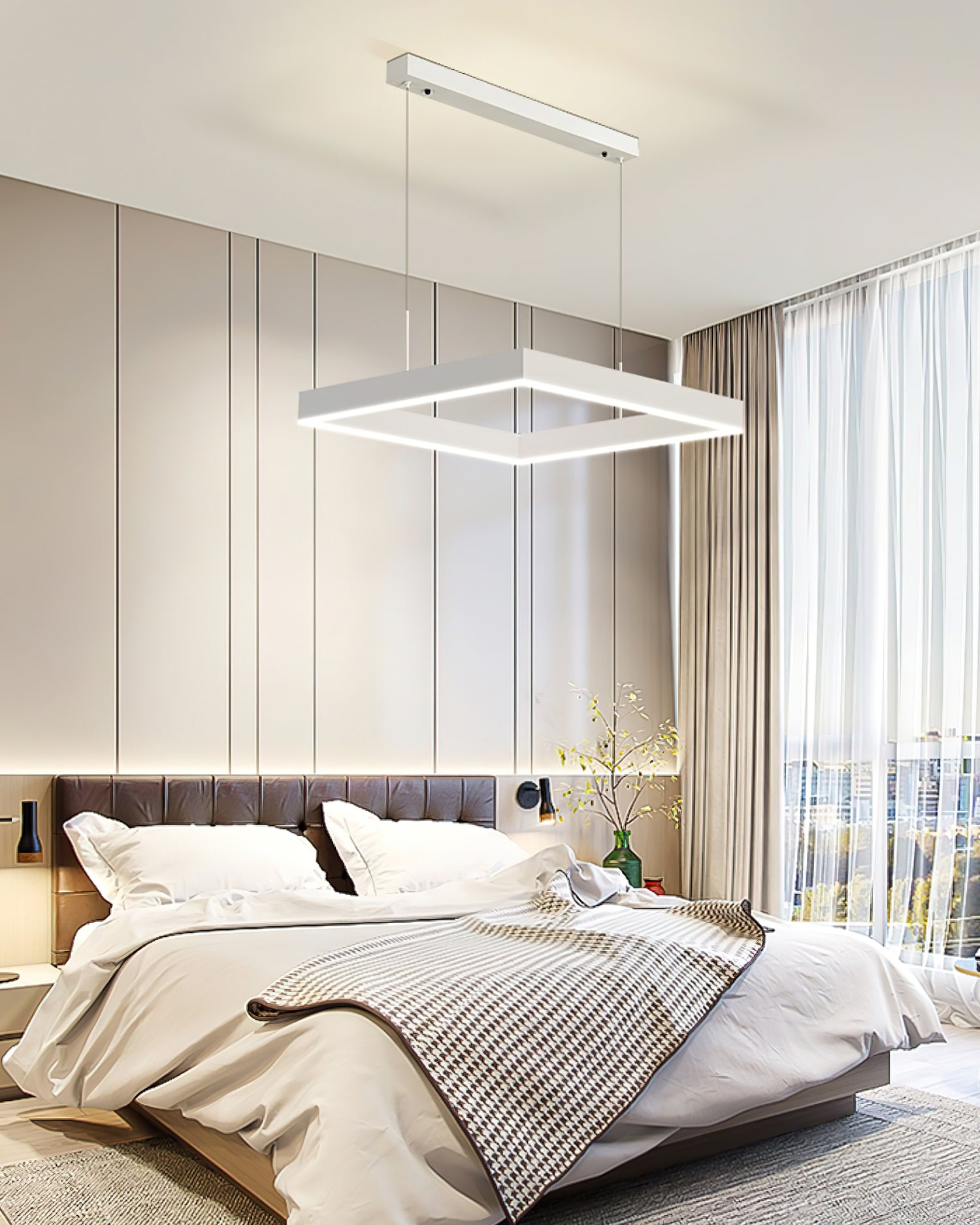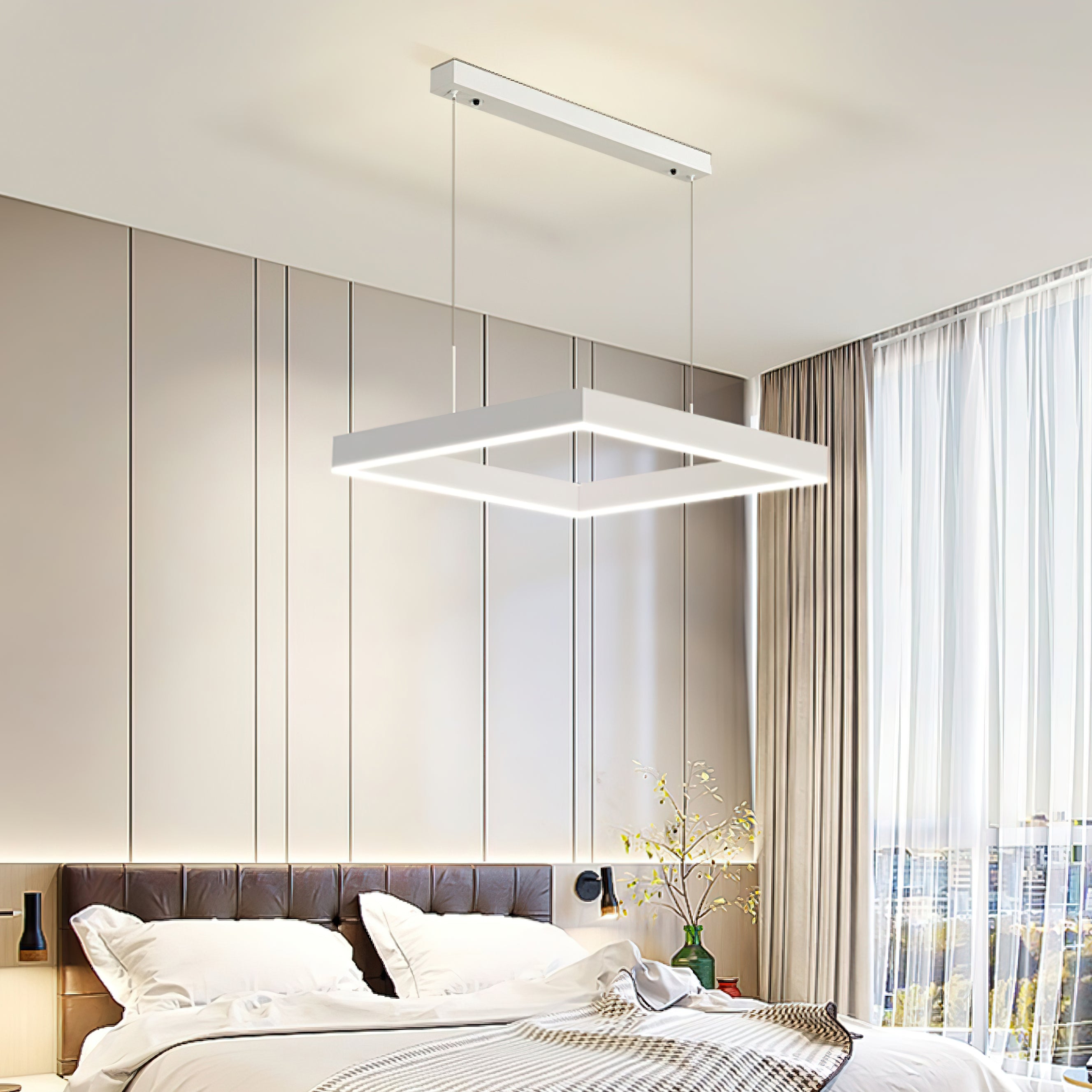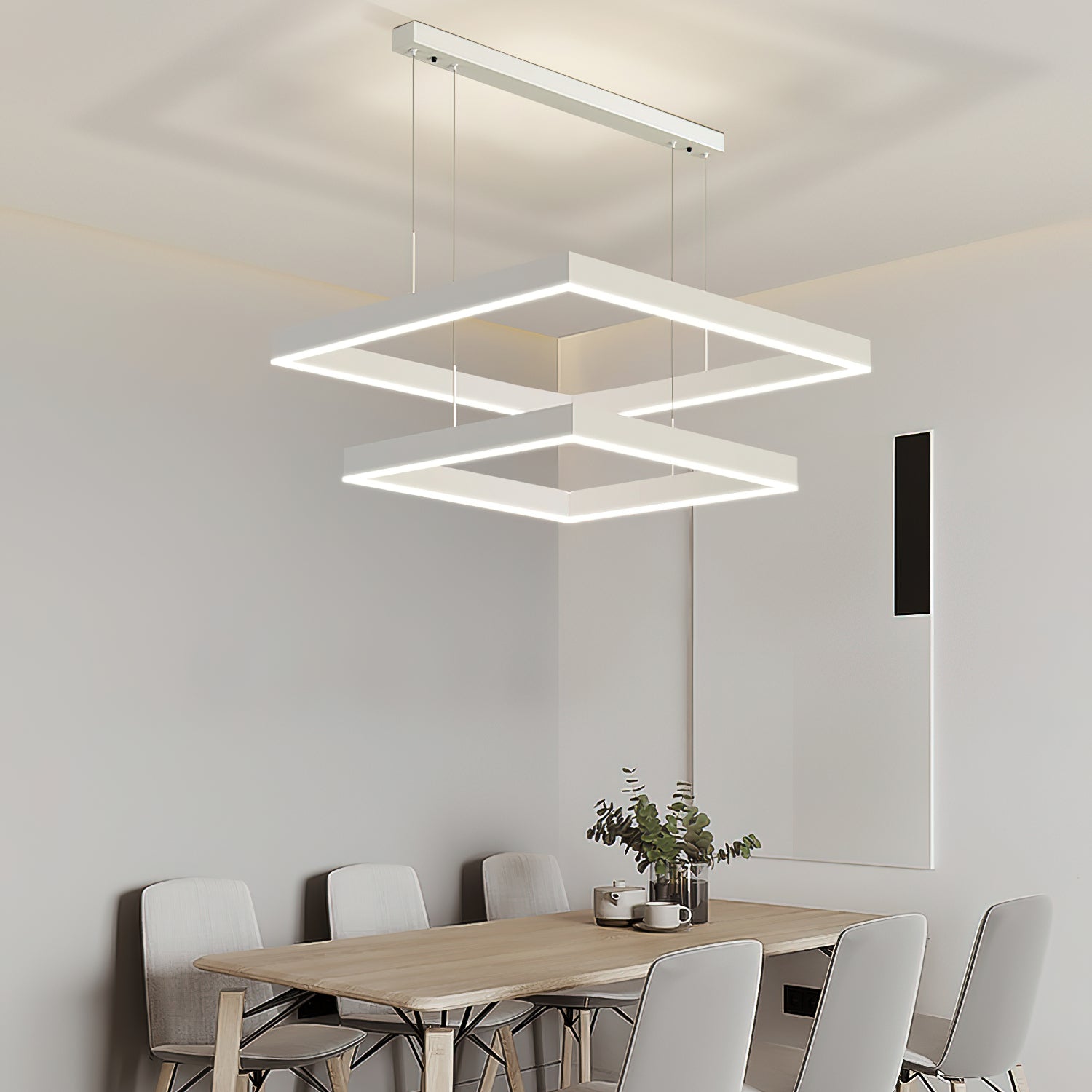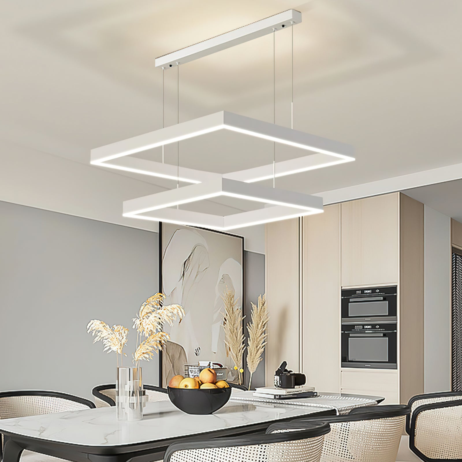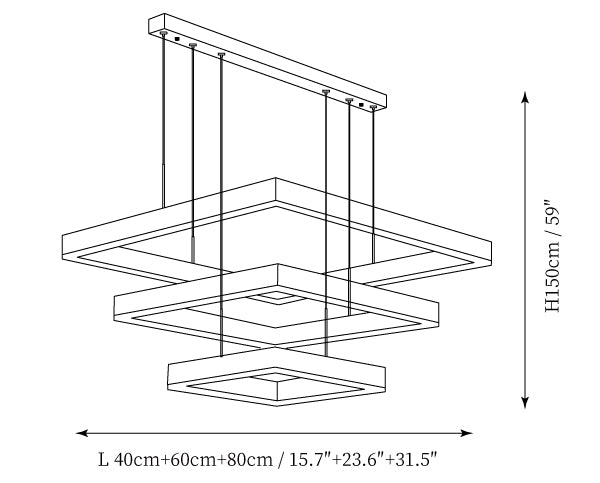 The Multi-tier Square Chandelier has built-in LED light sources to create a comfortable lighting environment. Its aluminum chassis has a durable matte texture, creating a modern and warm atmosphere. This chandelier has a simple and versatile design that complements any decoration. It is very suitable for adding a touch of fashion to the home and living room, dining room, bedroom, and office.