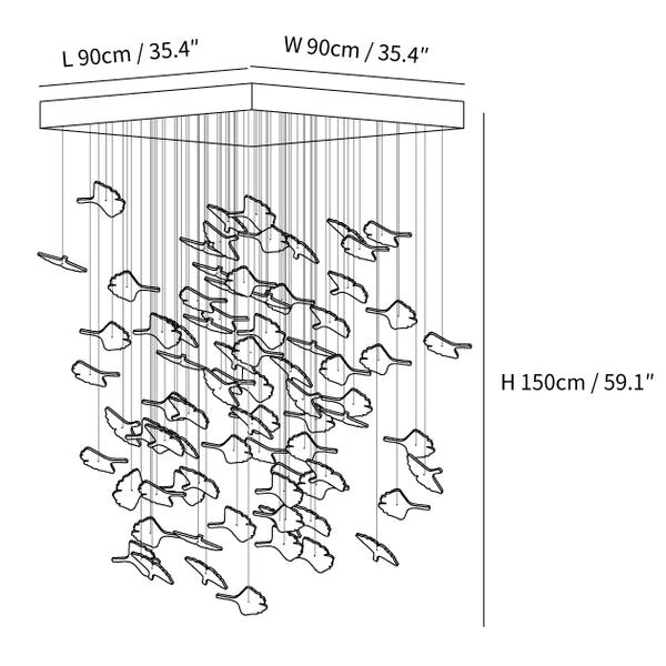 - L 90cm x W 90cm x H 150cm / L 35.4″ x W 35.4″ x H 59.1″ (Maple leaf quantity: 79 pieces)