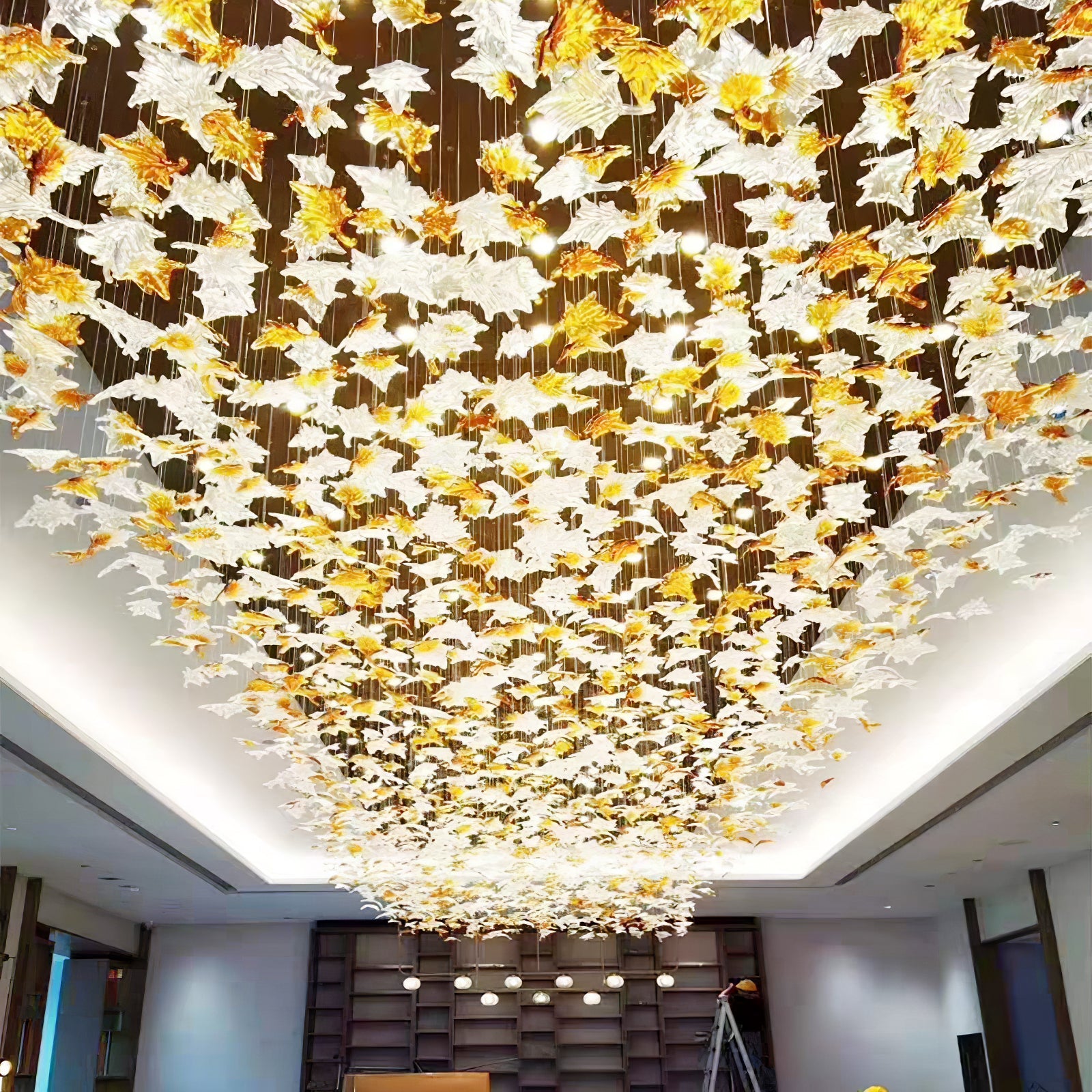 This stunning Multicolor Crystal Maple Leaf Chandelier is sure to be the centerpiece of any room. It features a unique crystal maple leaf design with multicolor crystal glass, permitting a custom order. Add a touch of elegance to your home with this beautiful and intricate chandelier.