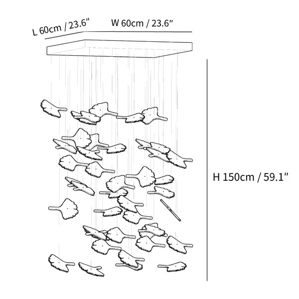 - L 60cm x W 60cm x H 150cm / L 23.6″ x W 23.6″ x H 59.1″ (Maple leaf quantity: 42 pieces)