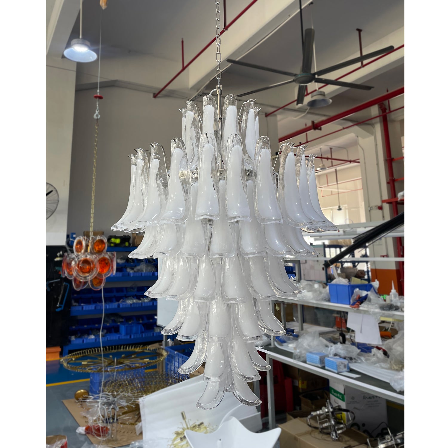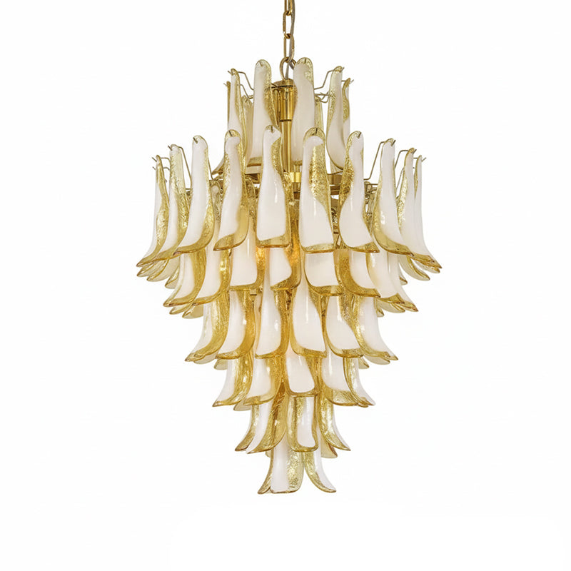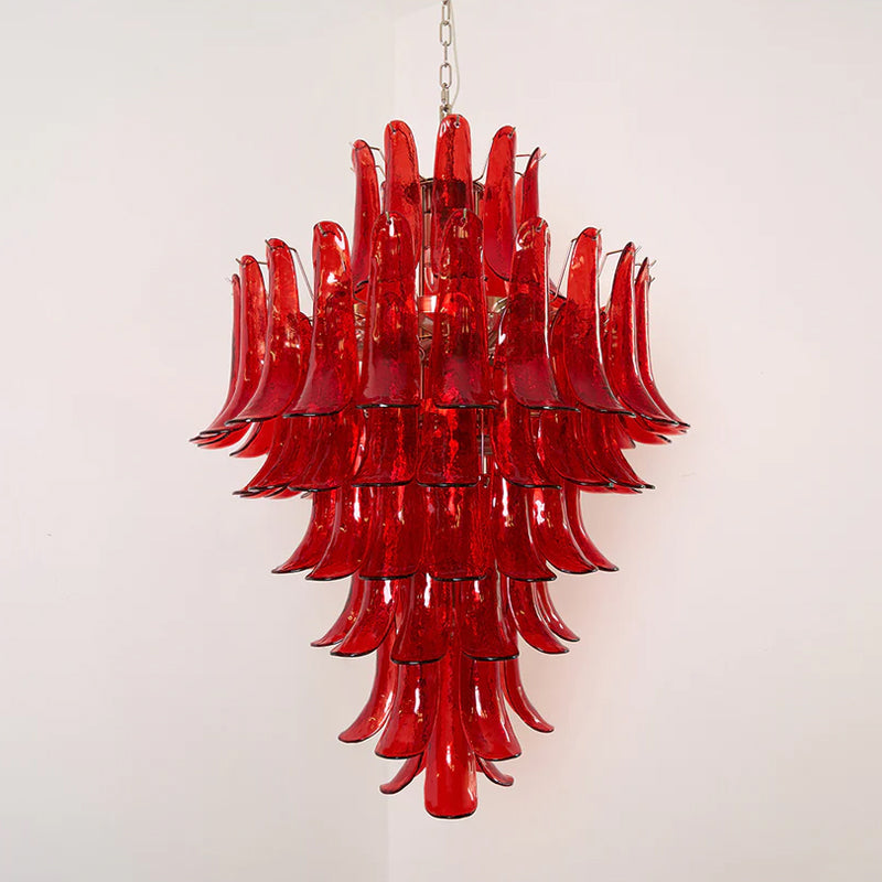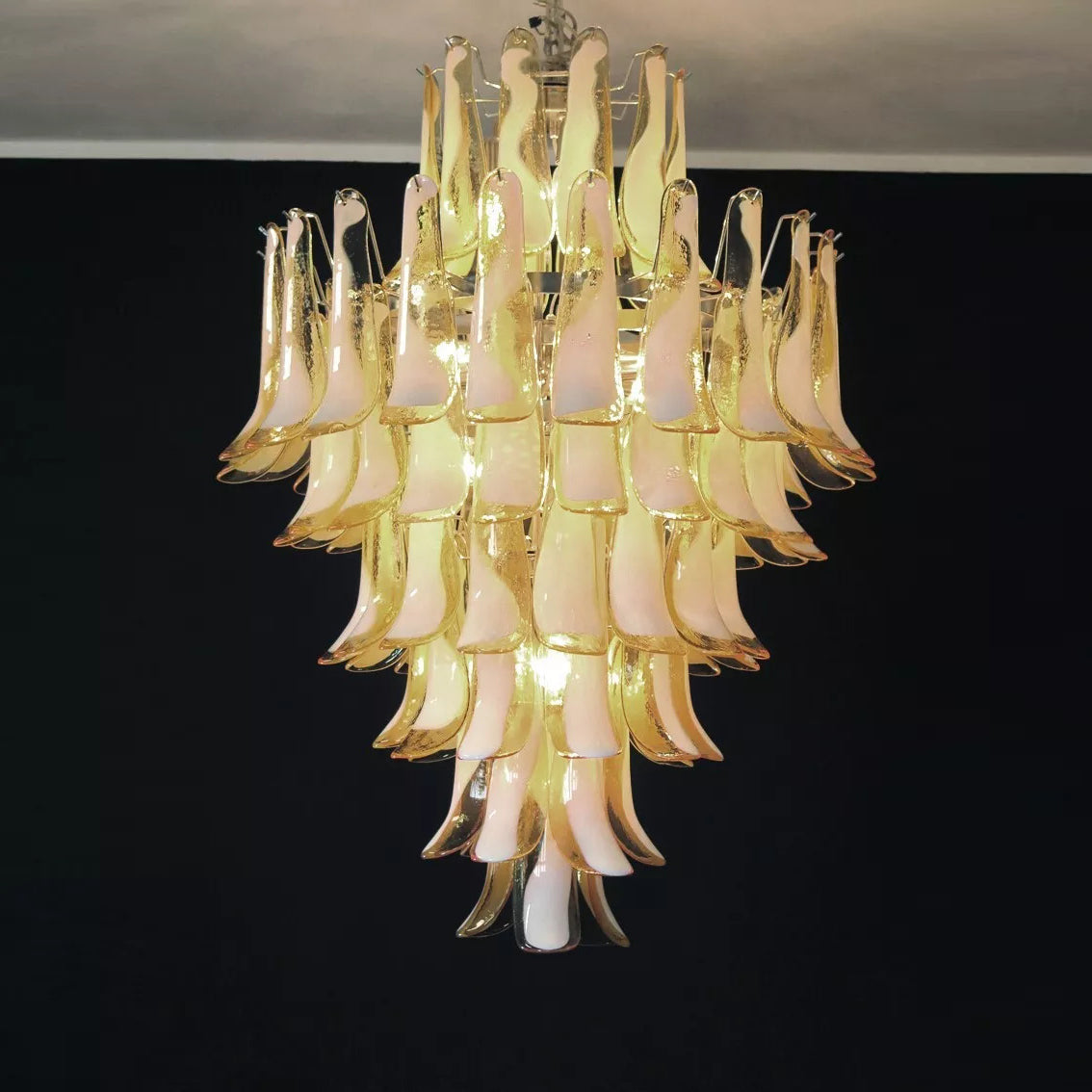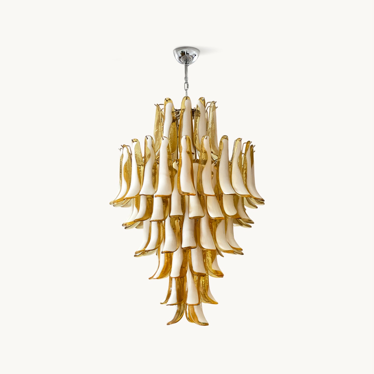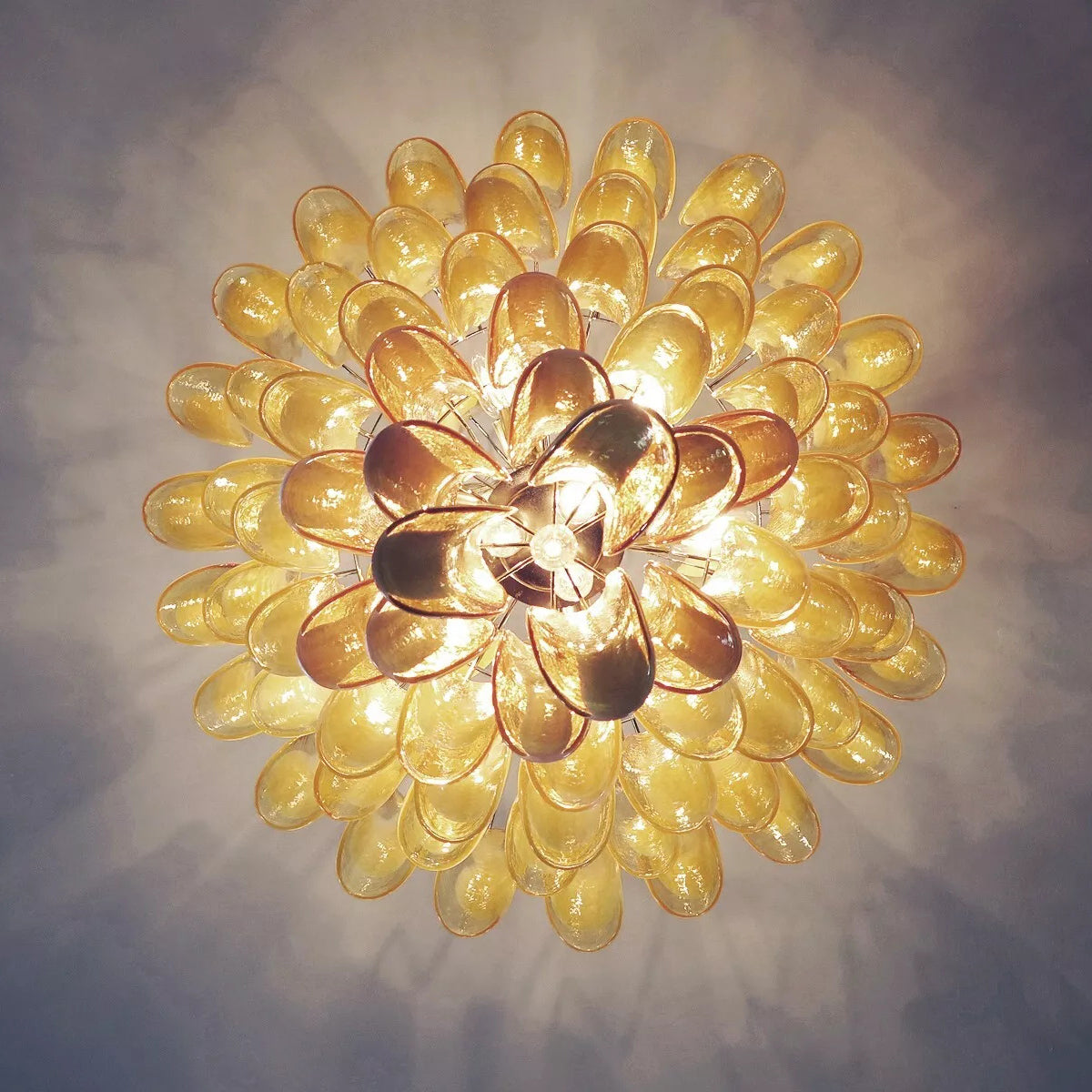 The Murano Petal Chandelier from Mooijane is the perfect addition to any room. Its exquisite design of cascading petals adds a touch of sophistication and elegance to your space. Crafted with high-quality materials, this chandelier is not only beautiful but also durable for lasting use. Elevate your space with this timeless piece.