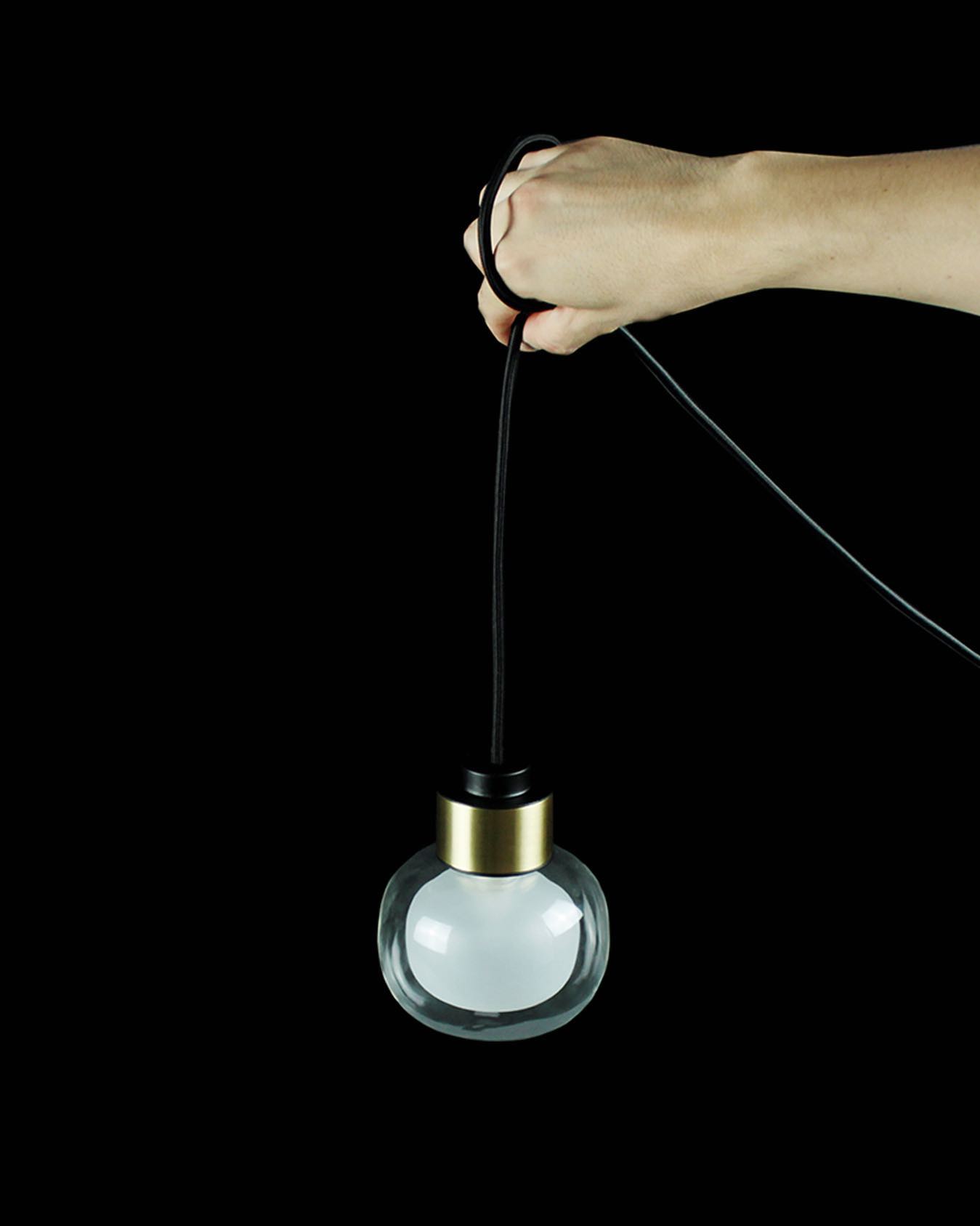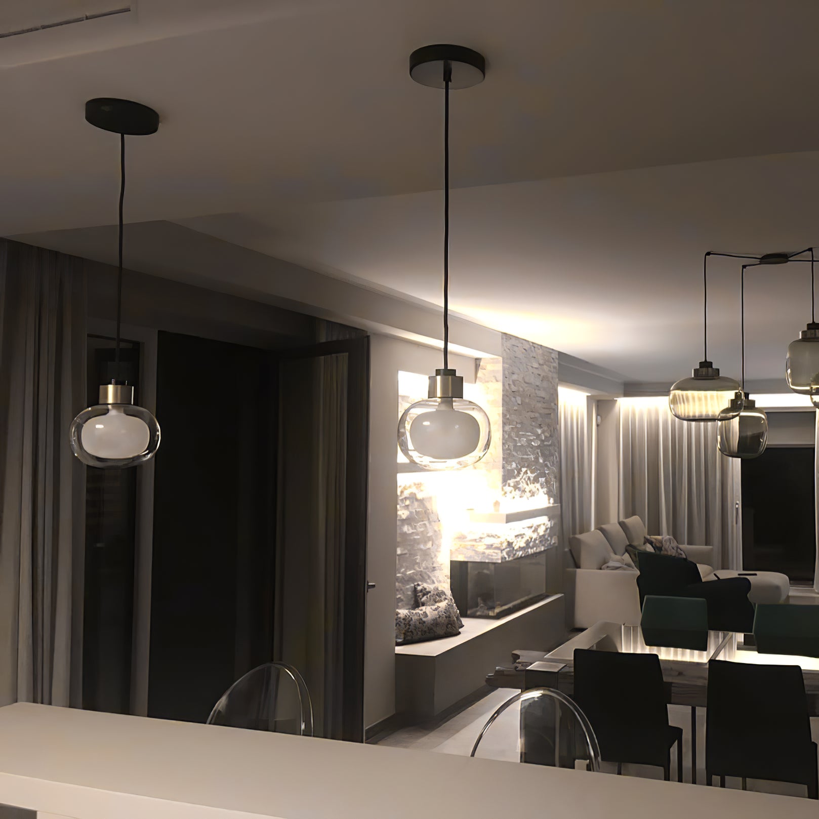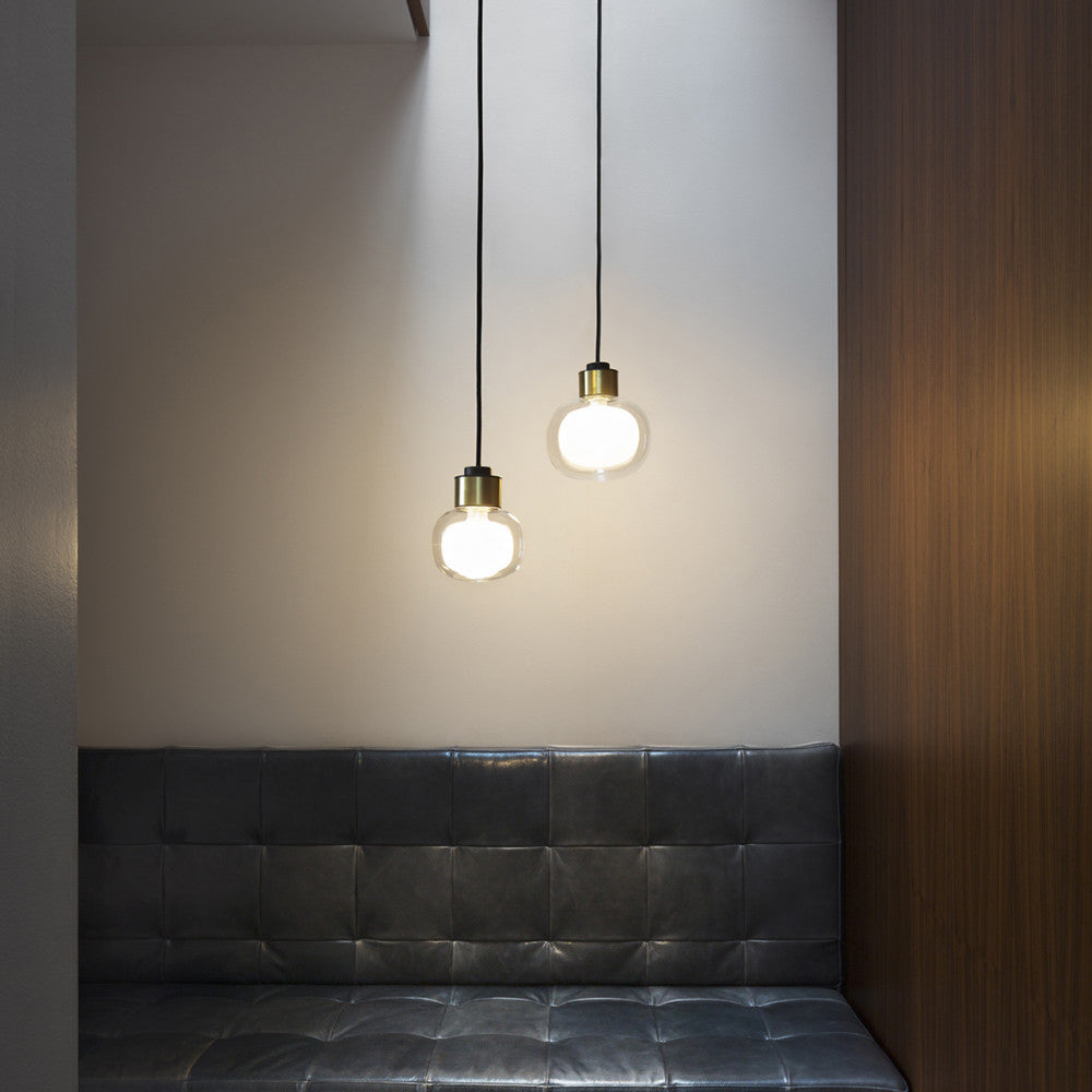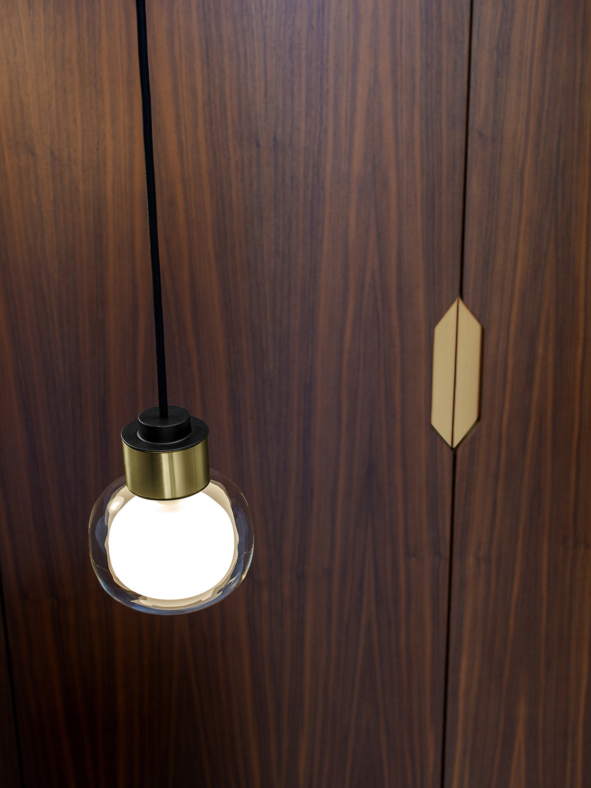 The Nabila Pendant Light's elegant sophistication is inspired by the 1950s pursuit of outer space. Modeled off of the Sputnik, Nabila's double-sided spherical frame in Matte Black with Black Chrome accents and Smoke borosilicate glass discs or Matte Black with Brushed Brass and Clear borosilicate glass discs brings a unique touch to a contemporary interior. Place in the entryway or over the dining table to complete your aesthetic.