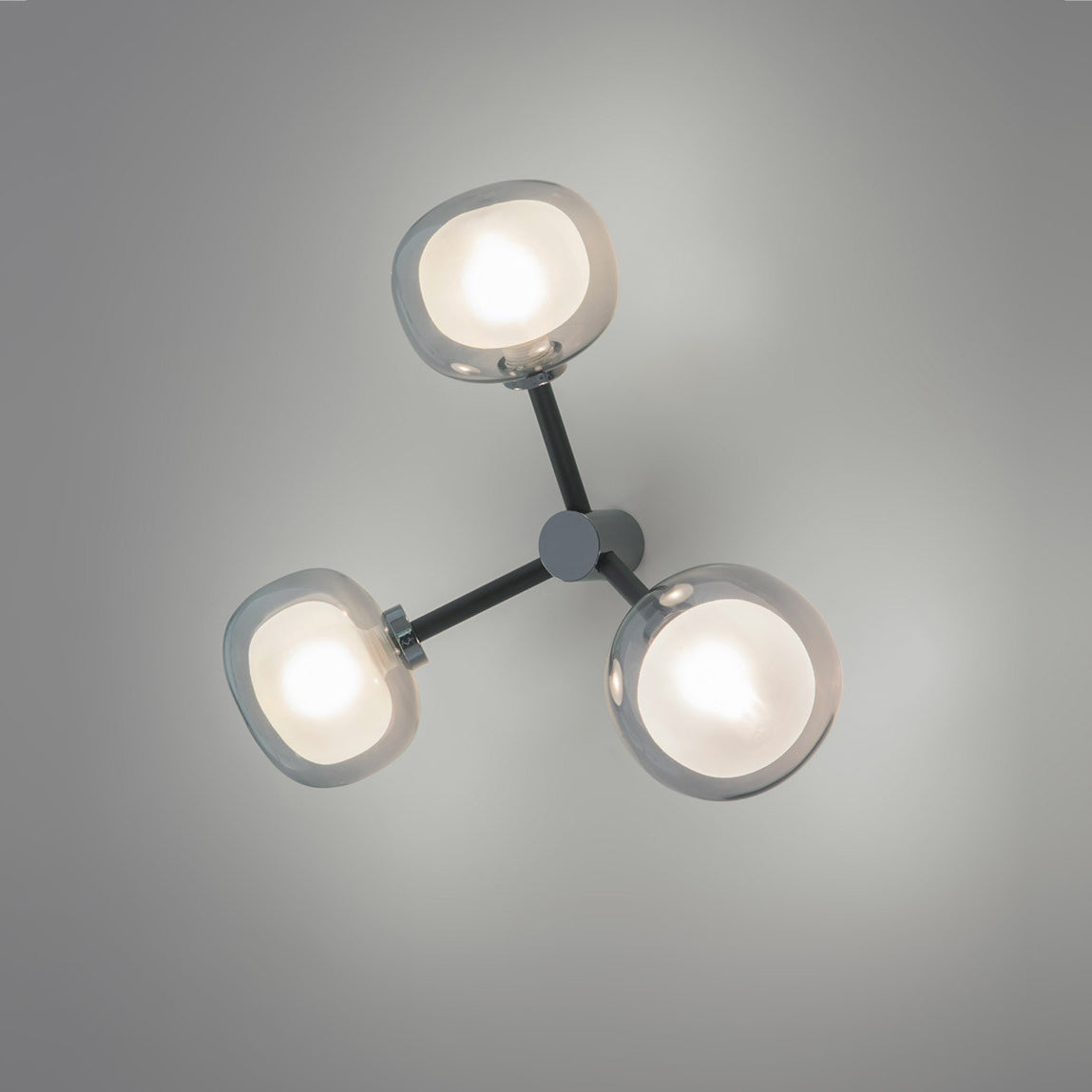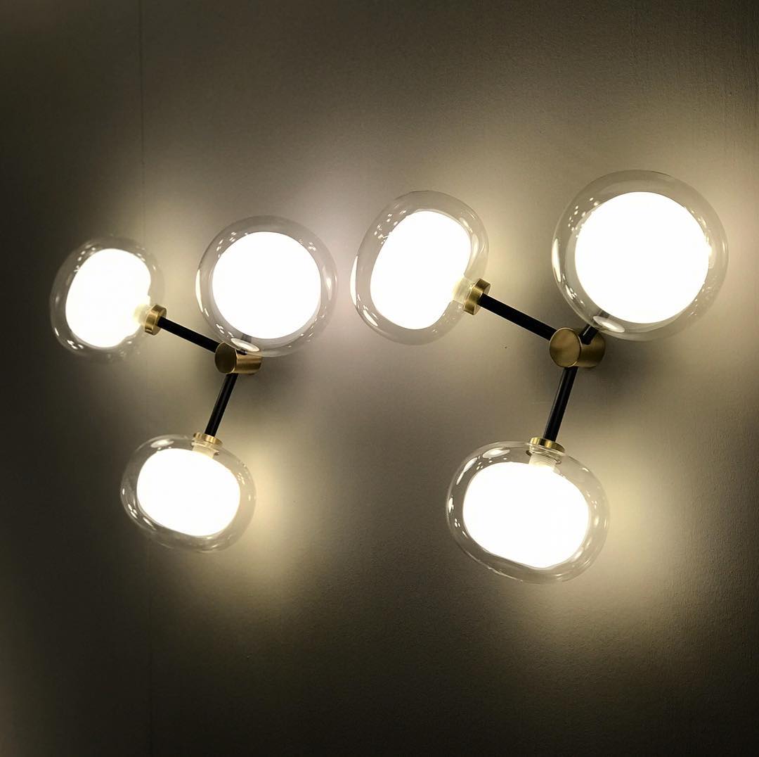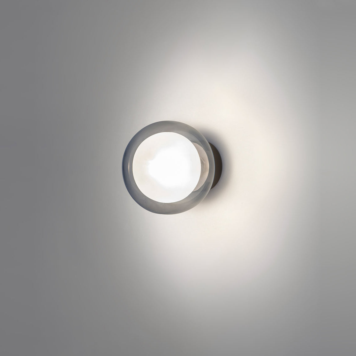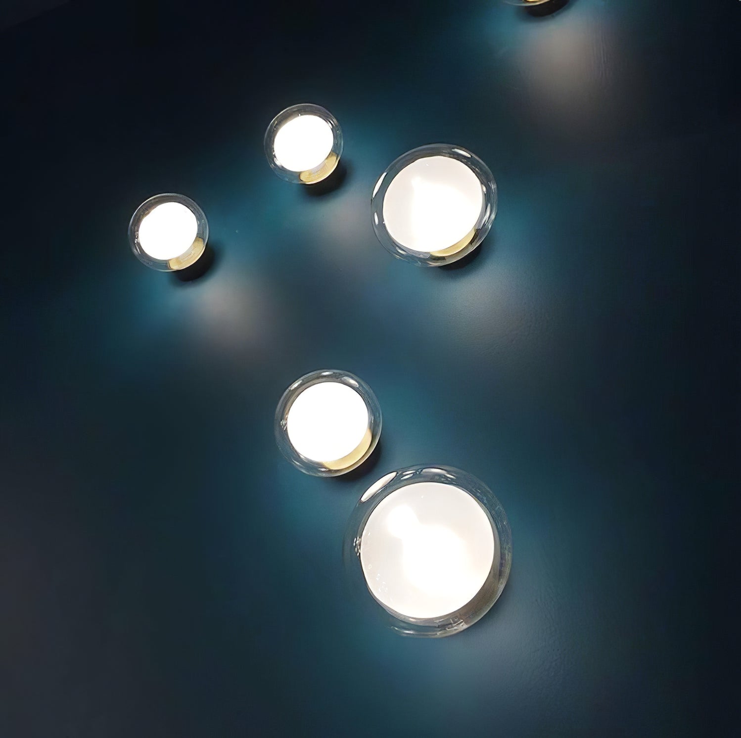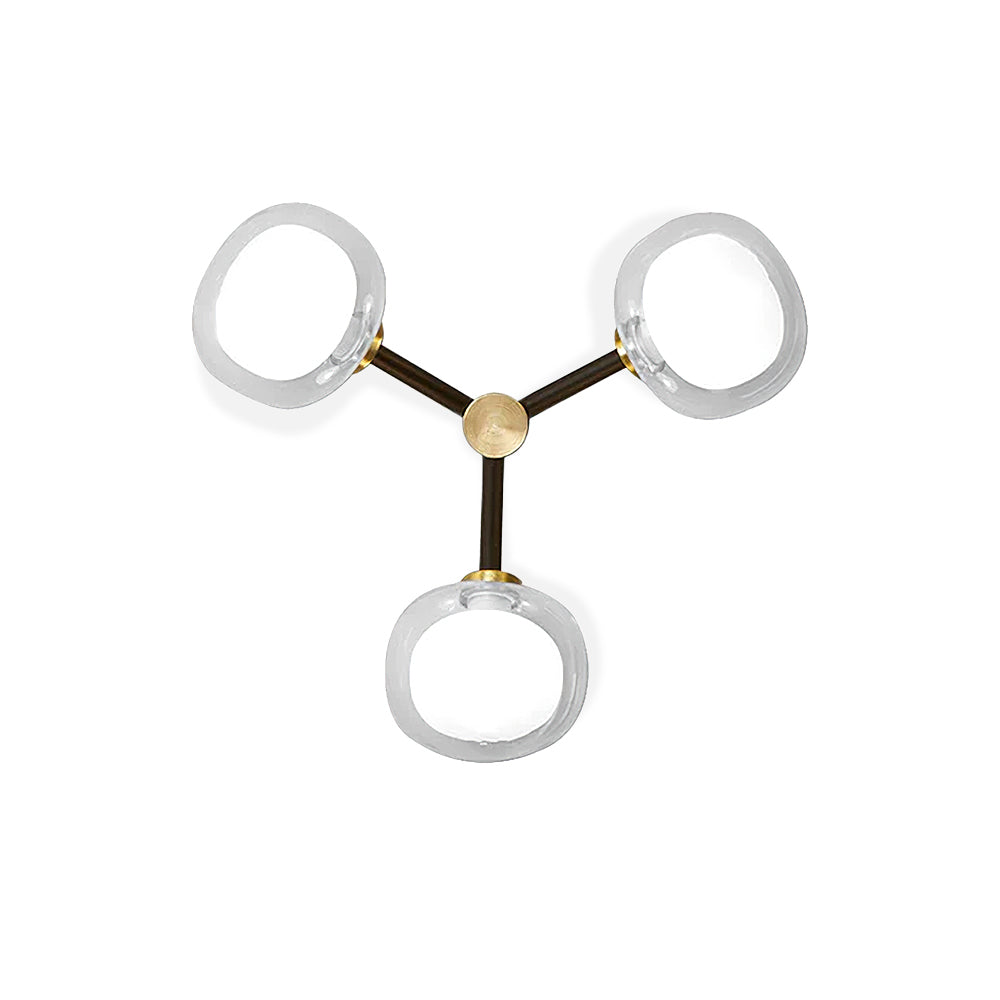 The Nabila Wall Lamp's elegant sophistication is inspired by the 1950s pursuit of outer space. Modeled off of the Sputnik, Nabila's double-sided spherical frame in Matte Black with Black Chrome accents and Smoke borosilicate glass discs or Matte Black with Brushed Brass and Clear borosilicate glass discs brings a unique touch to a contemporary interior. Place in the entryway or over the dining table to complete your aesthetic.