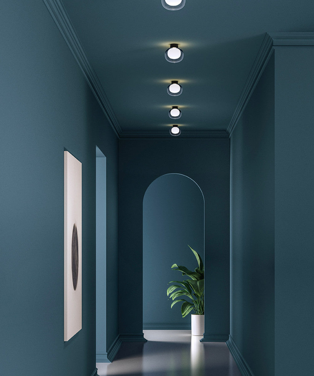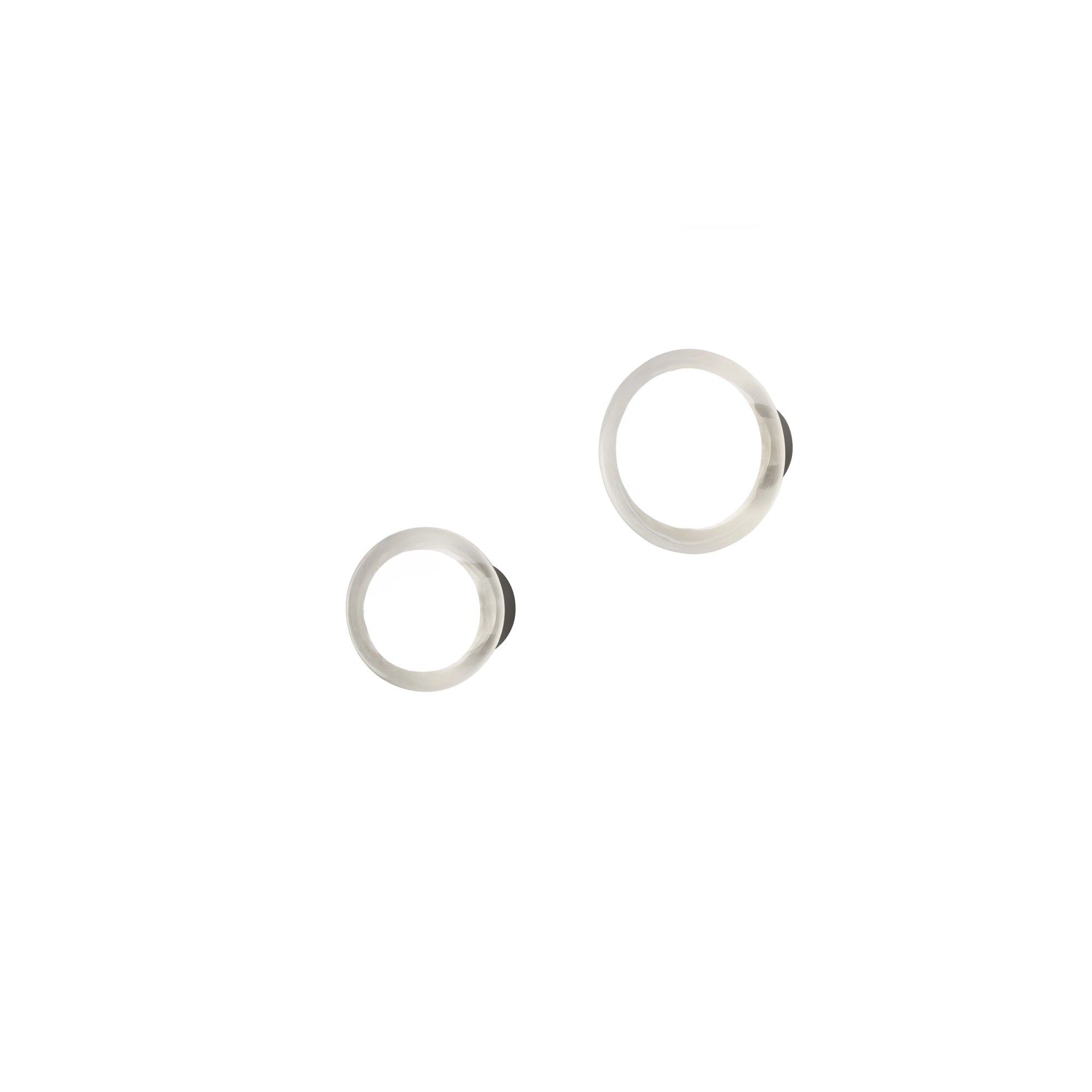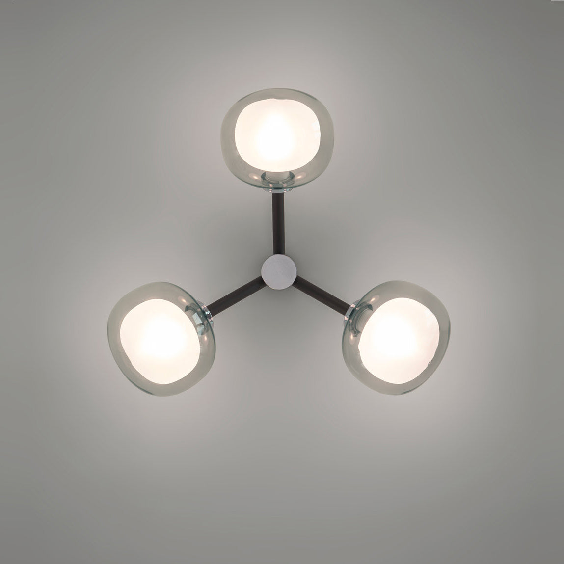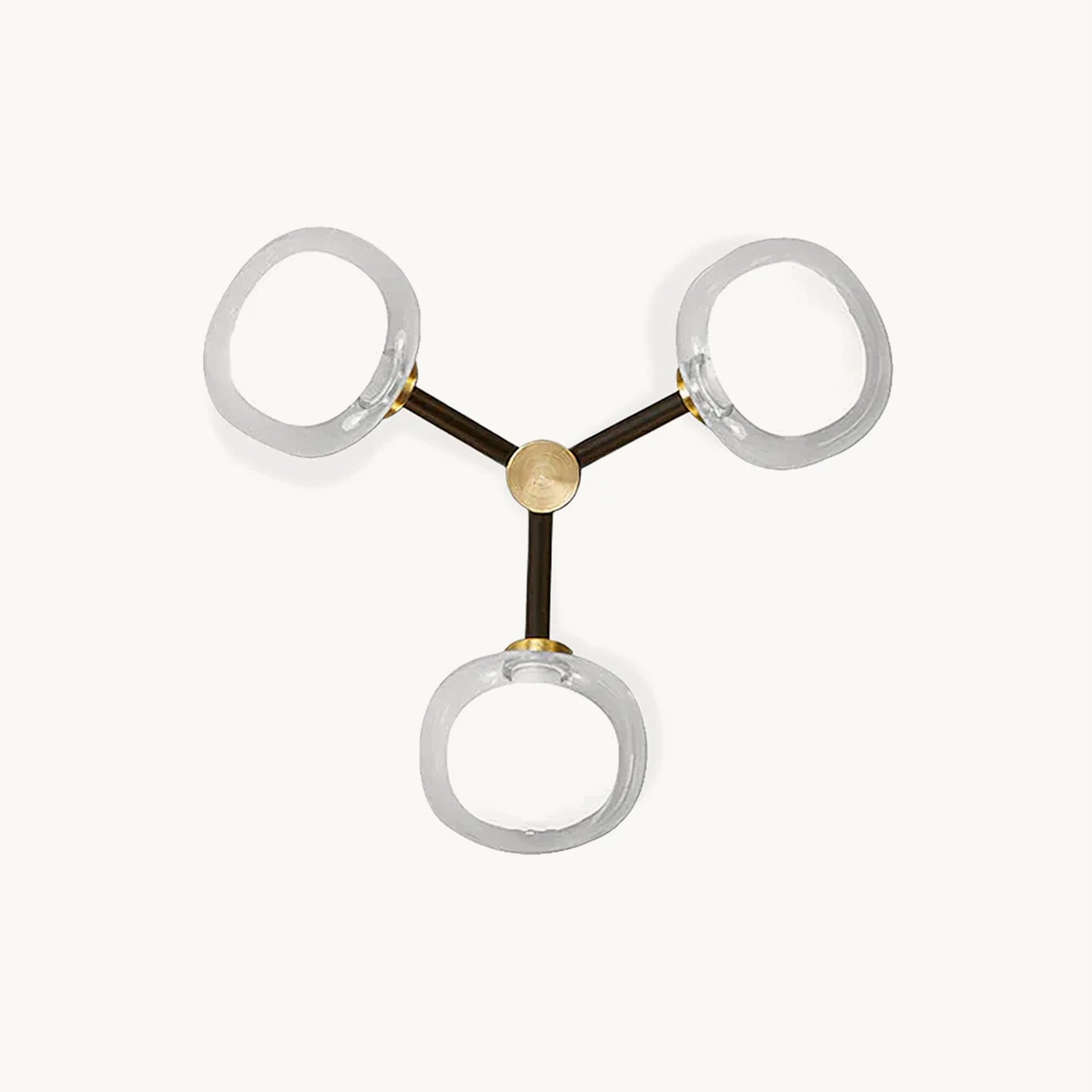 The Nabila Wall Lamp's elegant sophistication is inspired by the 1950s pursuit of outer space. Modeled off of the Sputnik, Nabila's double-sided spherical frame in Matte Black with Black Chrome accents and Smoke borosilicate glass discs or Matte Black with Brushed Brass and Clear borosilicate glass discs brings a unique touch to a contemporary interior. Place in the entryway or over the dining table to complete your aesthetic.