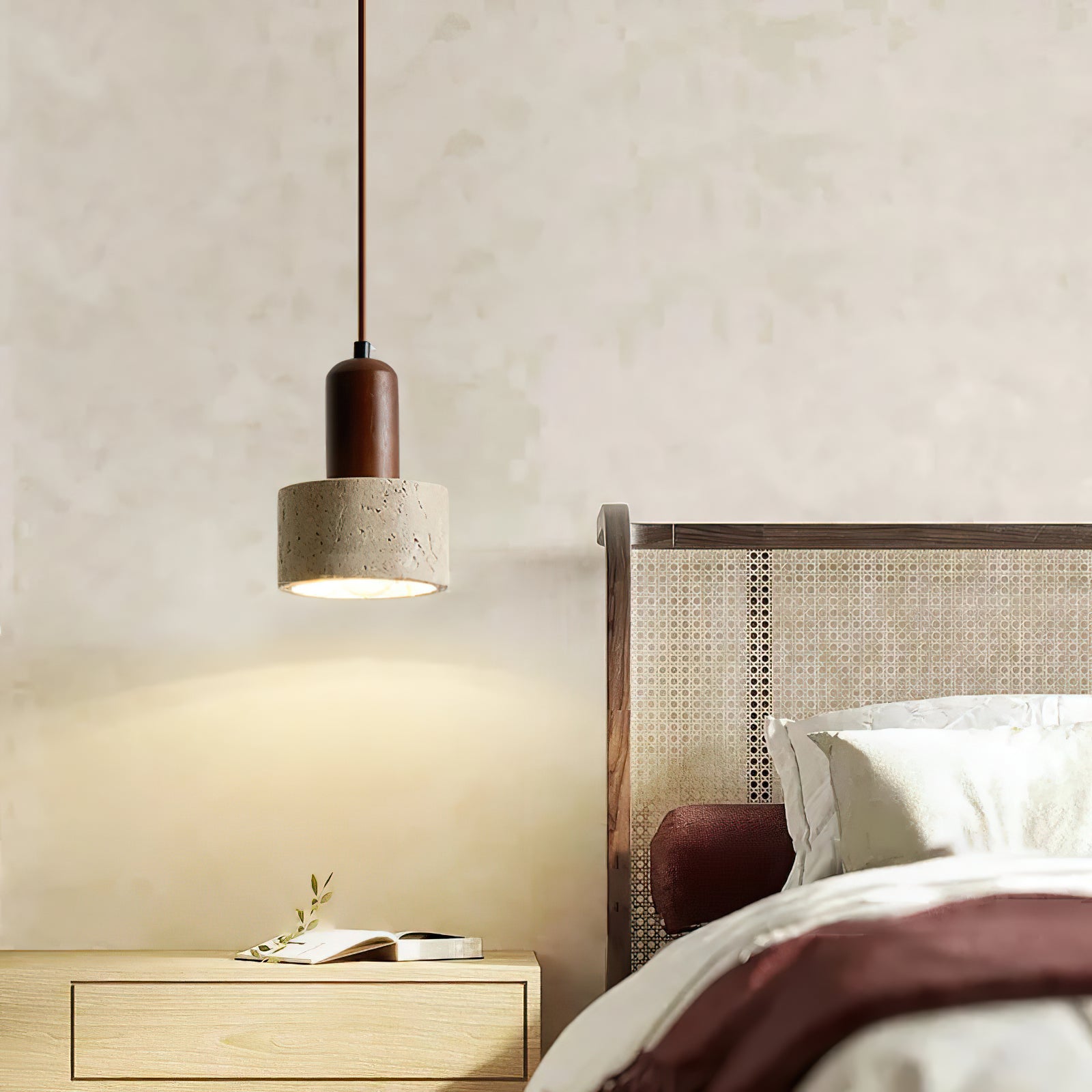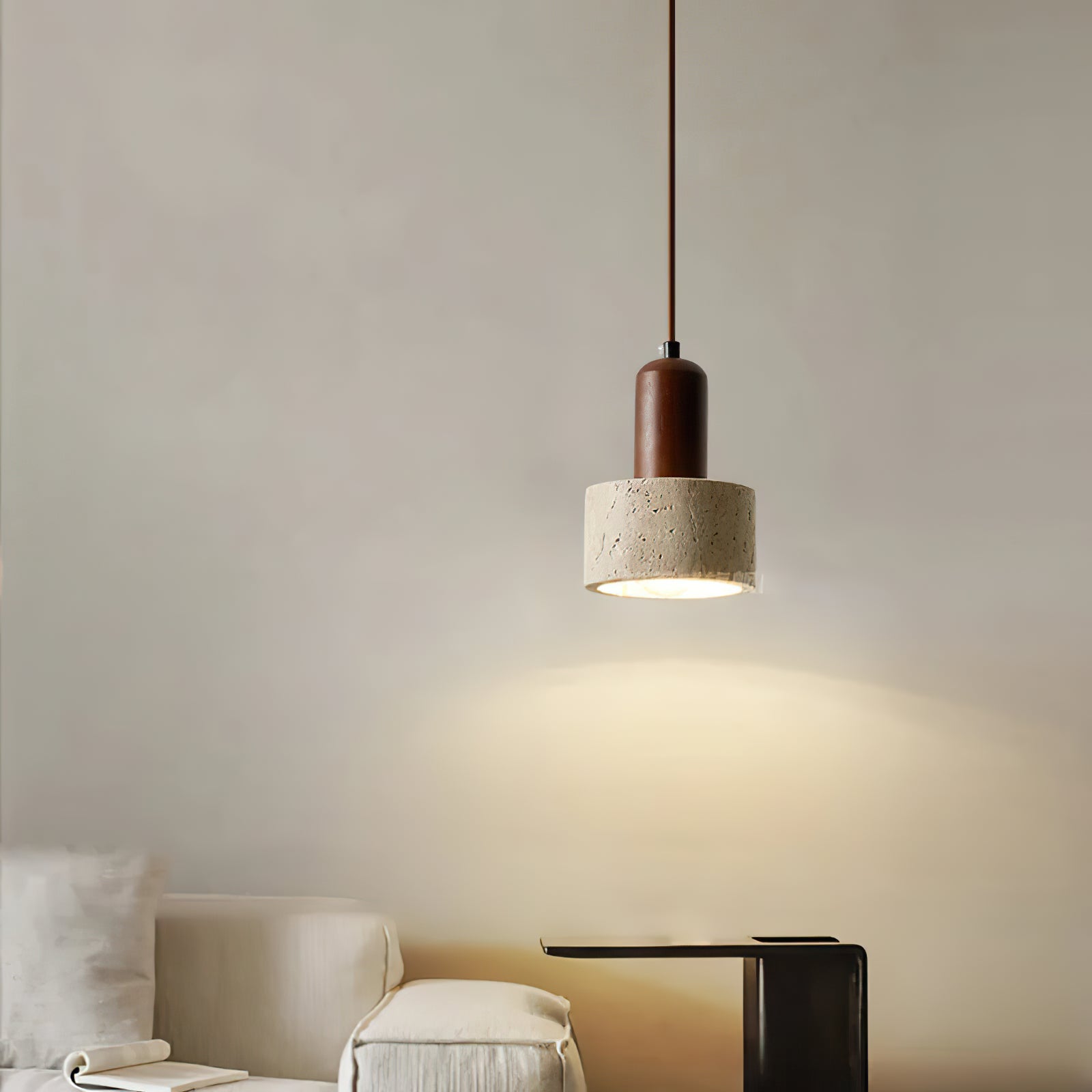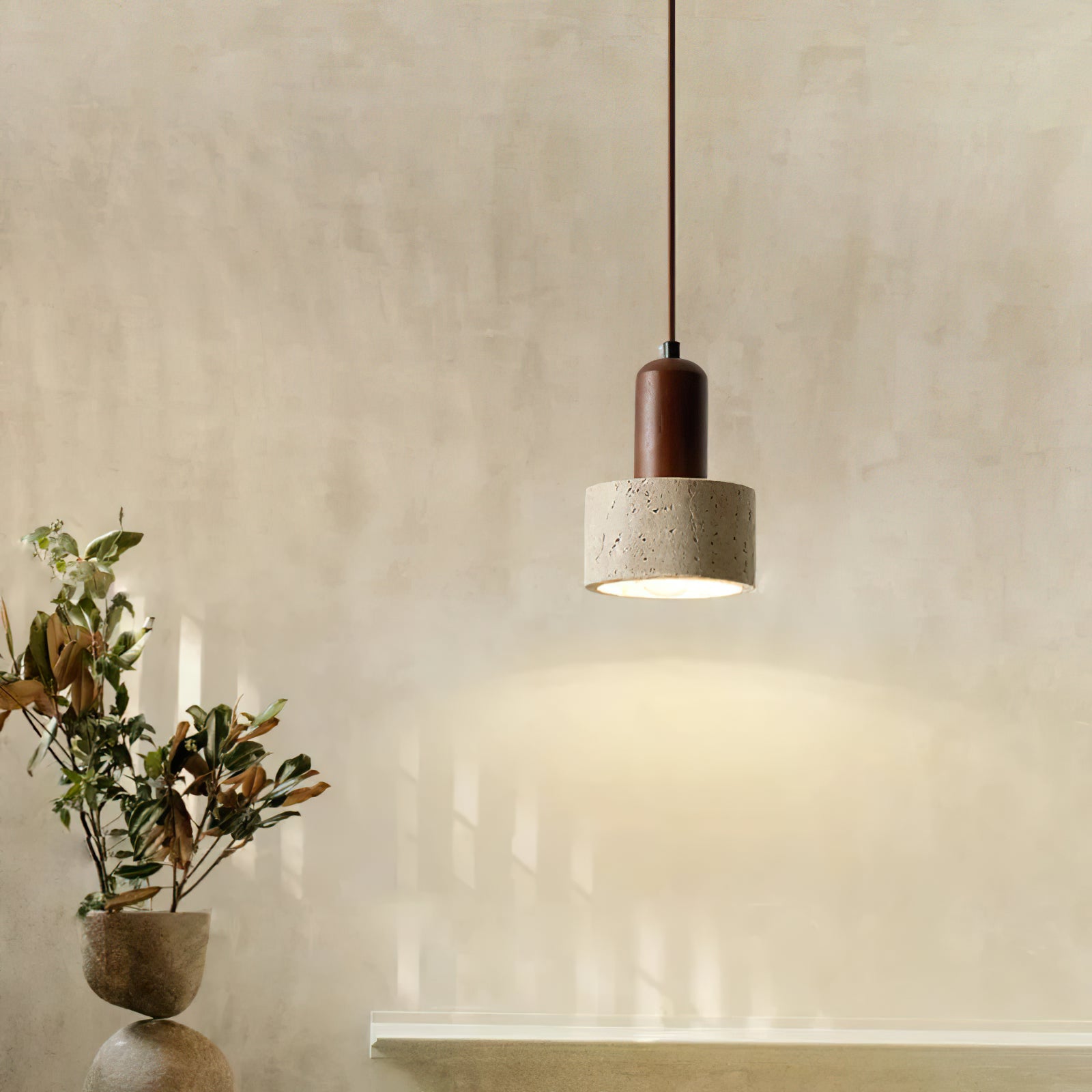 The Natural Travertine Cylinder Pendant Light is crafted with precision and refined attention to detail, making it an ideal addition to various spaces in your home or commercial areas. The elegant travertine stone shade, paired with a sleek wooden accent, brings a harmonious blend of natural materials and modern design. Perfect for the parlor, study, master bedroom, guest rooms, or even hotel lounges and rooms, this pendant light adds warmth and sophistication to any setting, enhancing the ambiance with its soft, inviting glow.