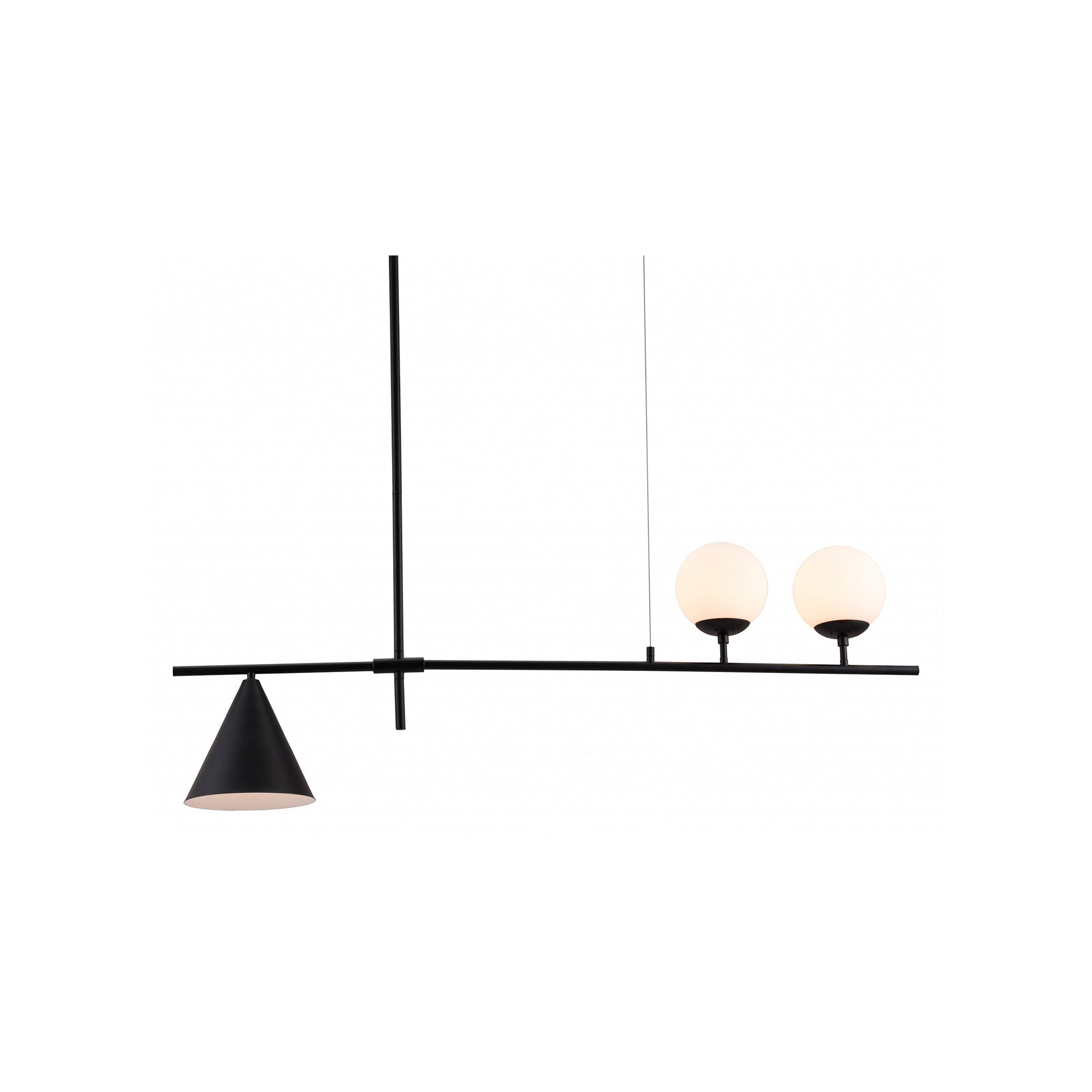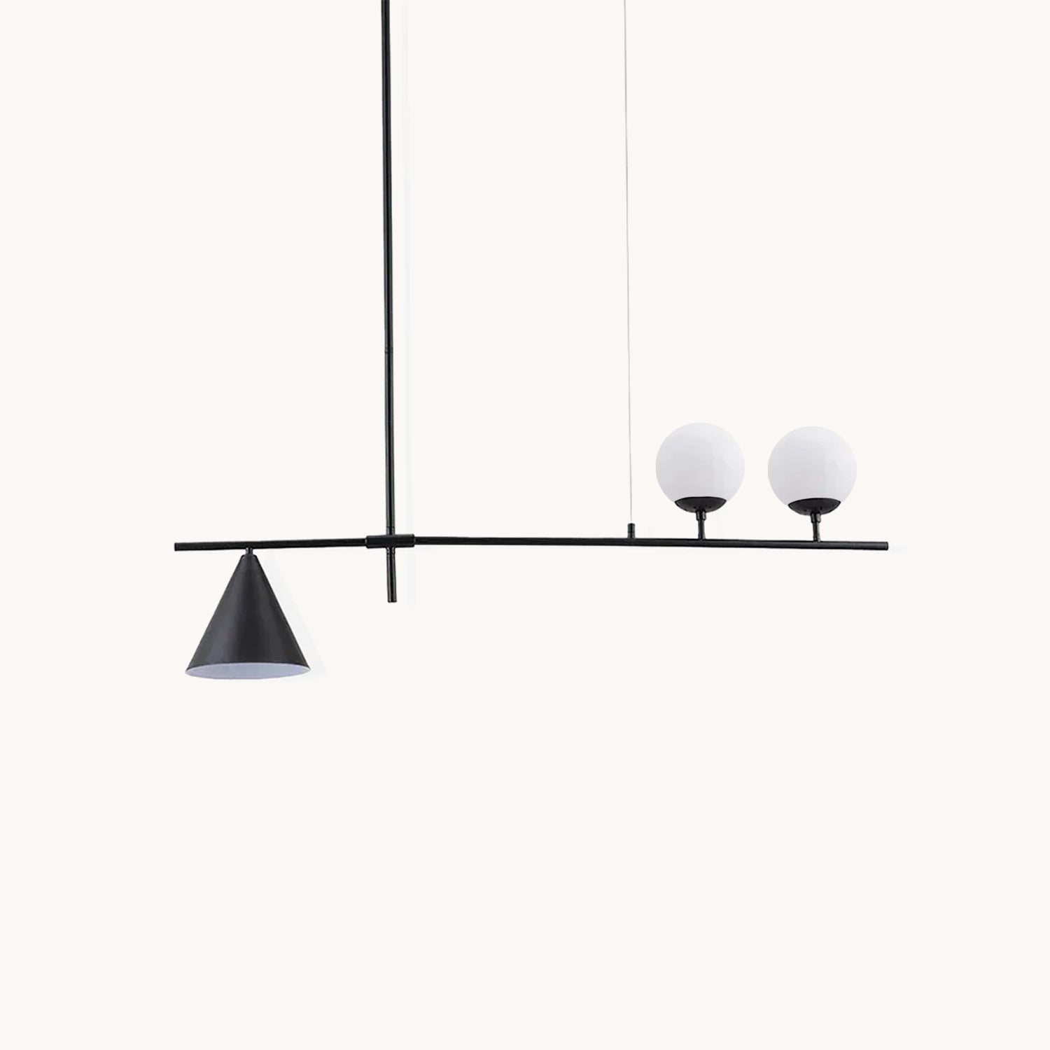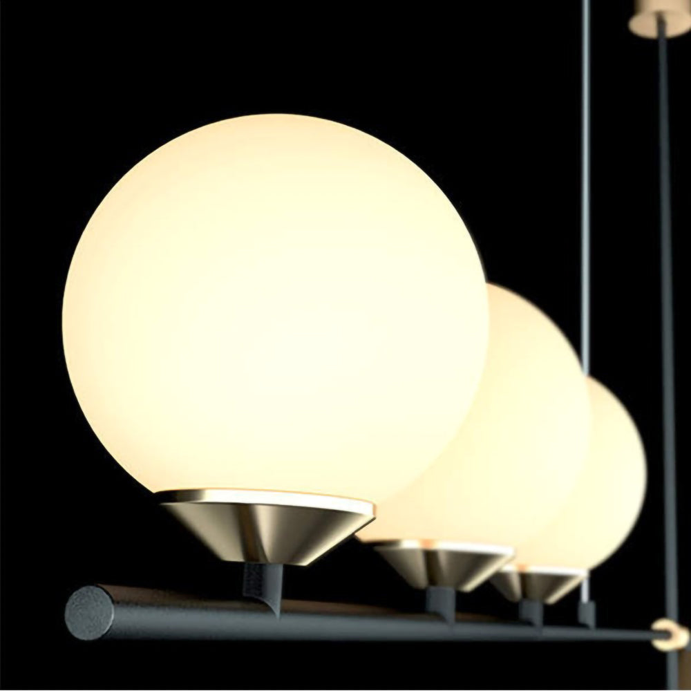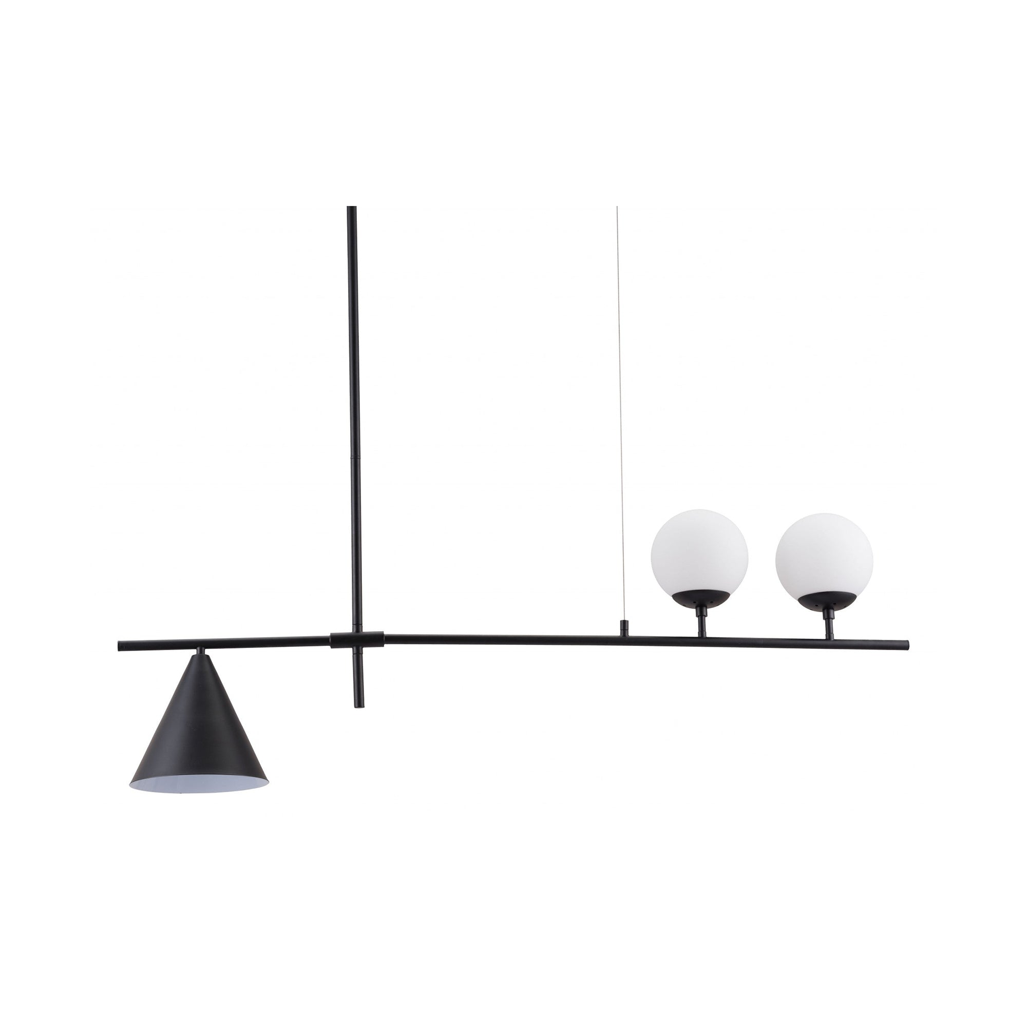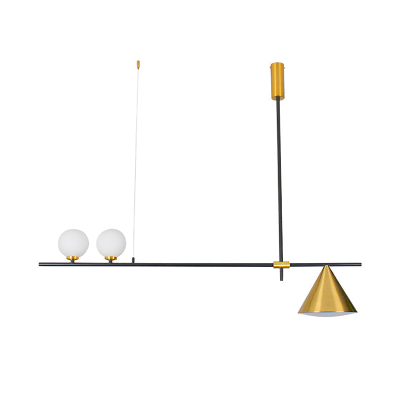 Mooijane Made primarily of metal and glass, this Neglixerint Pendant Light features a classic color scheme of black and gold, with a touch of luxury in a minimalist design. The long stick is its main body, in which two glass spheres and a metallic cone shadow are distributed asymmetrically on the left and right sides, one up and one down. This asymmetrical yet balanced aesthetic is not rigid and gives a neat visual effect. It's perfect for hanging on a long table, serving basic lighting needs while reflecting the elegance and soul in its minimalist design.