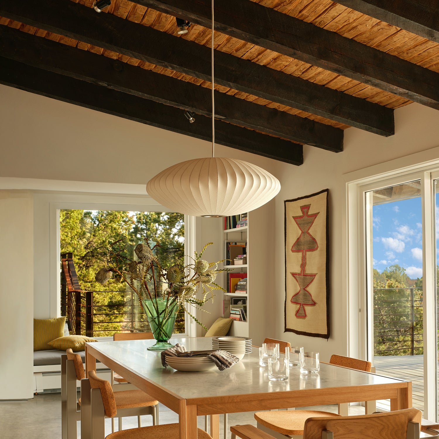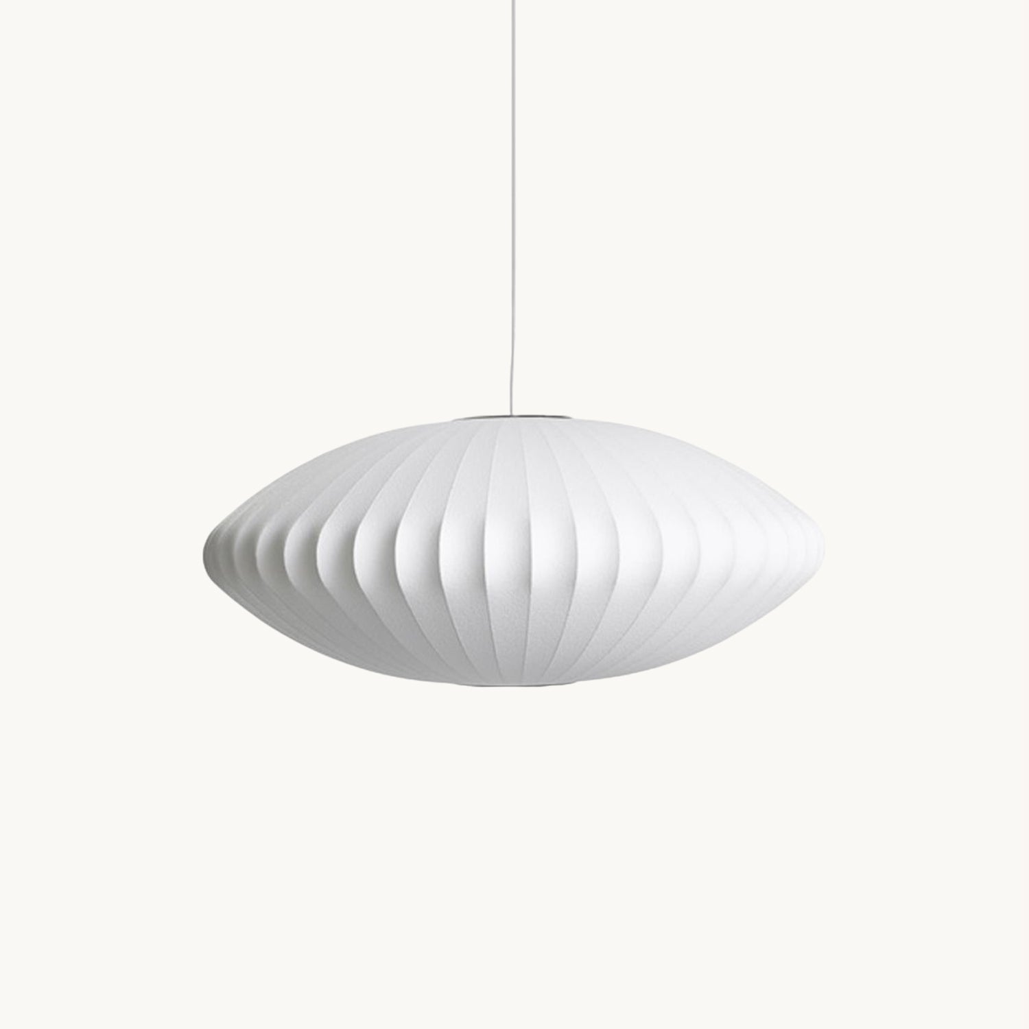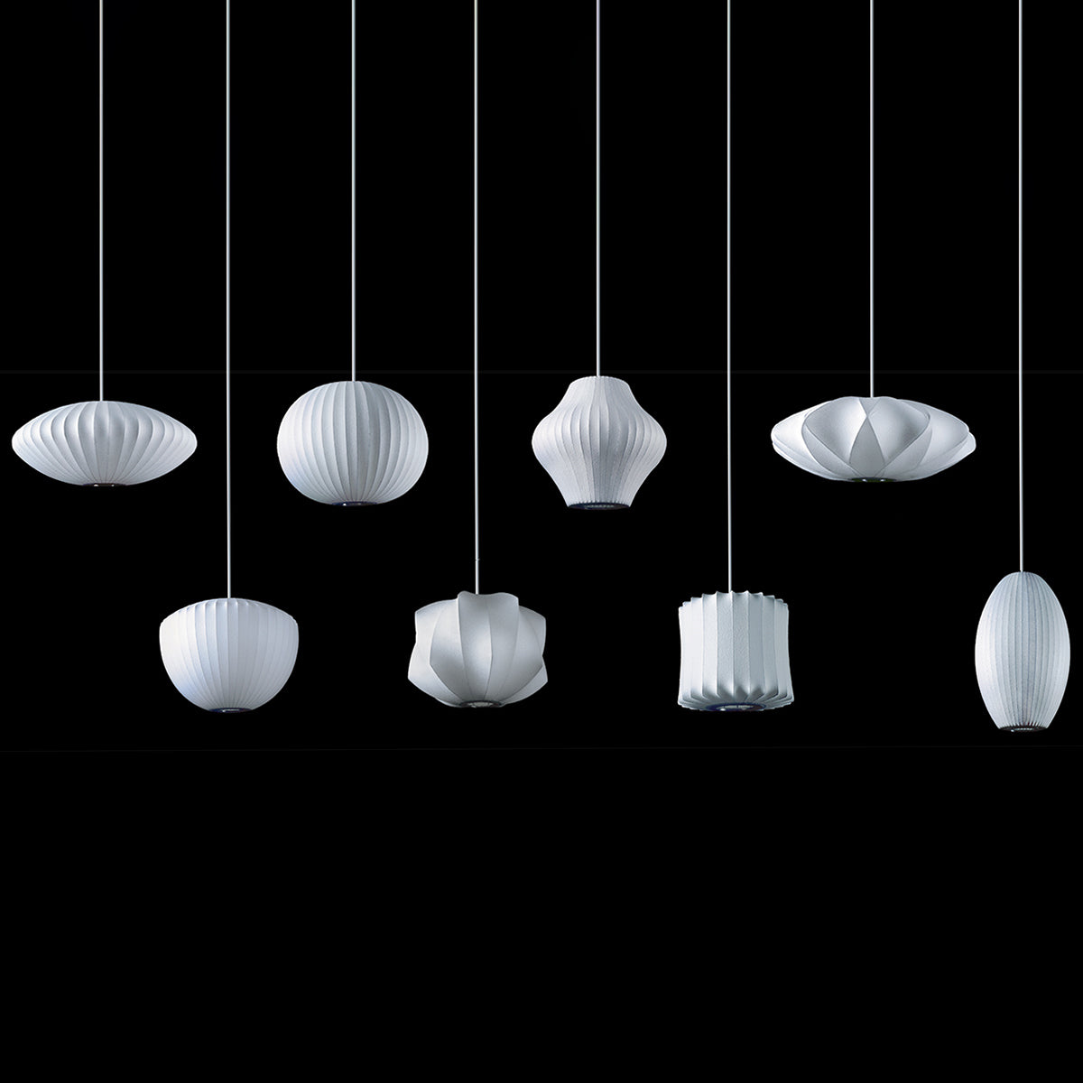 The Nelson Ball Crisscross Bubble Pendant is based on the original 1952 design by the ingenious and resourceful George Nelson. Utilizing U.S. military techniques and surplus supplies after the Second World War, he was able to create the first set of Nelson Bubble Lamps; covering them in a translucent white plastic spray that results in a soft, organic aesthetic when illuminated.