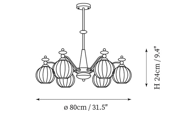 - 6-Lights Size: Dia 80cm x H 24cm / ∅ 31.5″ x H 9.4″