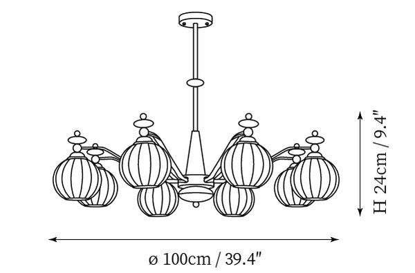 - 8-Lights Size: Dia 100cm x H 24cm / ∅ 39.4″ x H 9.4″