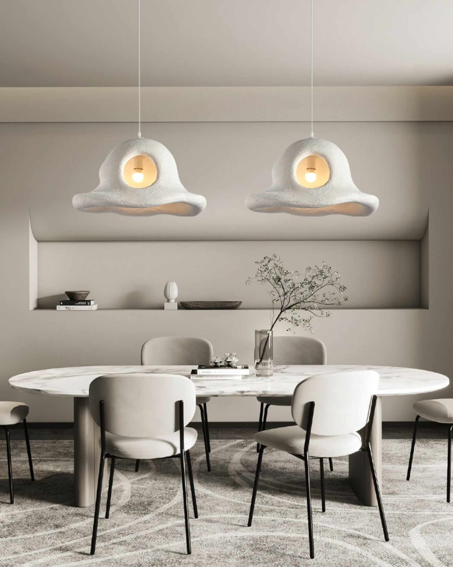 The Olmi Hat Pendant Light by Mooijane embraces the beauty of imperfection with its sculptural, asymmetrical form and minimalist sensibility. Crafted through a hand-turned molding process, its smooth, retro silhouette resembles a classic hat, adding personality and depth to any space. The muted color palette evokes a calm, contemplative atmosphere—perfect for those who appreciate understated design with emotional resonance. Ideal for living rooms, dining areas, or artistic interiors seeking quiet sophistication.