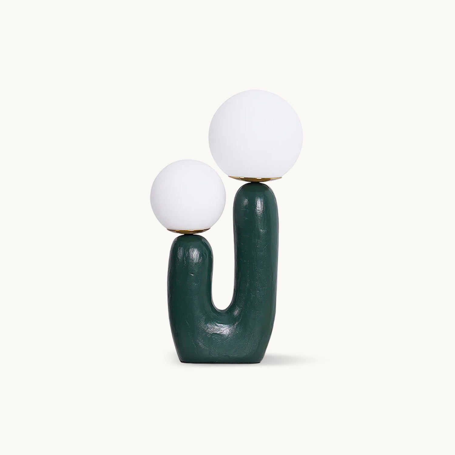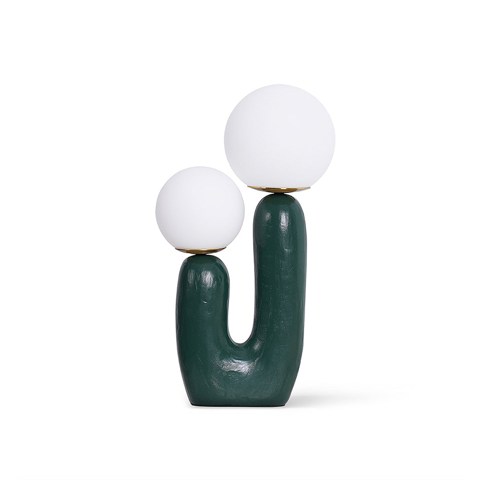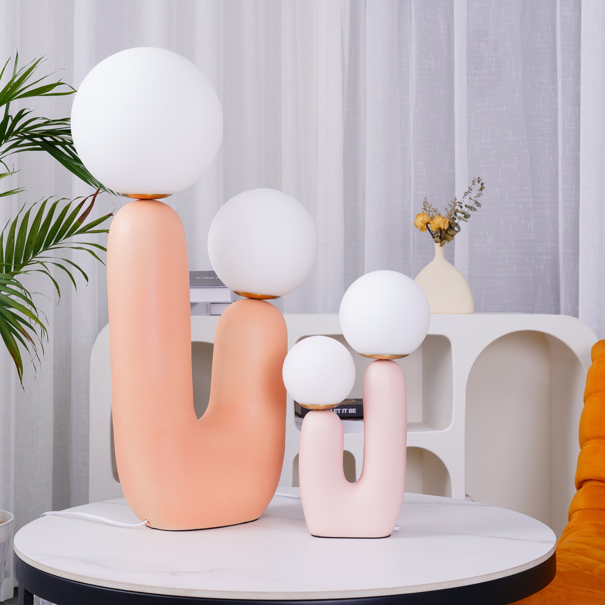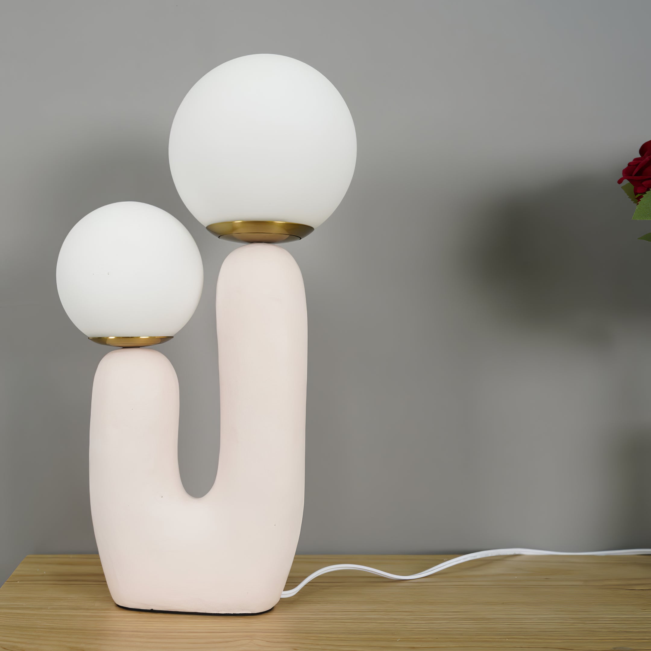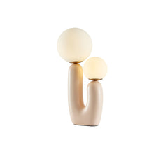 Hand-Built Oo Table Lamp is a typical post-modern creative lamp. This lamp combines what seem to be two independent structures. The combination of two creamy white frosted glass lampshades and a pink resin lamp body is stylish and delicate, strong and stable, and full of artistic flavor. We also add a user-friendly reinforced anti-skid pad to the lamp base to further improve safety and stability.