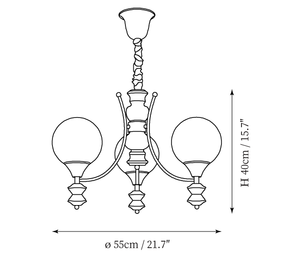 - 3-Lights Size: Dia 55cm x H 40cm / ∅ 21.7″ x H 15.7″